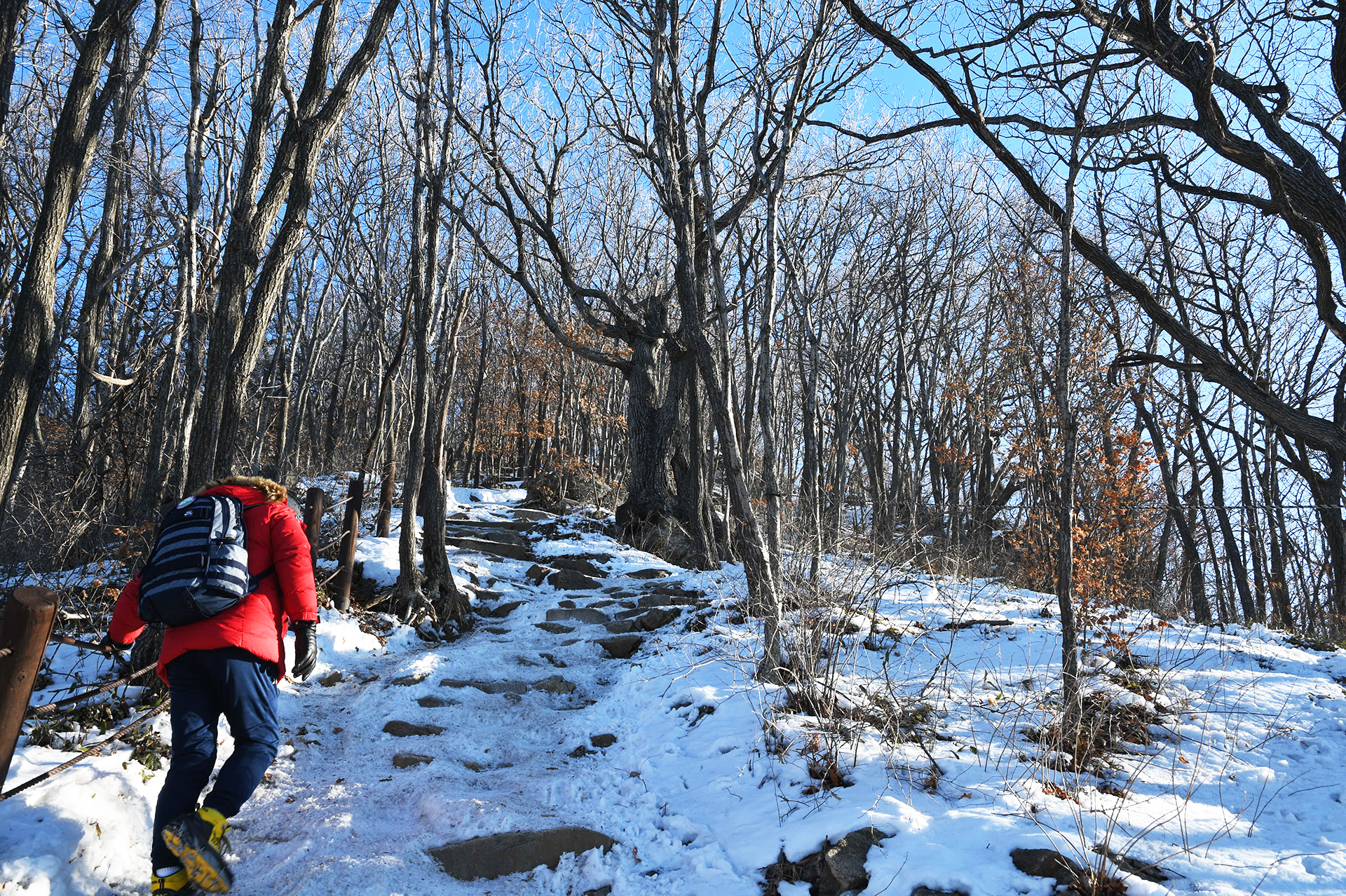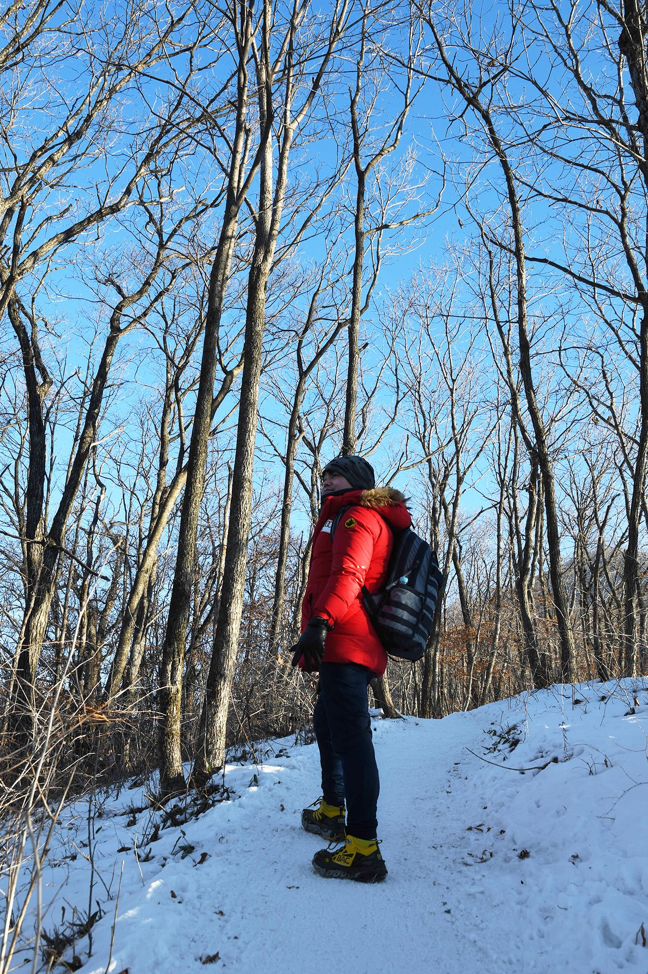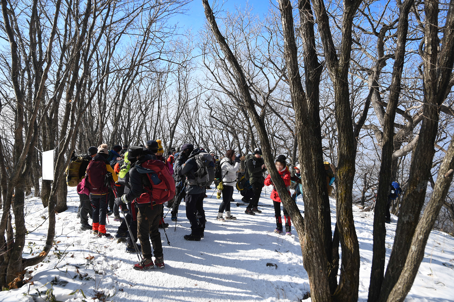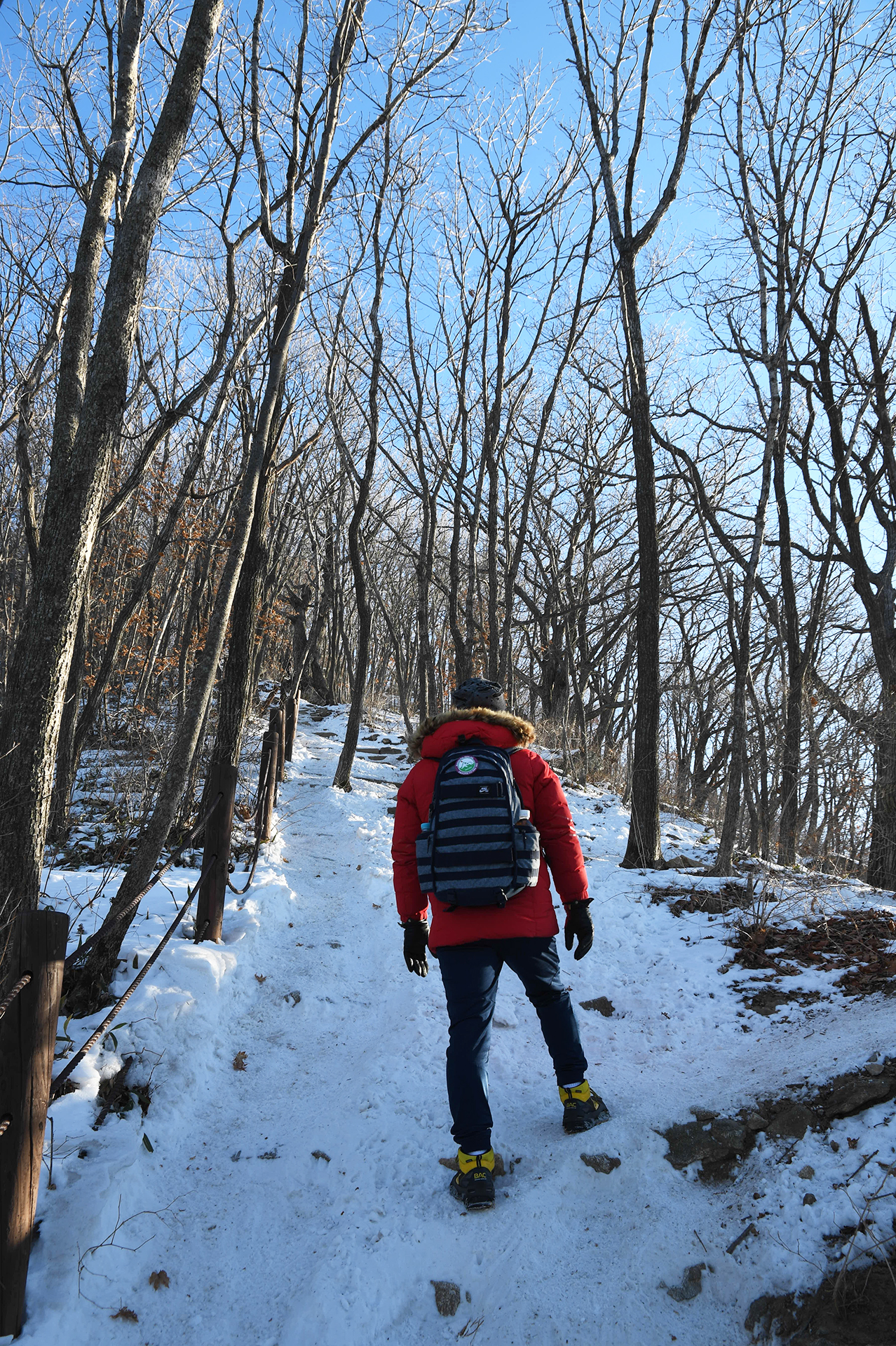 여전히 전망이 트이지 않는 등산로가 계속되고, 눈은 얼음처럼 단단해 밟을때마다 빠스락거린다.