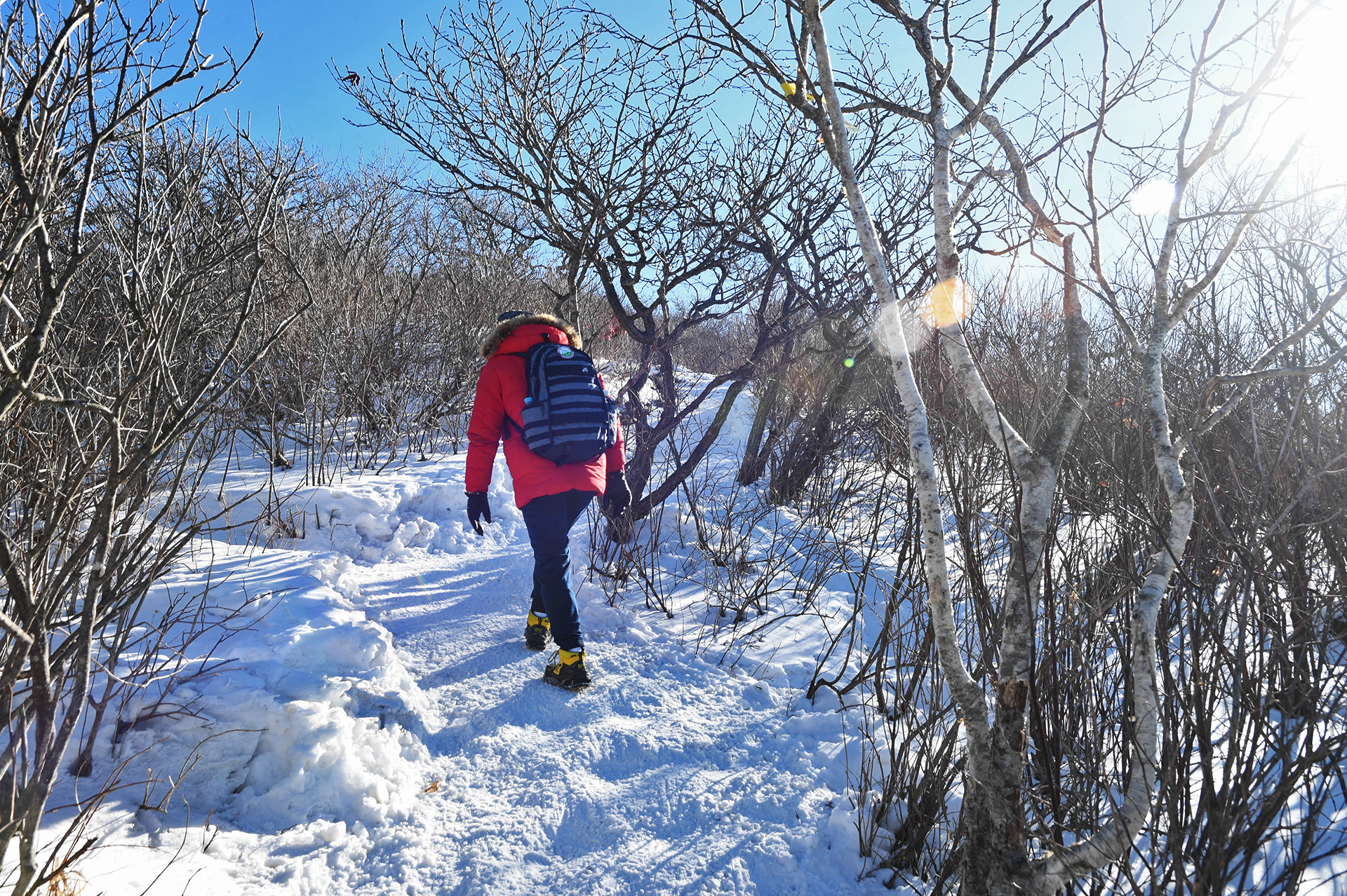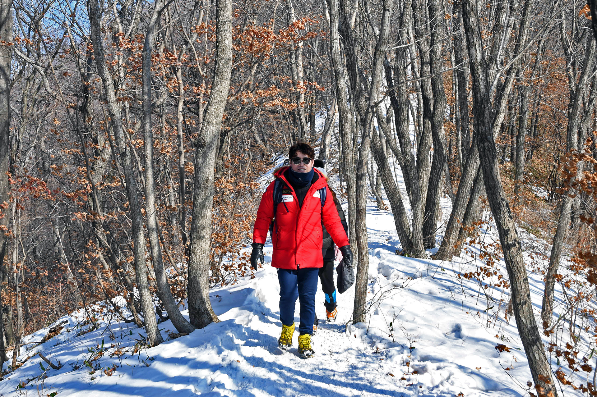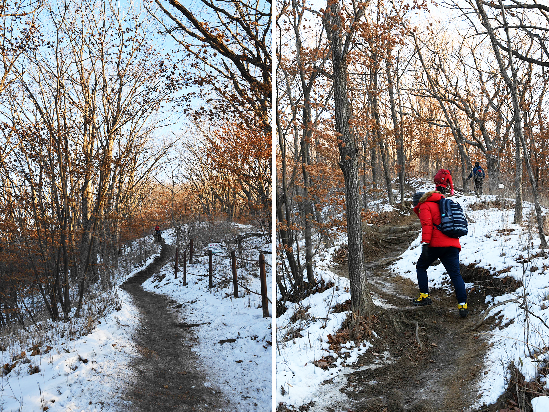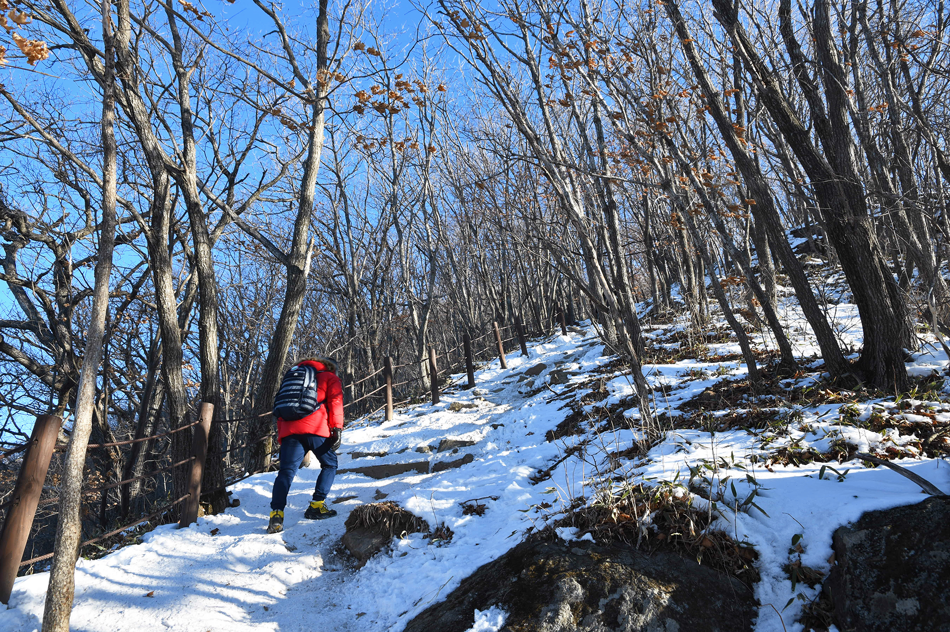 여전히 전망이 트이지 않는 등산로가 계속되고, 눈은 얼음처럼 단단해 밟을때마다 빠스락거린다.