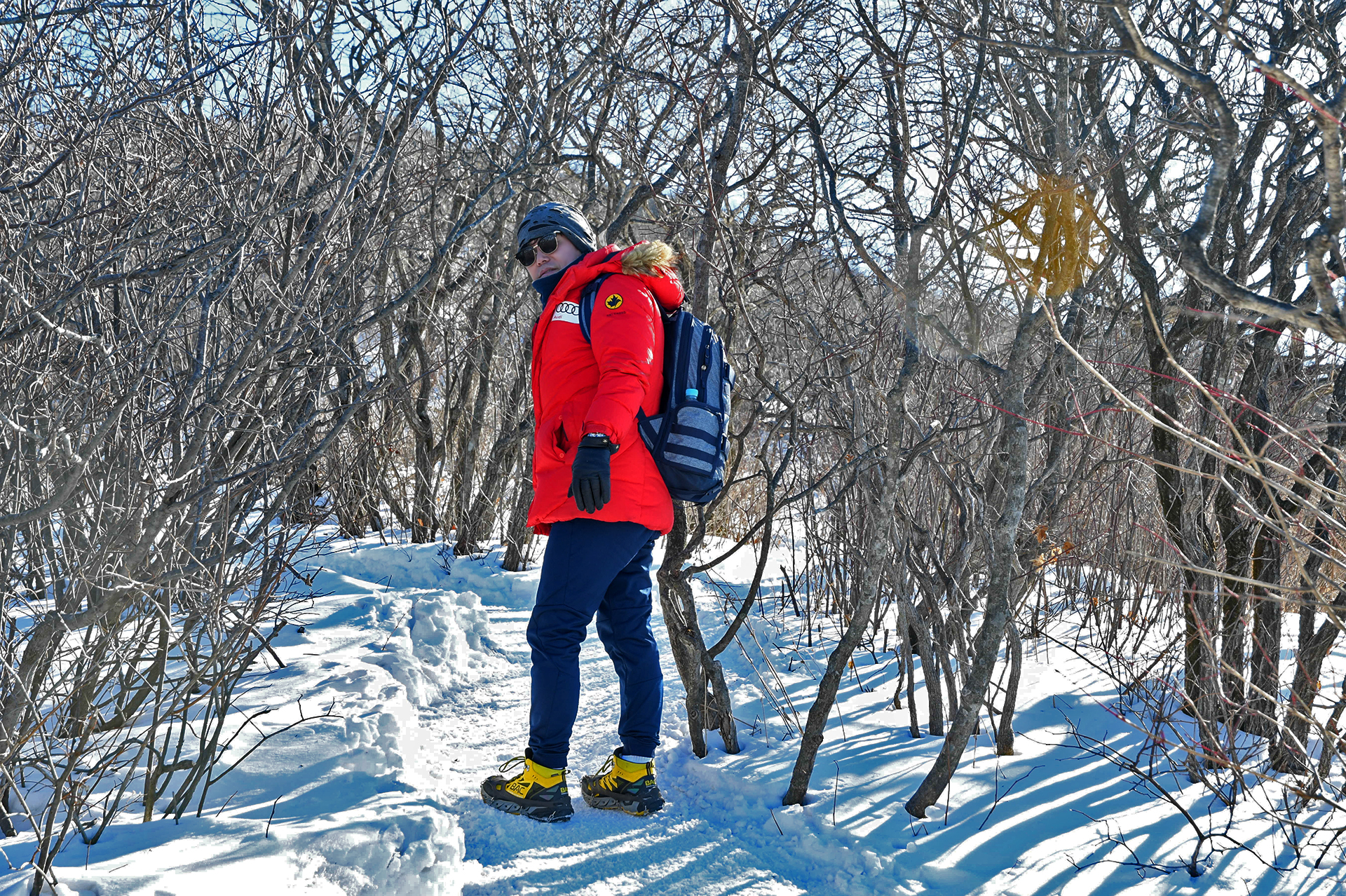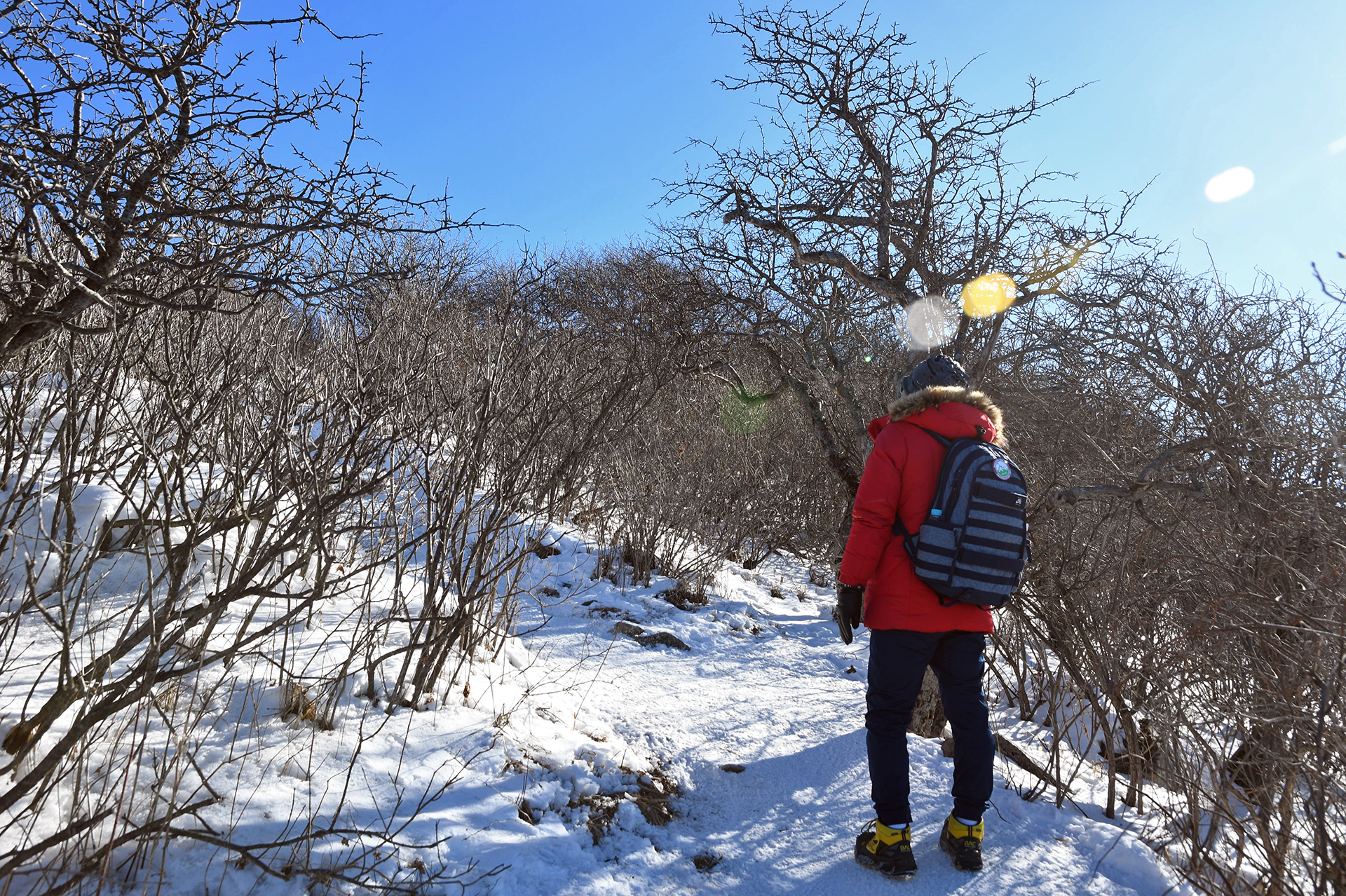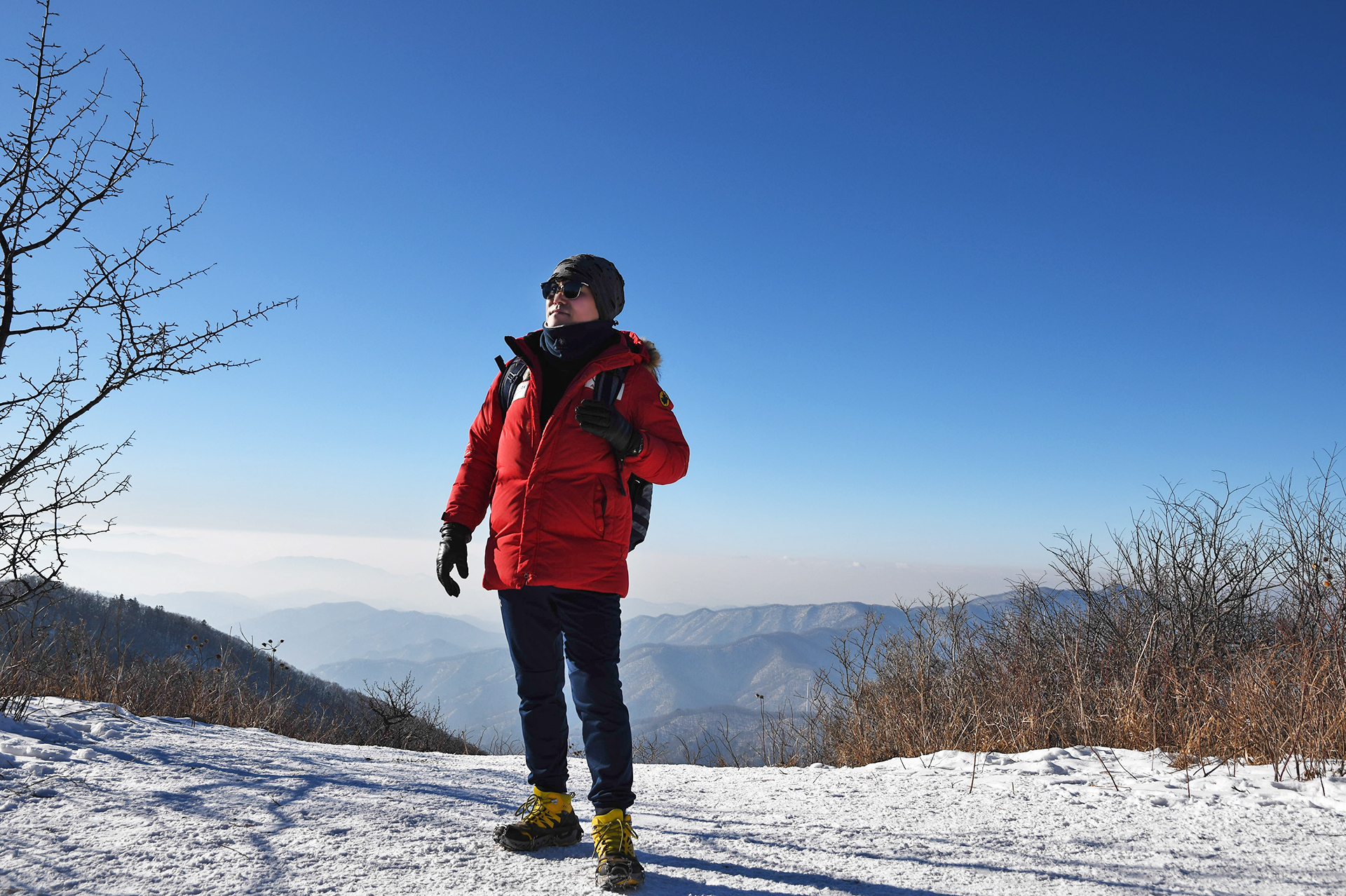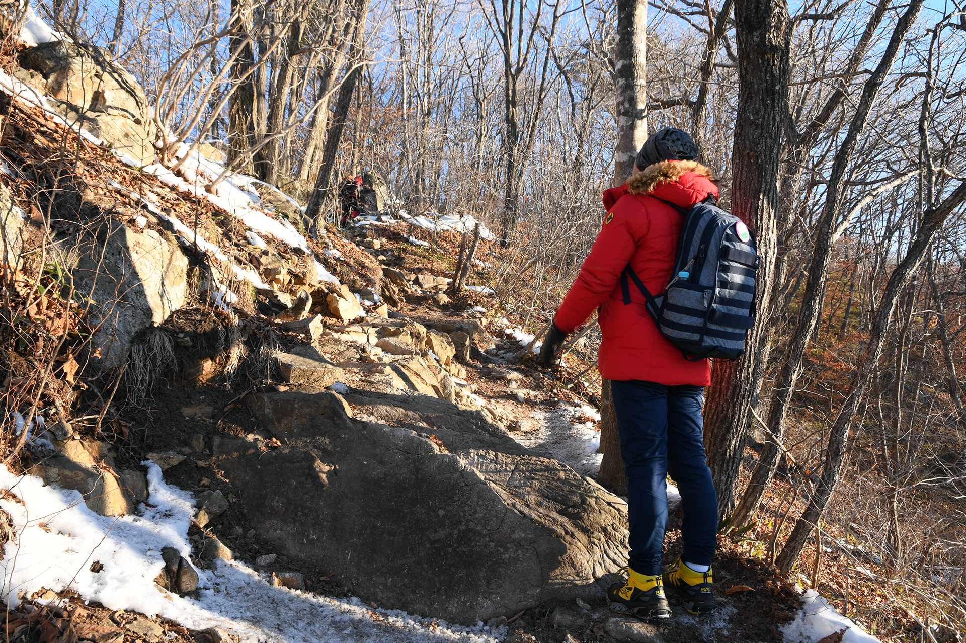 여전히 전망이 트이지 않는 등산로가 계속되고, 눈은 얼음처럼 단단해 밟을때마다 빠스락거린다.