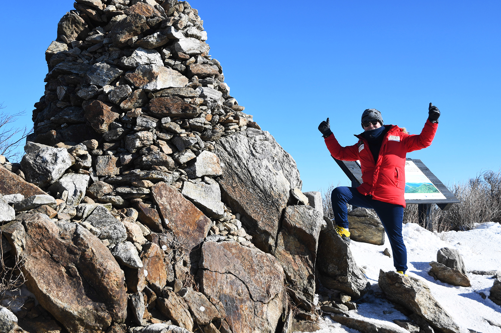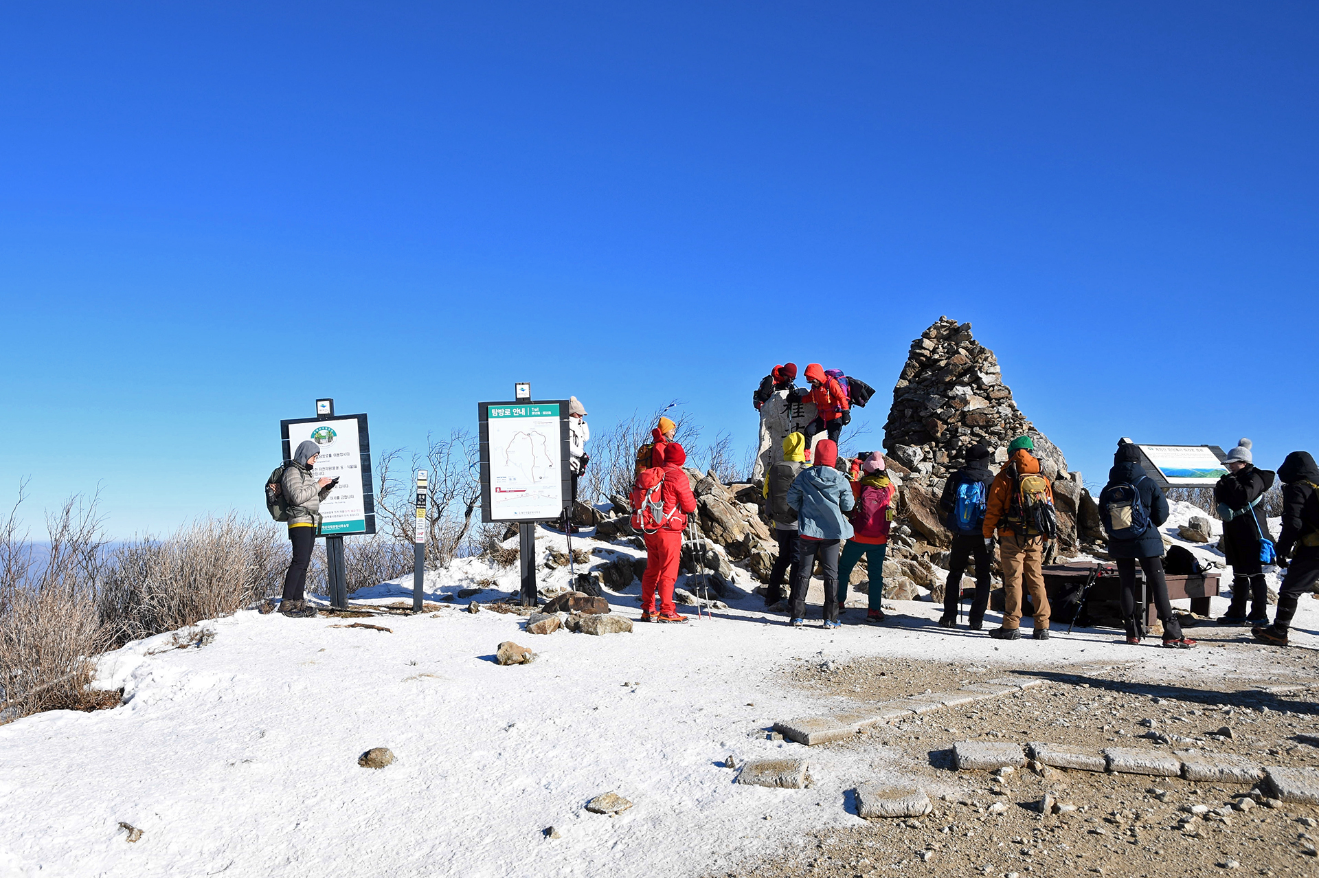 정상에 도착하니 바람이 세게 불어 체감온도가 급격하게 내려간다.