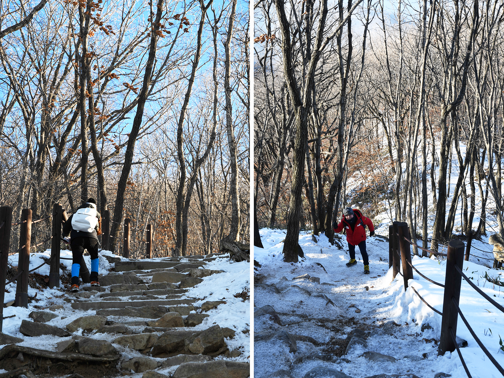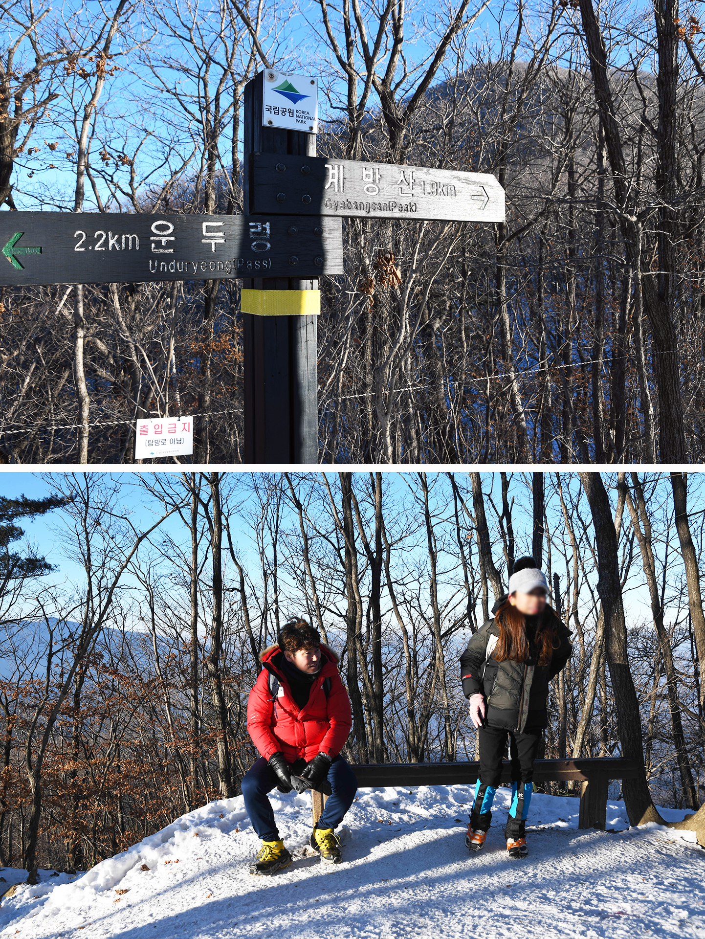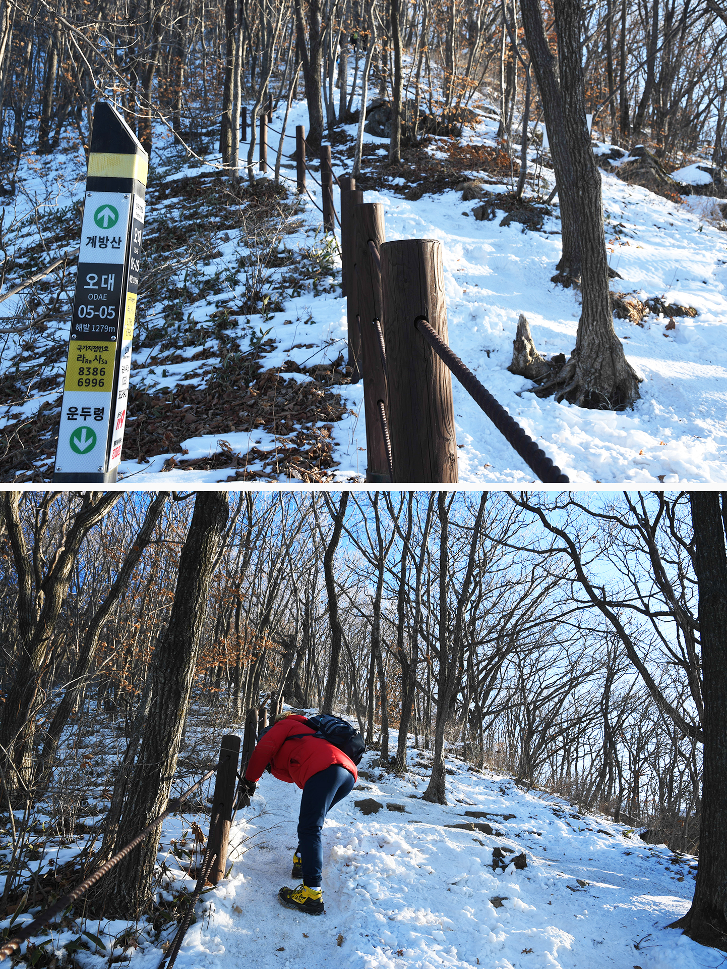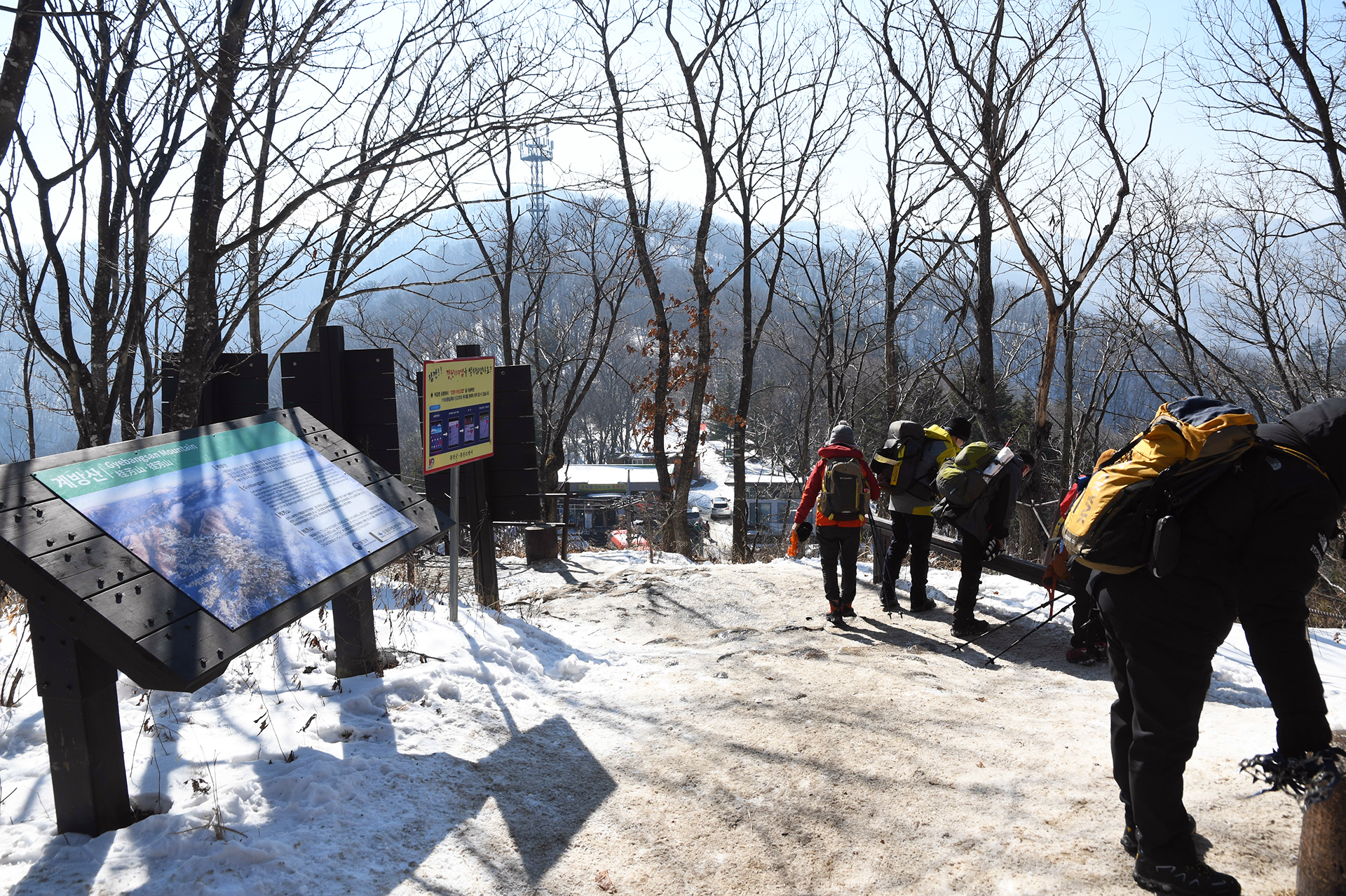 등산로는 아이젠 없이는 올라가기 힘들고, 내려올때는 미끄러워 더욱 위험할수 있으니 겨울 산행시 아이젠은 필수로 챙겨야 한다.
