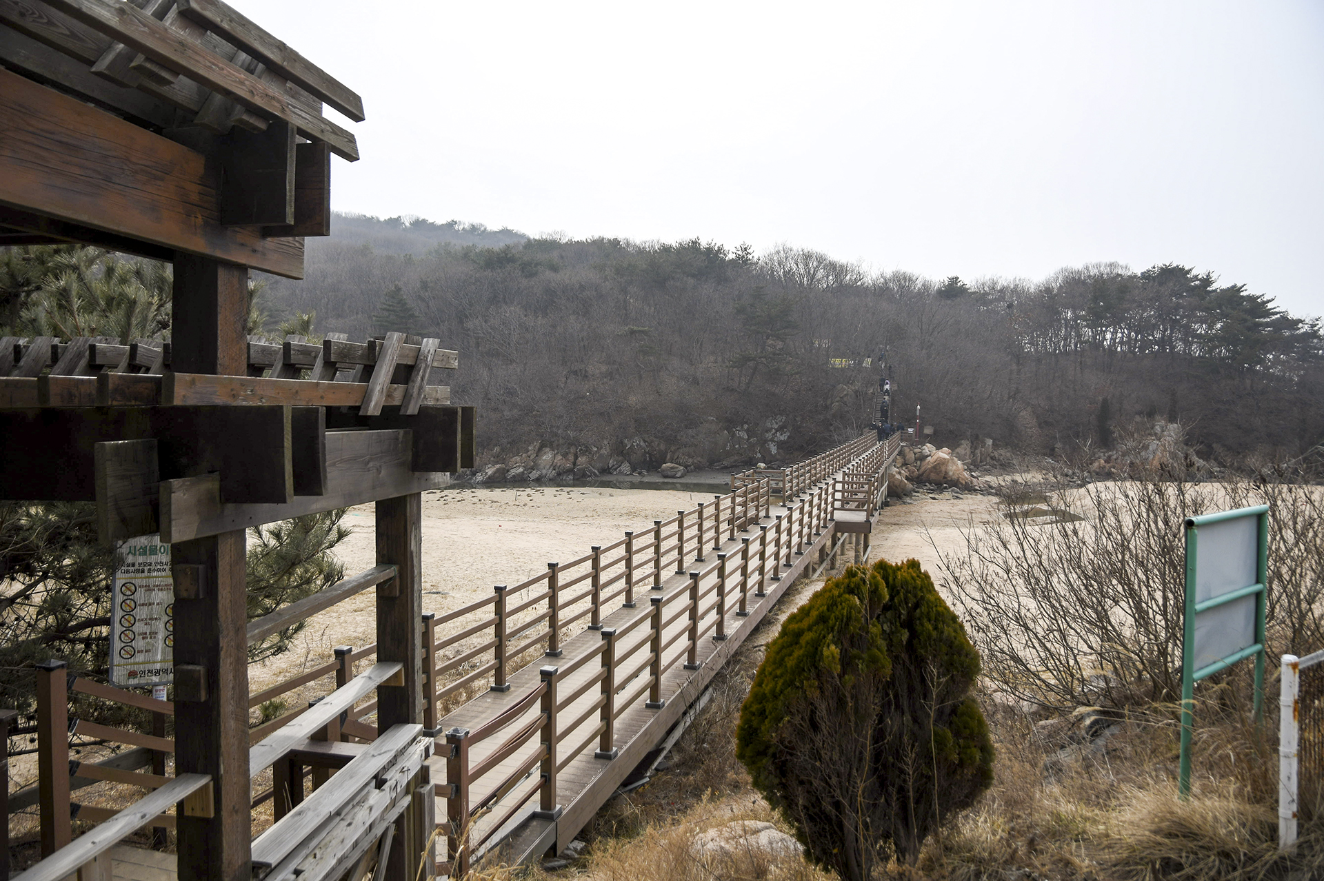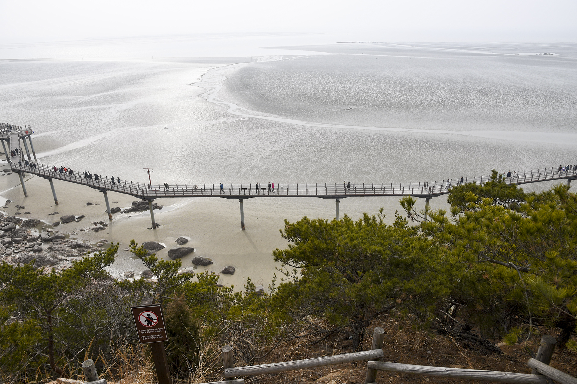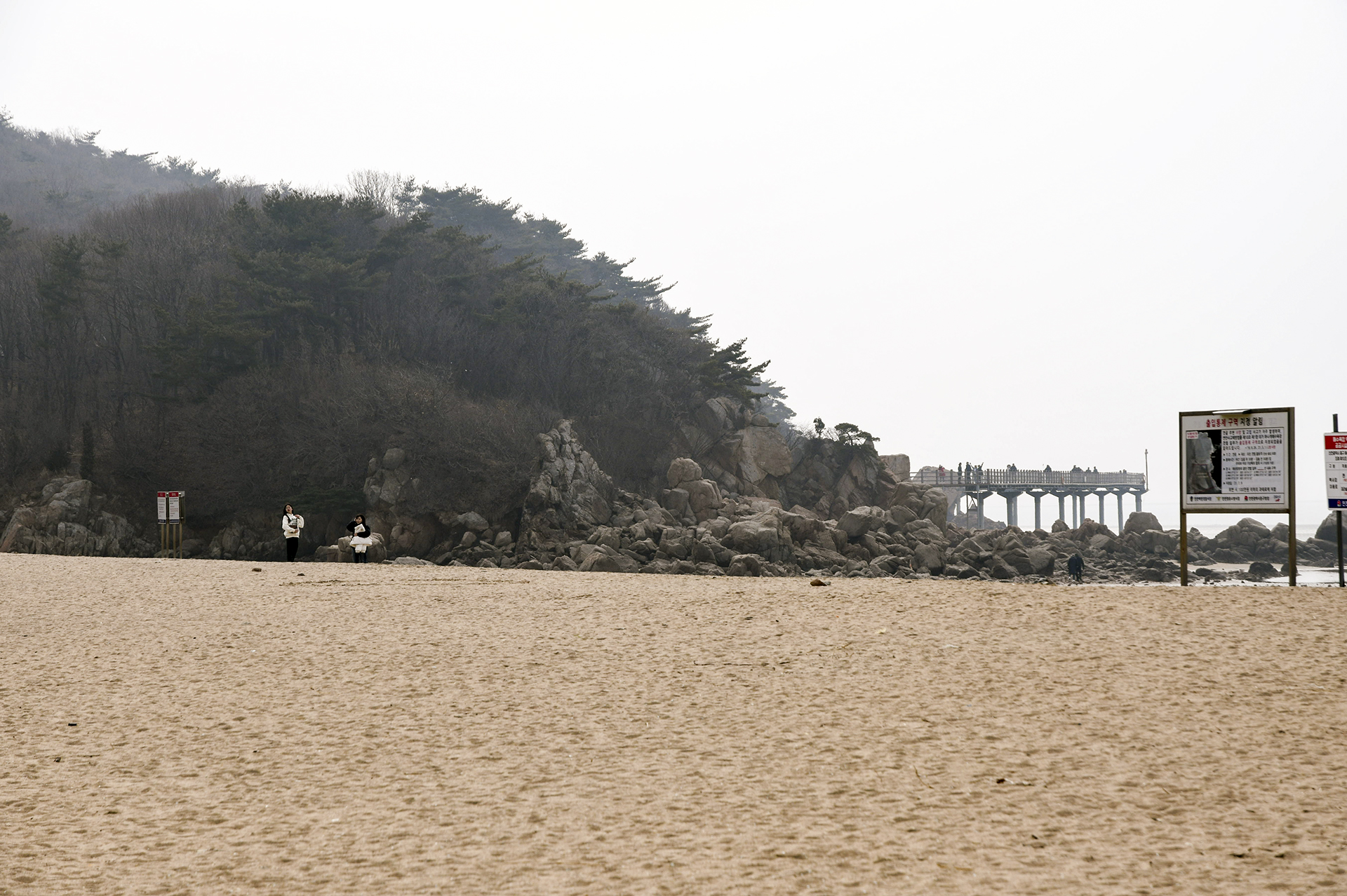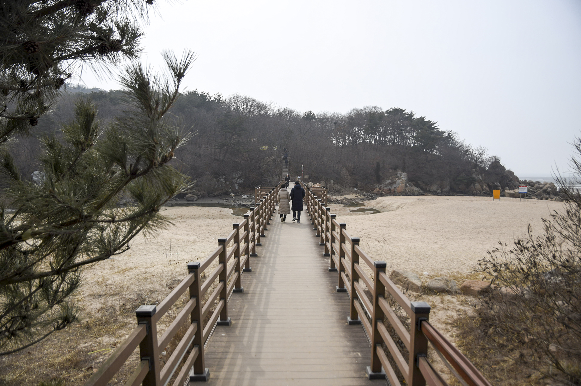 물 빠진 해수욕장에는 드넓은 모래뻘이 펼쳐져 있지만 계절이 계절인지라 방문하는 사람들 대부분이 갯벌보다는 탐방로를 걷고 있었다.