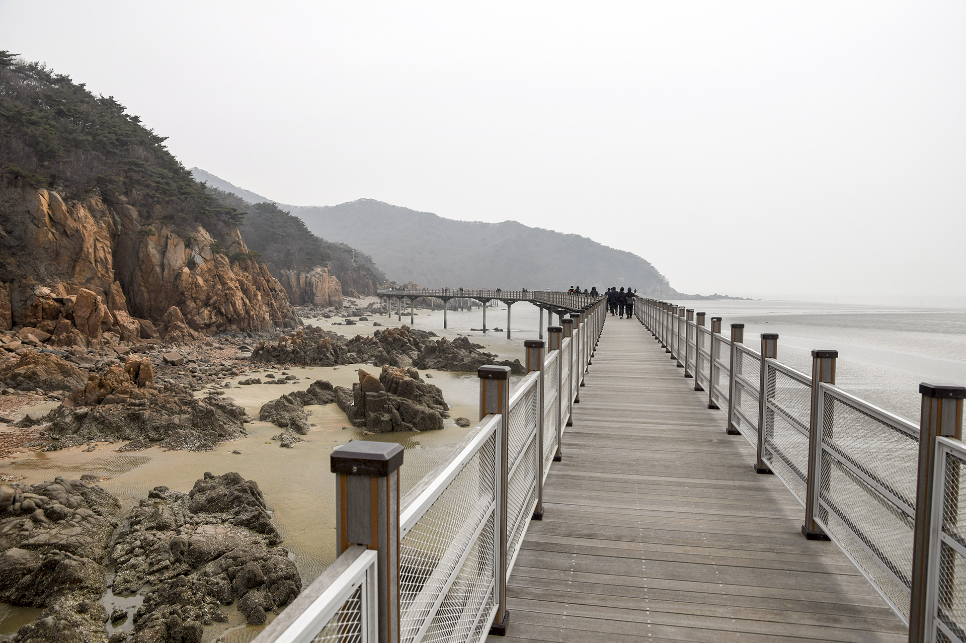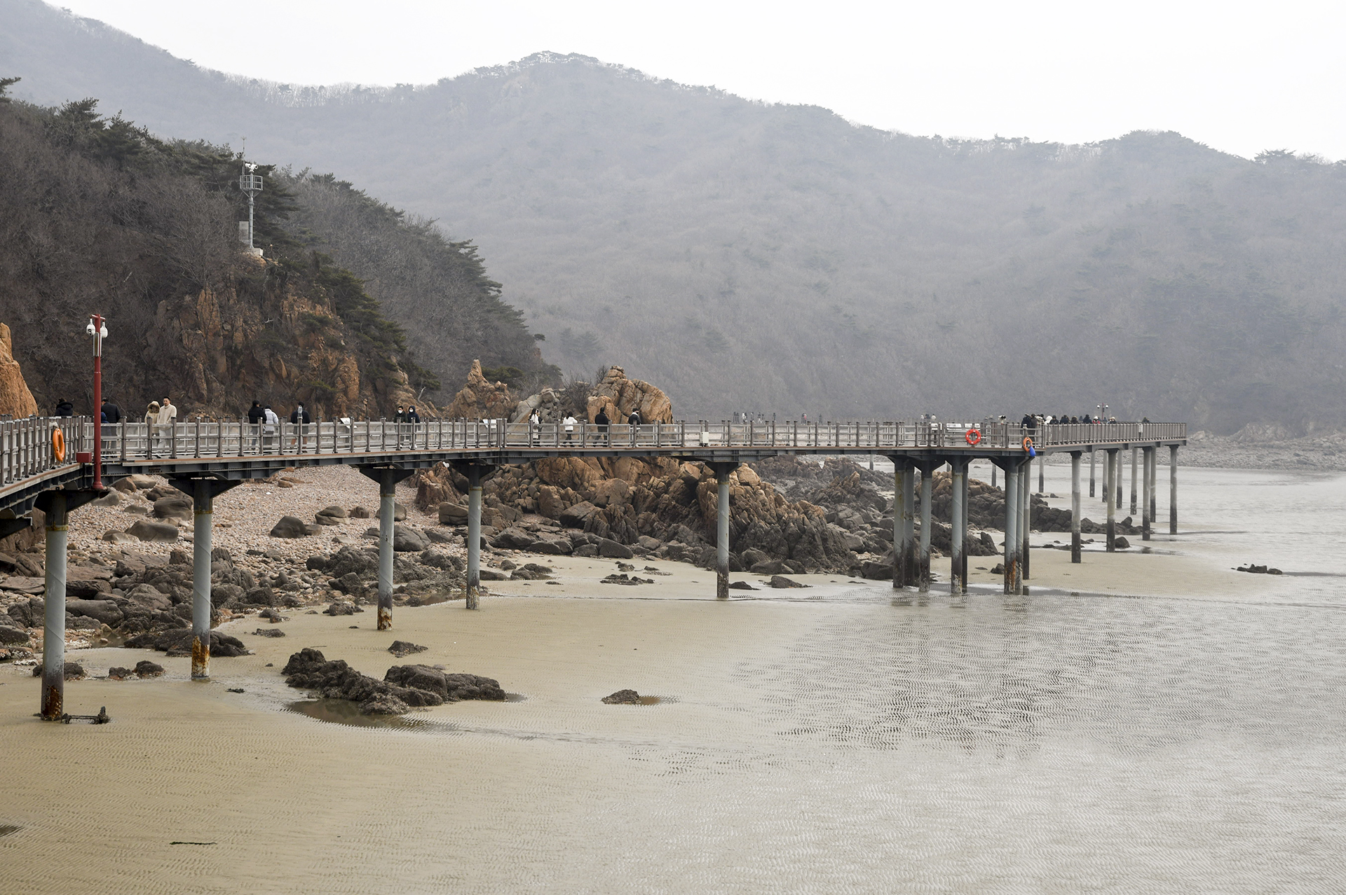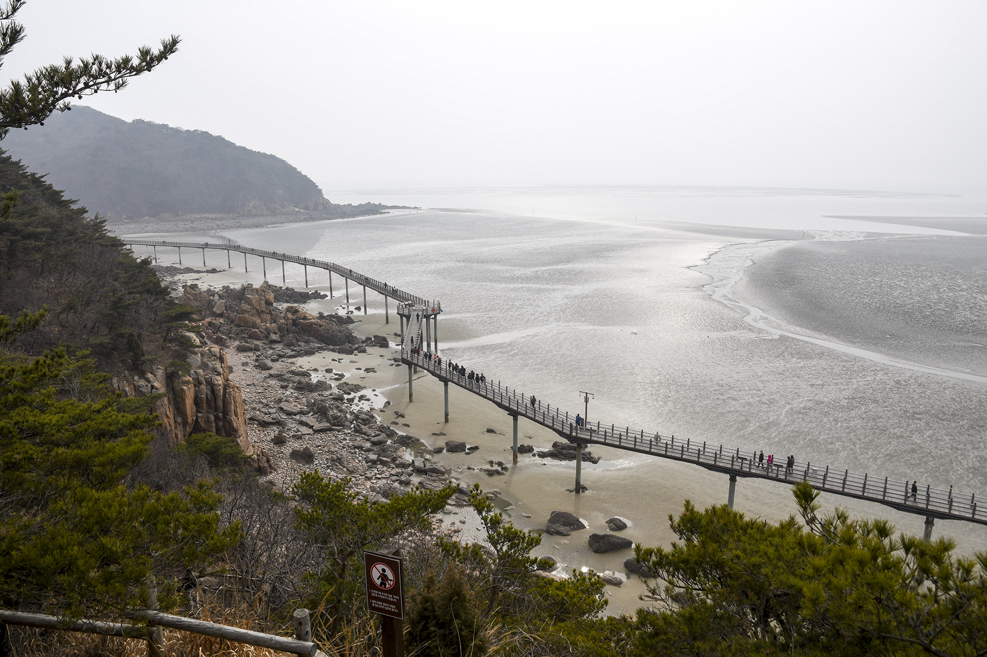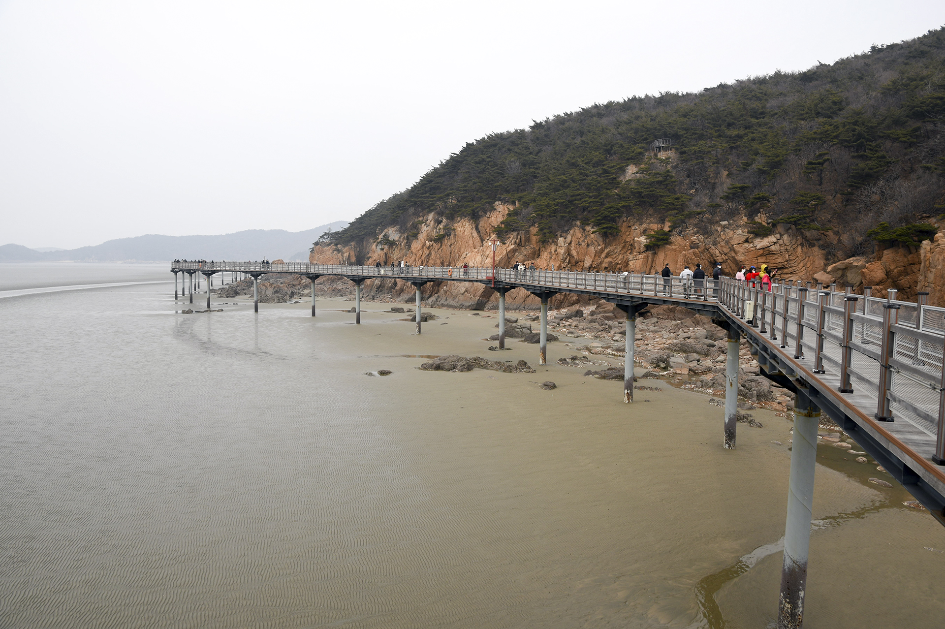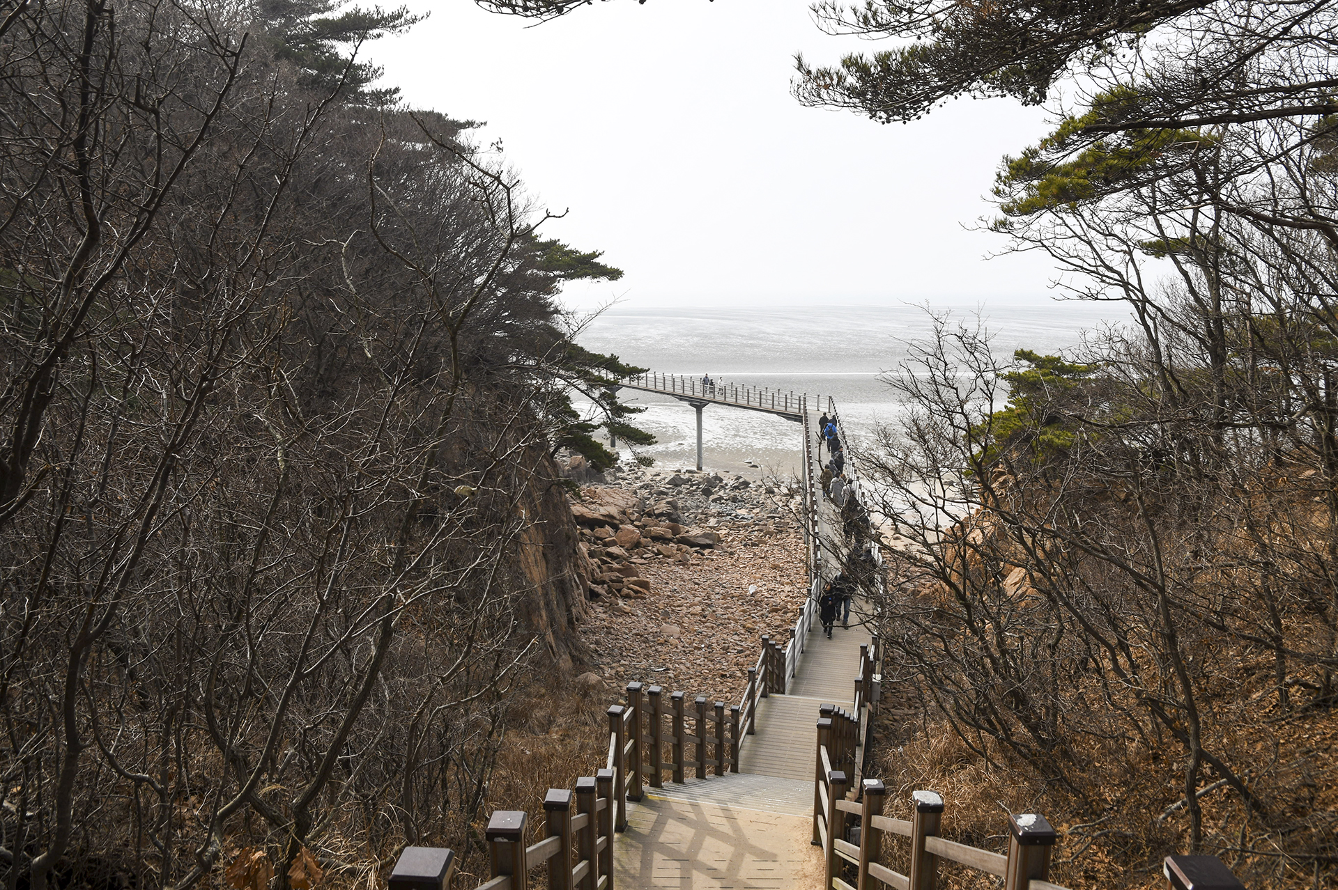 물 빠진 해수욕장에는 드넓은 모래뻘이 펼쳐져 있지만 계절이 계절인지라 방문하는 사람들 대부분이 갯벌보다는 탐방로를 걷고 있었다.