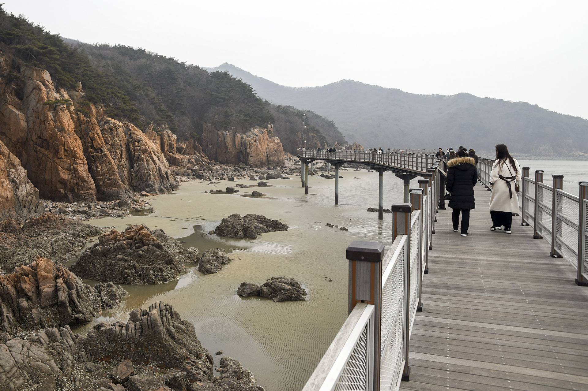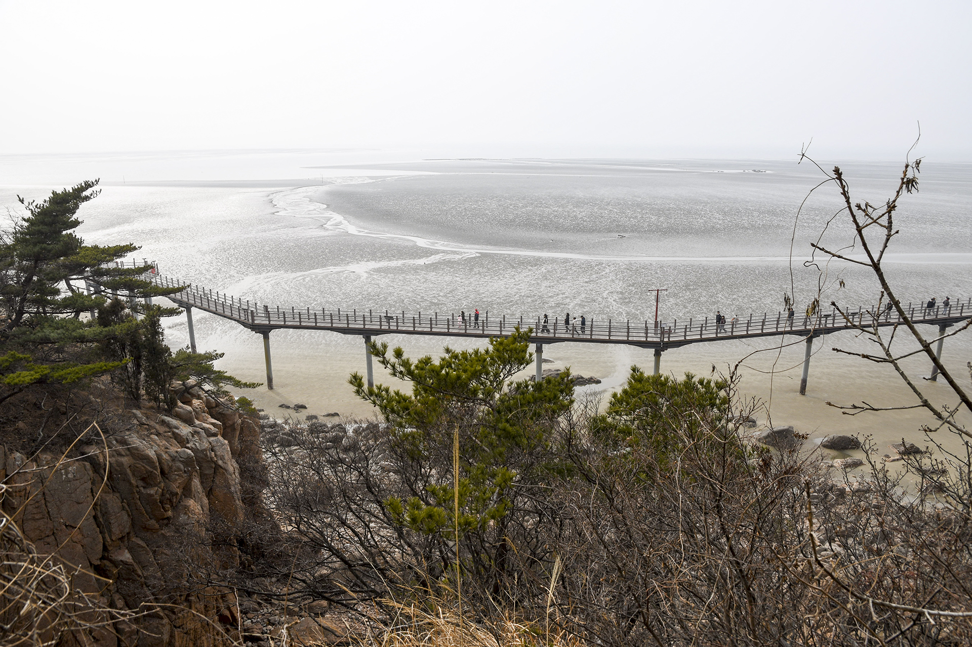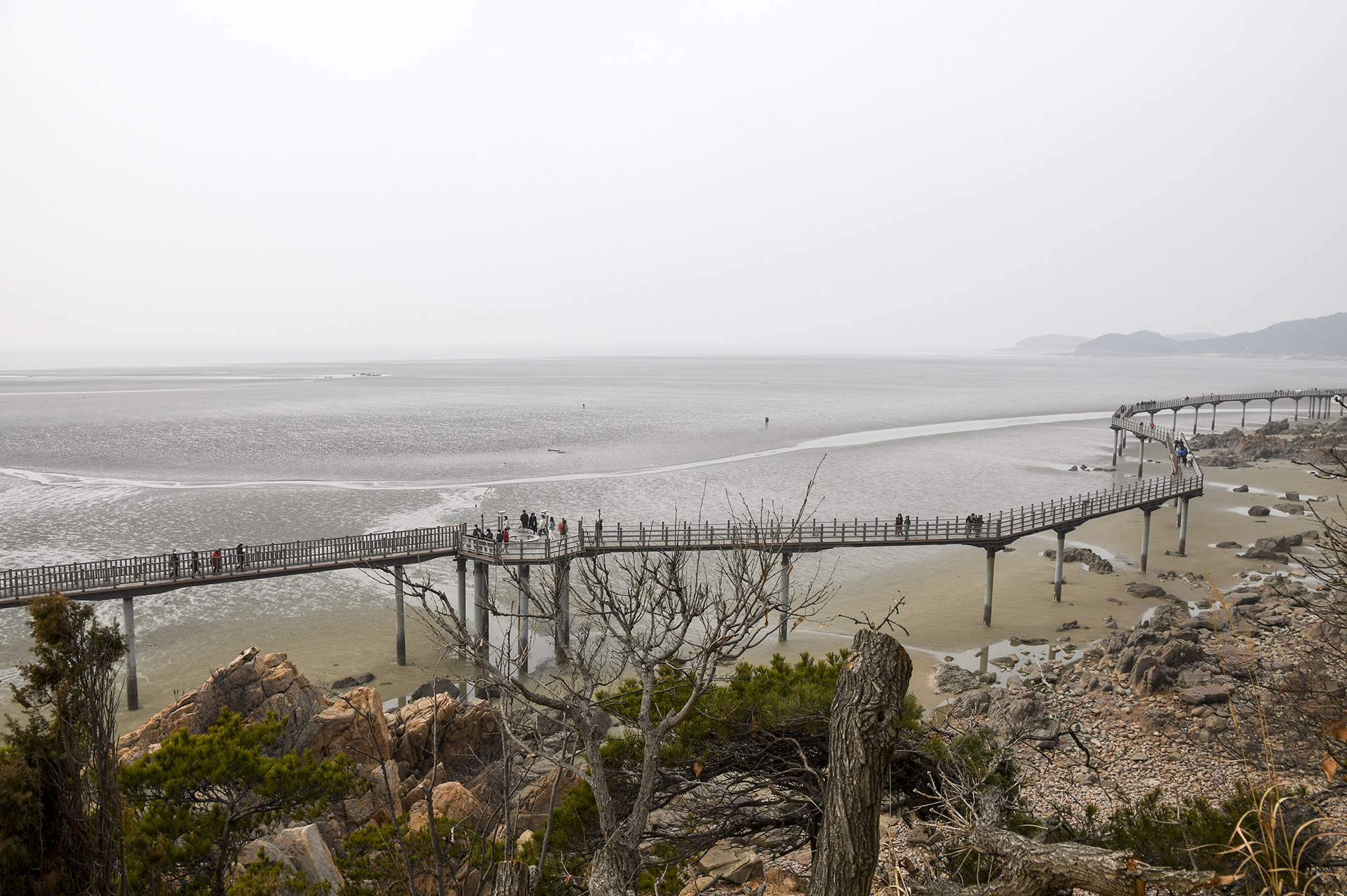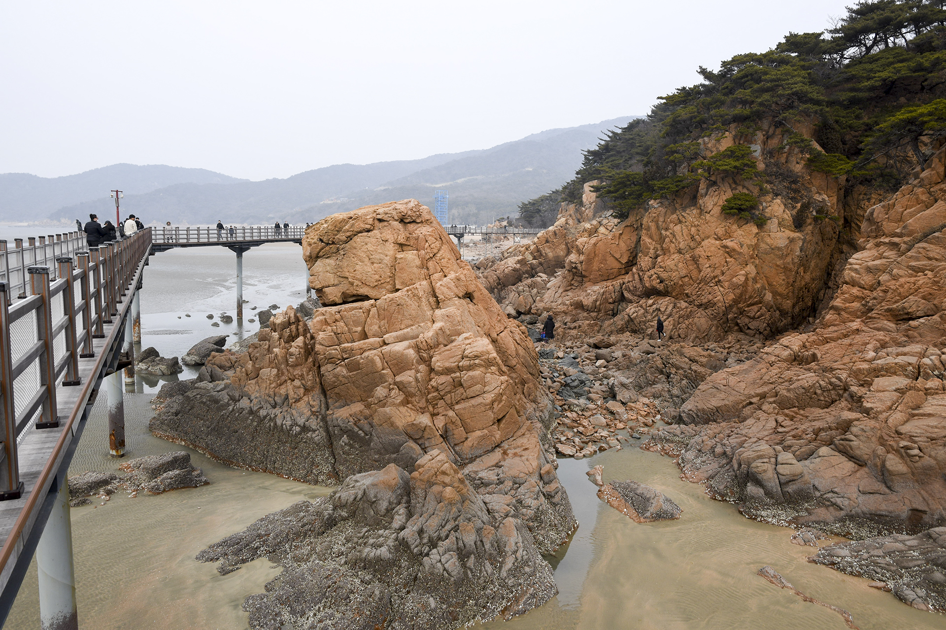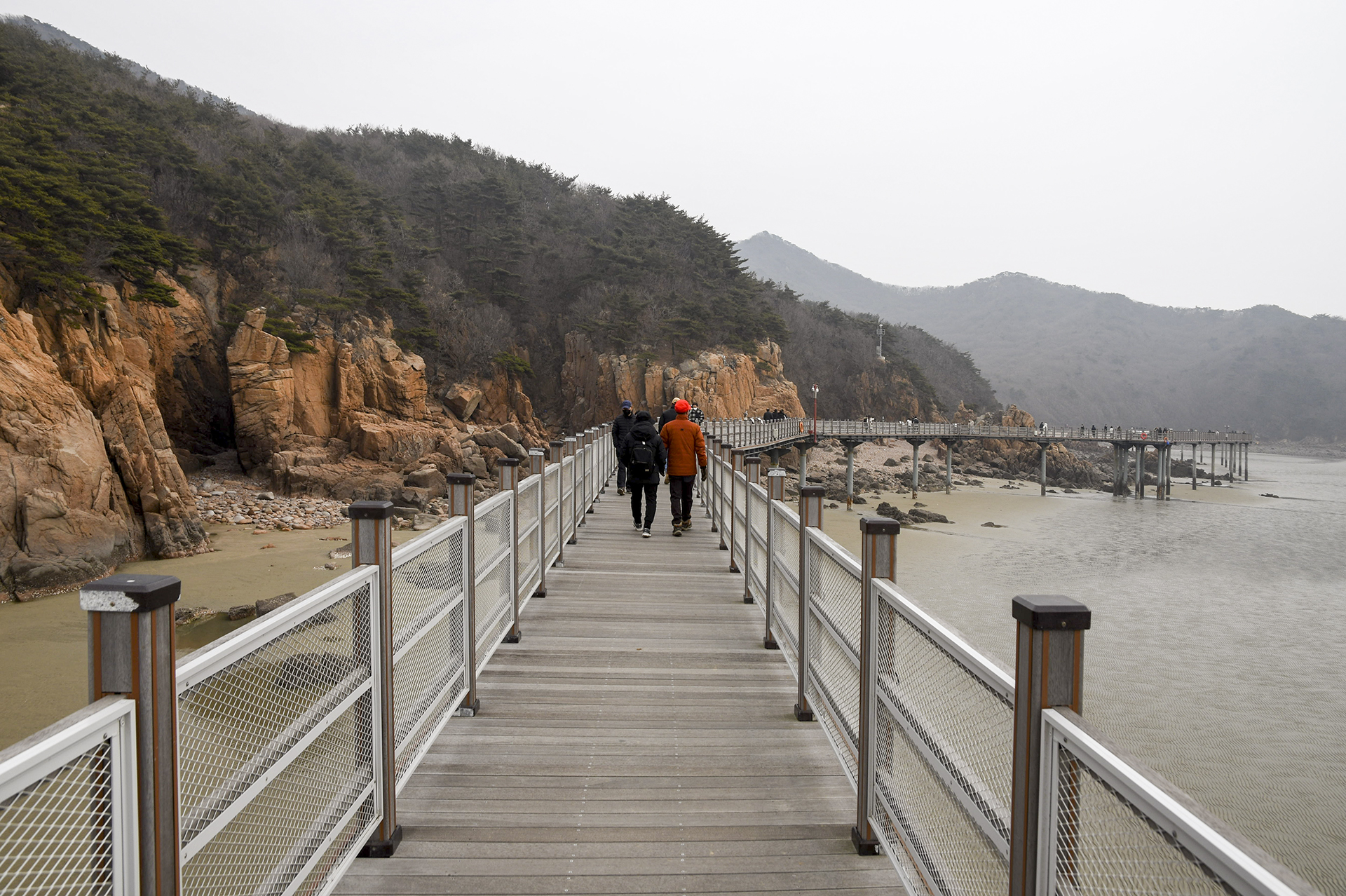물 빠진 해수욕장에는 드넓은 모래뻘이 펼쳐져 있지만 계절이 계절인지라 방문하는 사람들 대부분이 갯벌보다는 탐방로를 걷고 있었다.