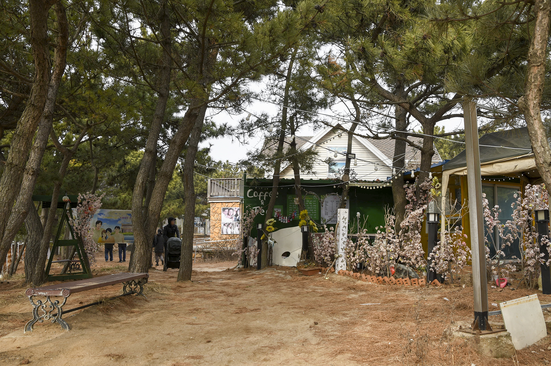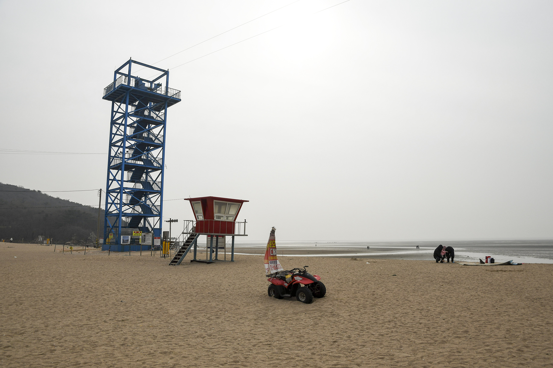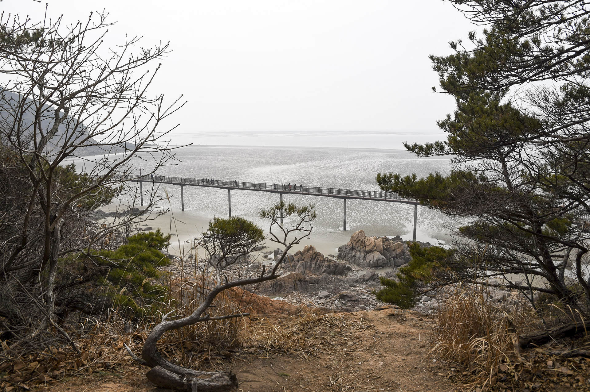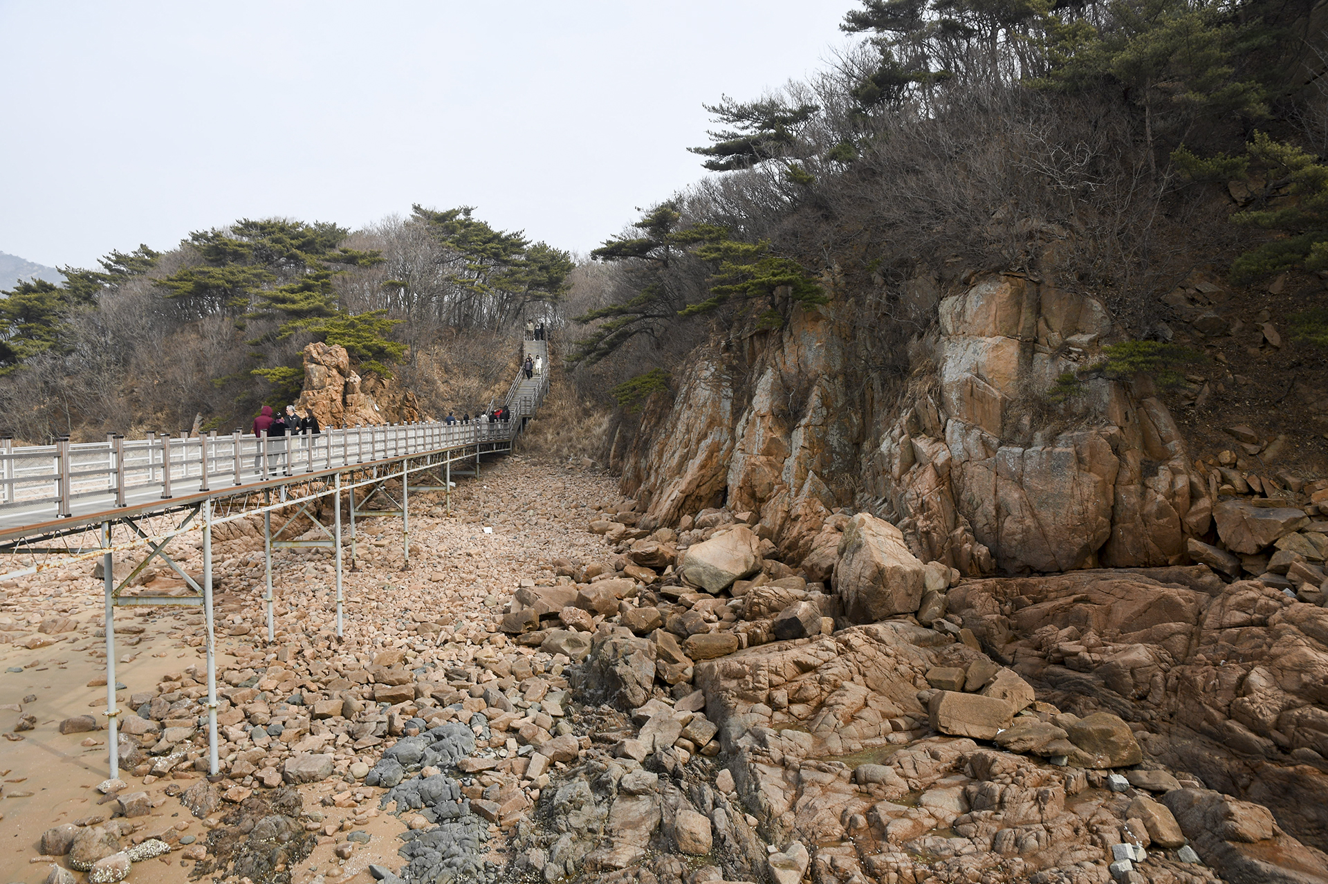 물 빠진 해수욕장에는 드넓은 모래뻘이 펼쳐져 있지만 계절이 계절인지라 방문하는 사람들 대부분이 갯벌보다는 탐방로를 걷고 있었다.