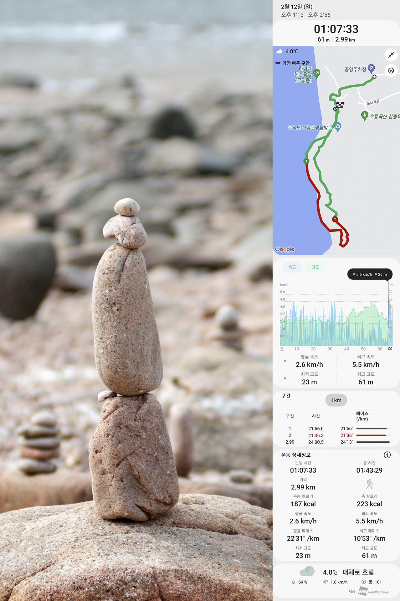 * 해상탐방로 거리 0.8km, 실제걸은 거리 왕복 2.99km