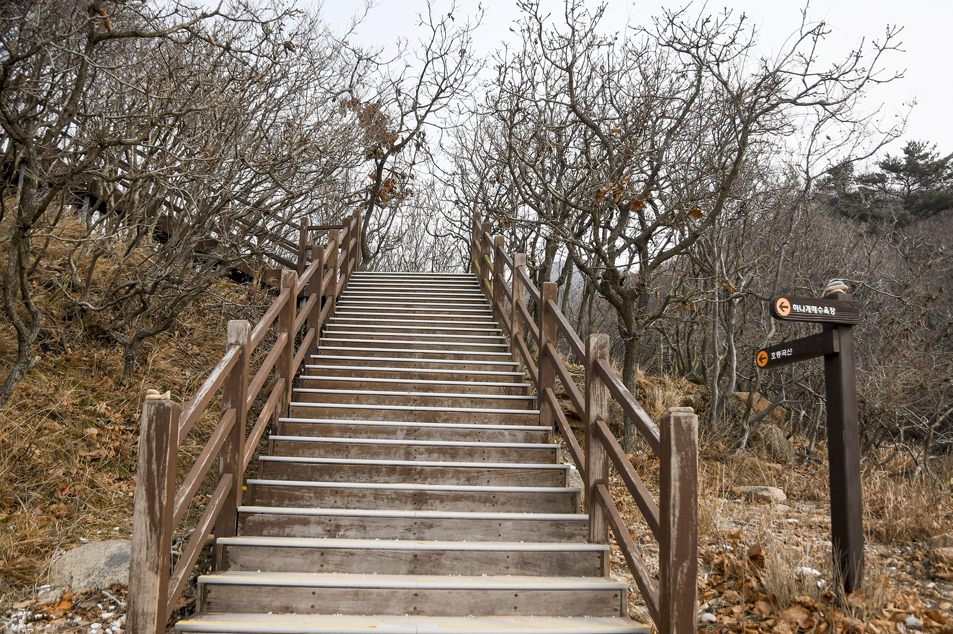 계단을 올라오면 하나개해수욕장과 호룡곡산 갈림길이 나온다.