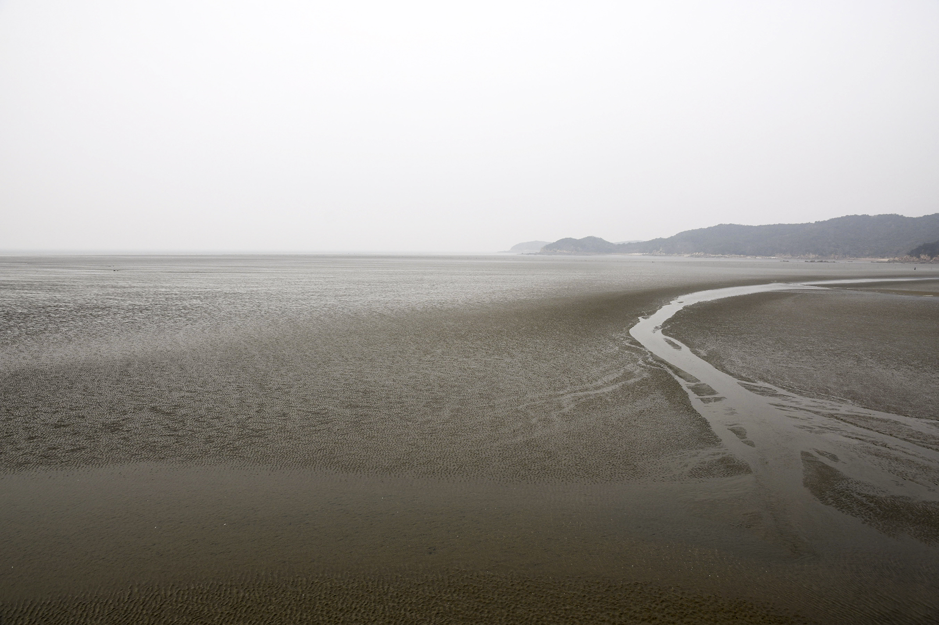 아래로 내려다보니 갯벌이 지문 마냥 물결무늬를 하고 있다.