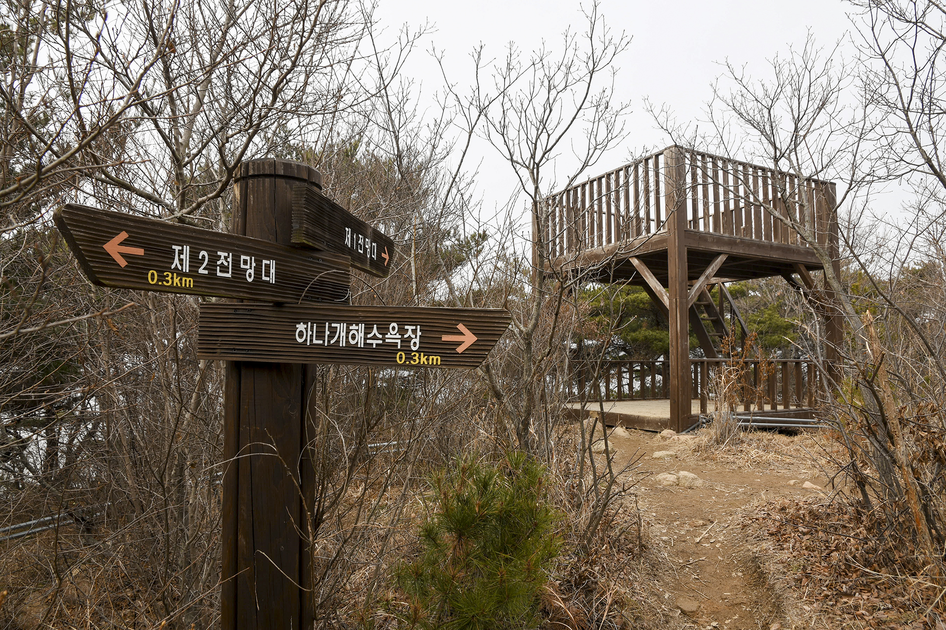 제1전망대에 도착하게 되는데, 올라가보니 우거진 잡목들때문에 아무것도 보이지 않는 전망대였다.