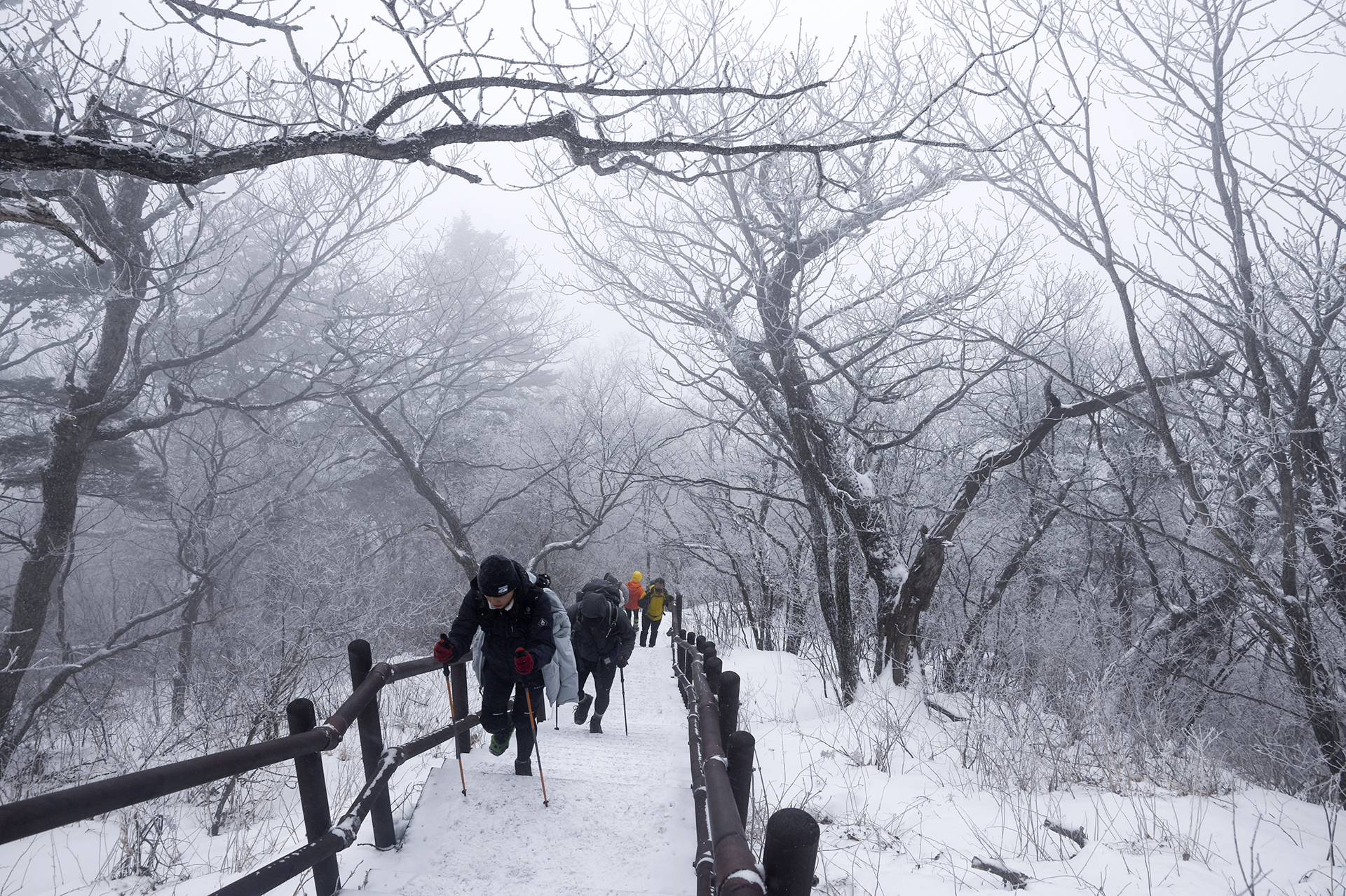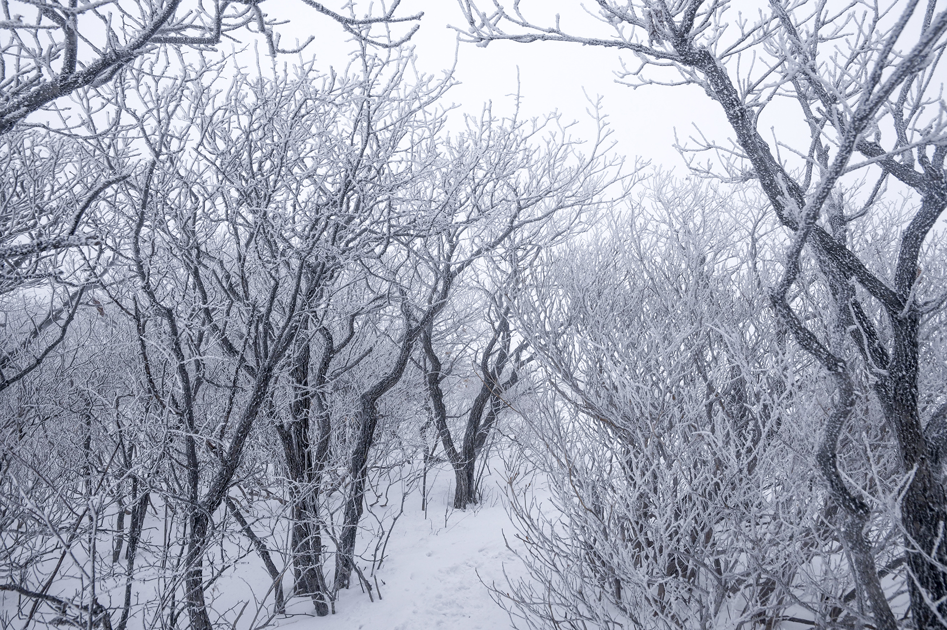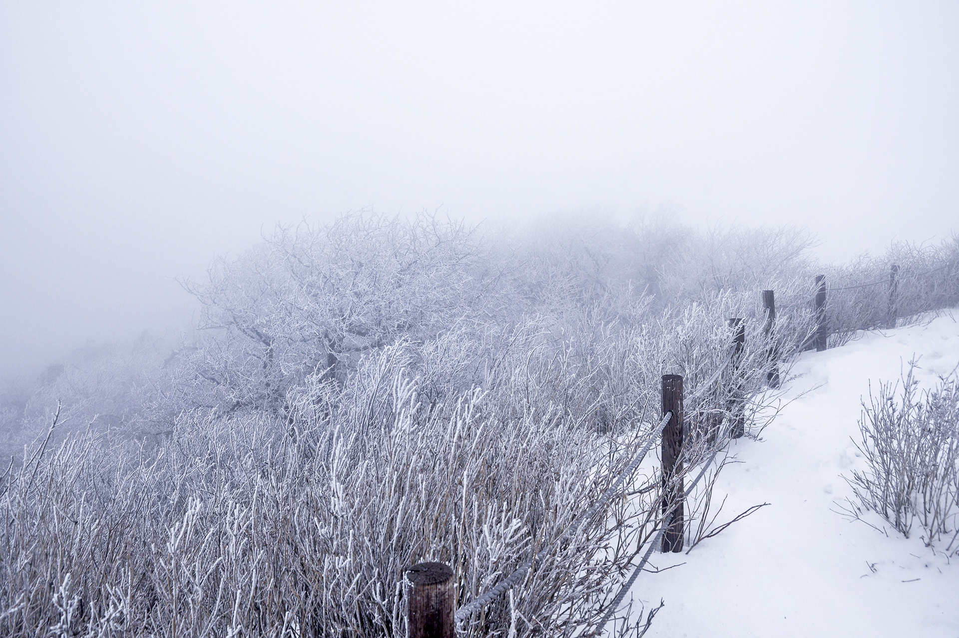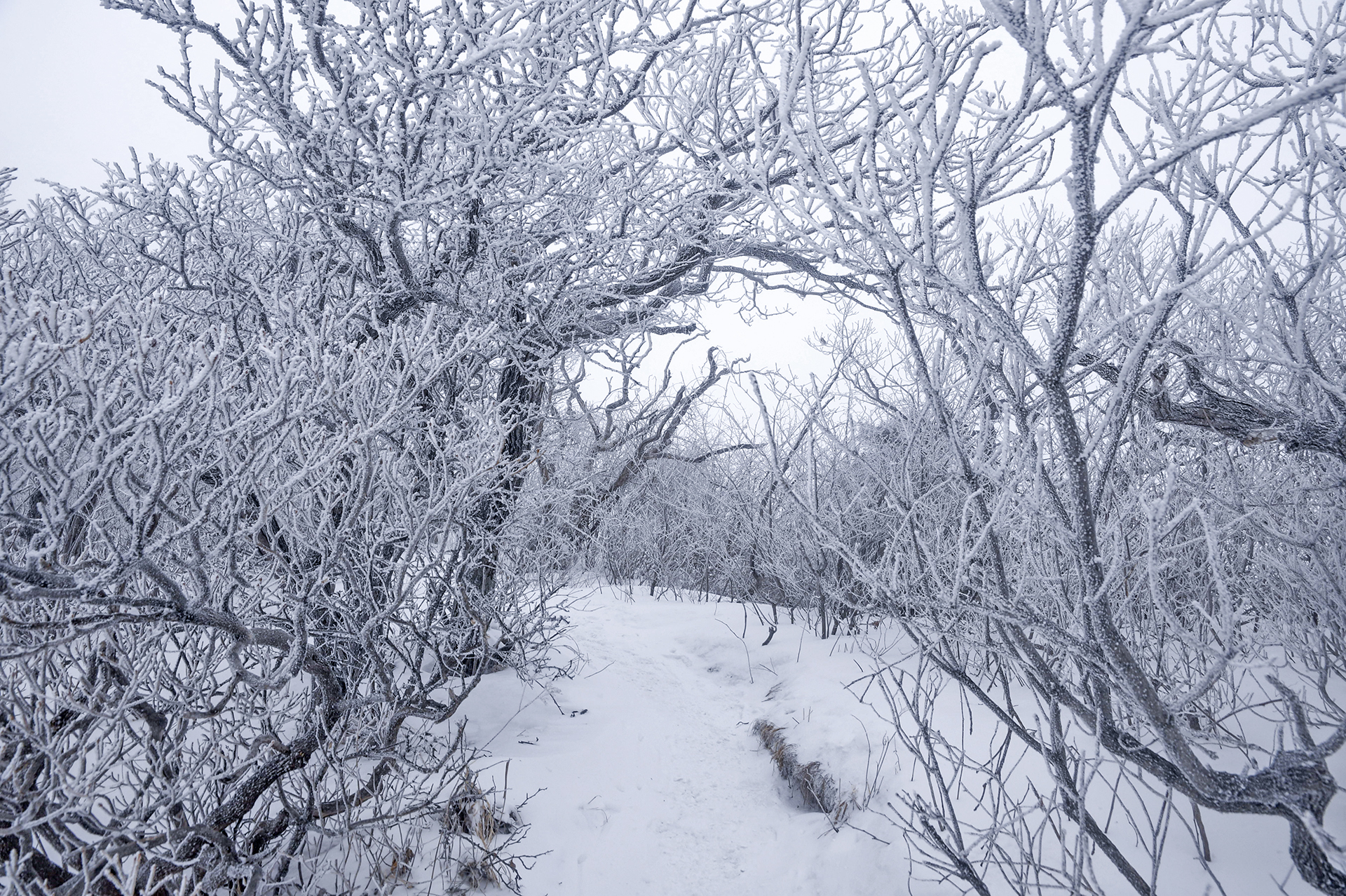 온통 새하얀 눈길과 상고대의 장관이 펼쳐진다.