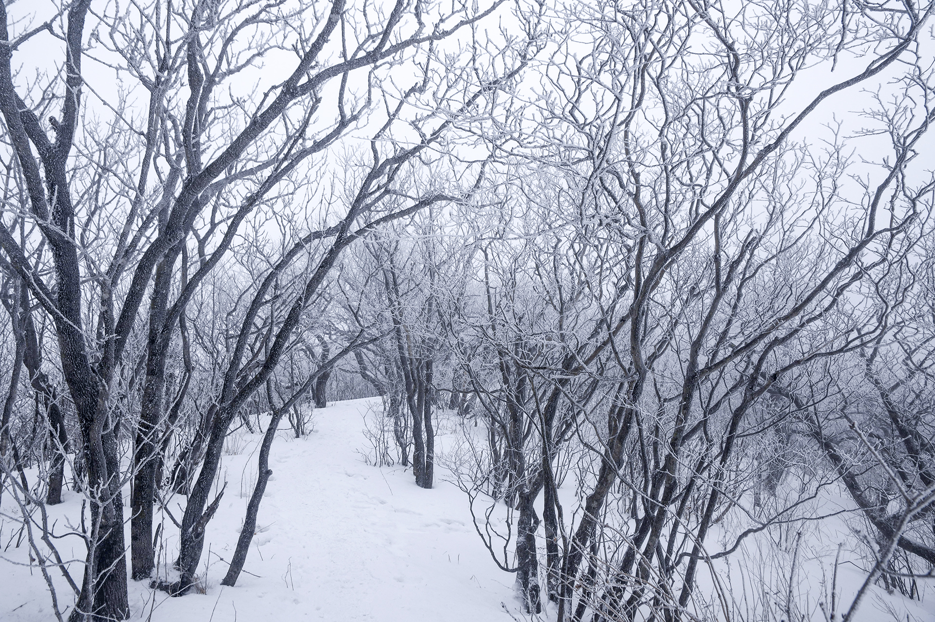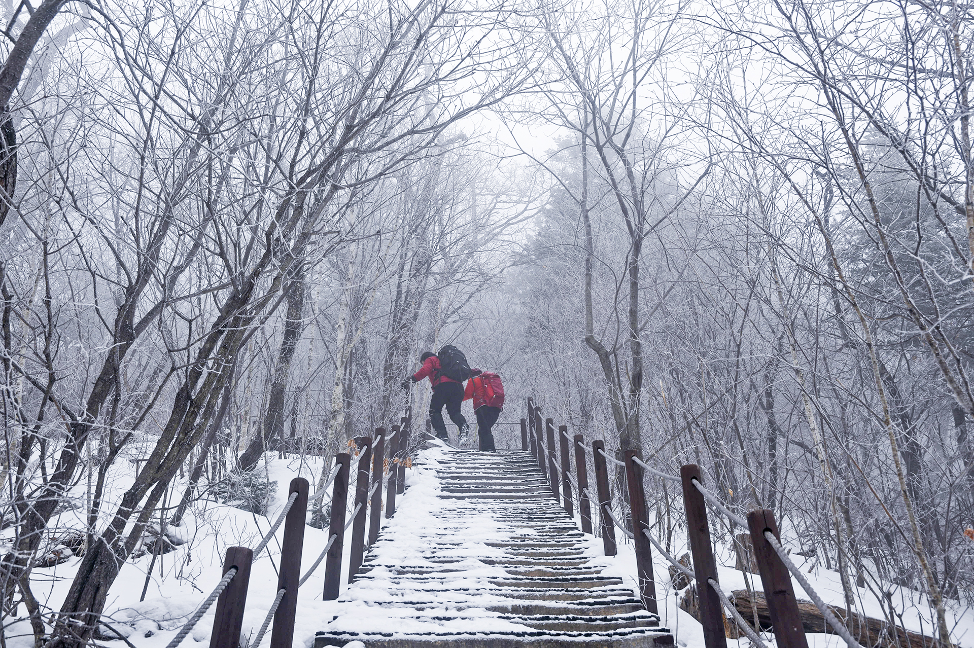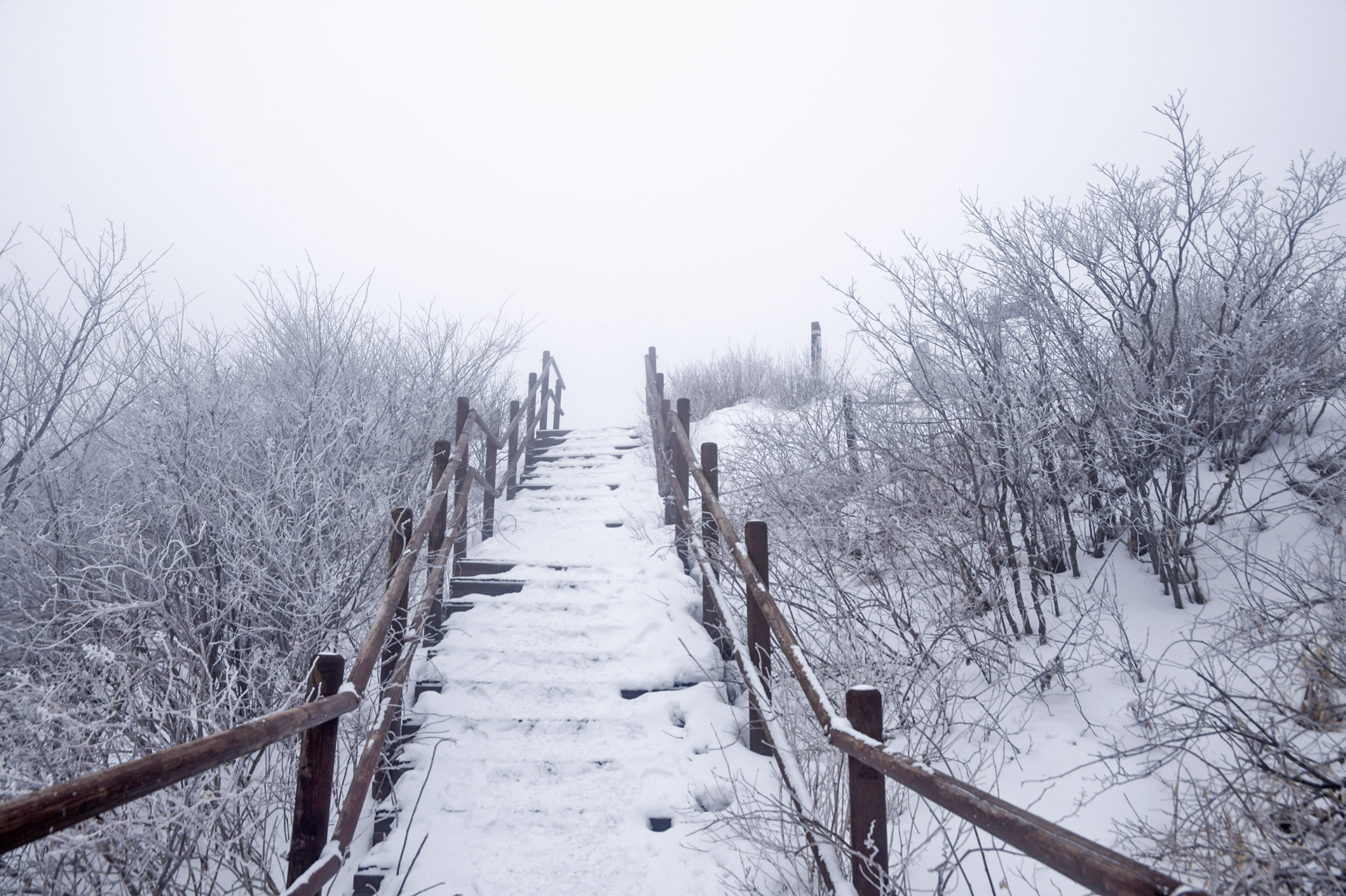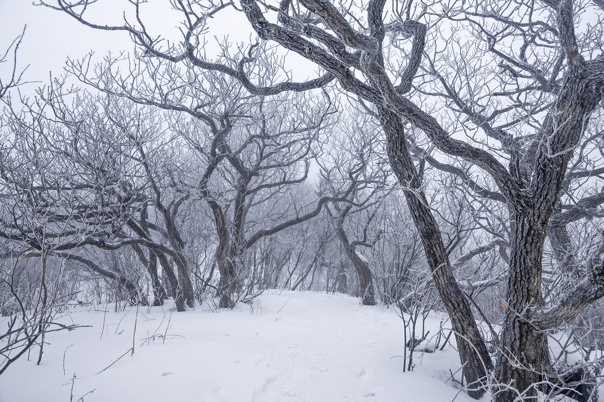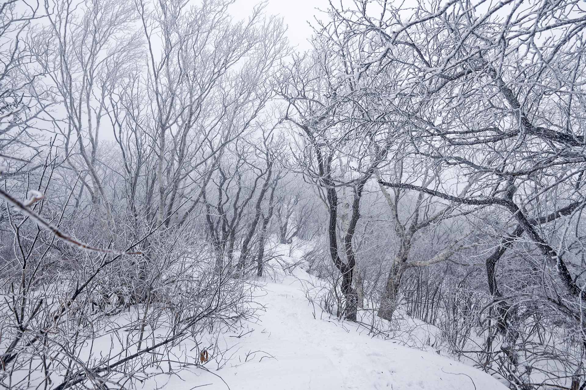 온통 새하얀 눈길과 상고대의 장관이 펼쳐진다.