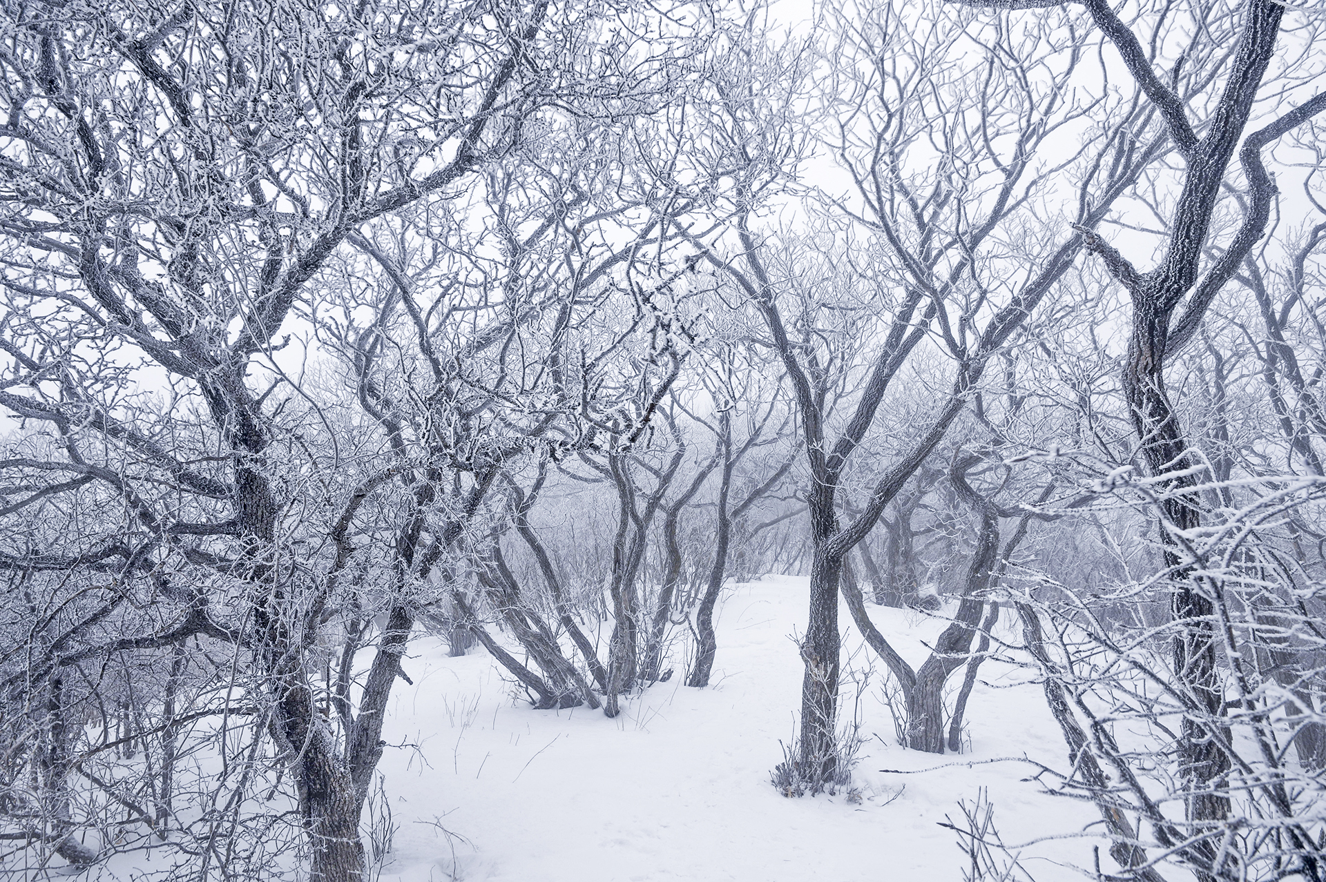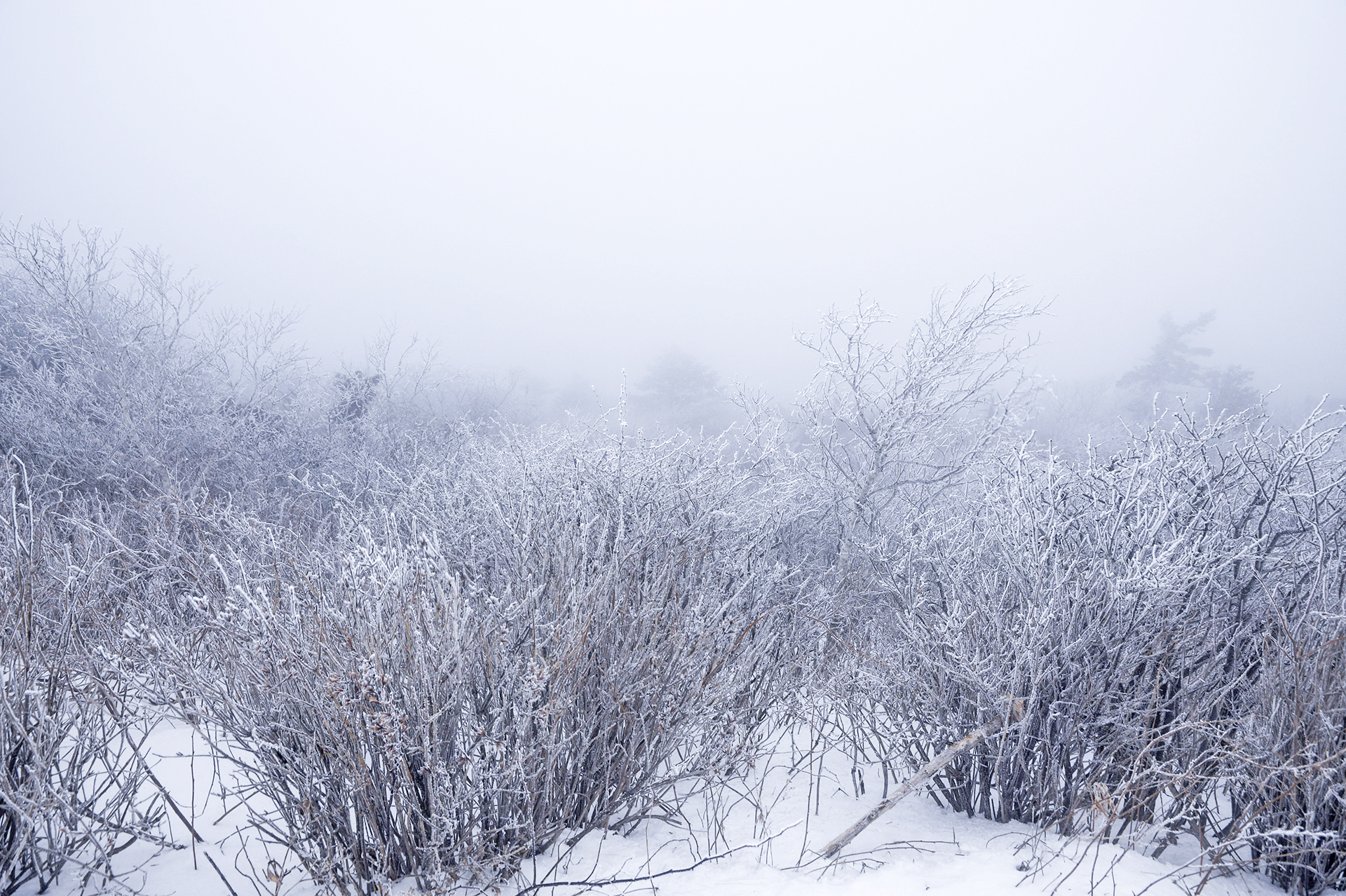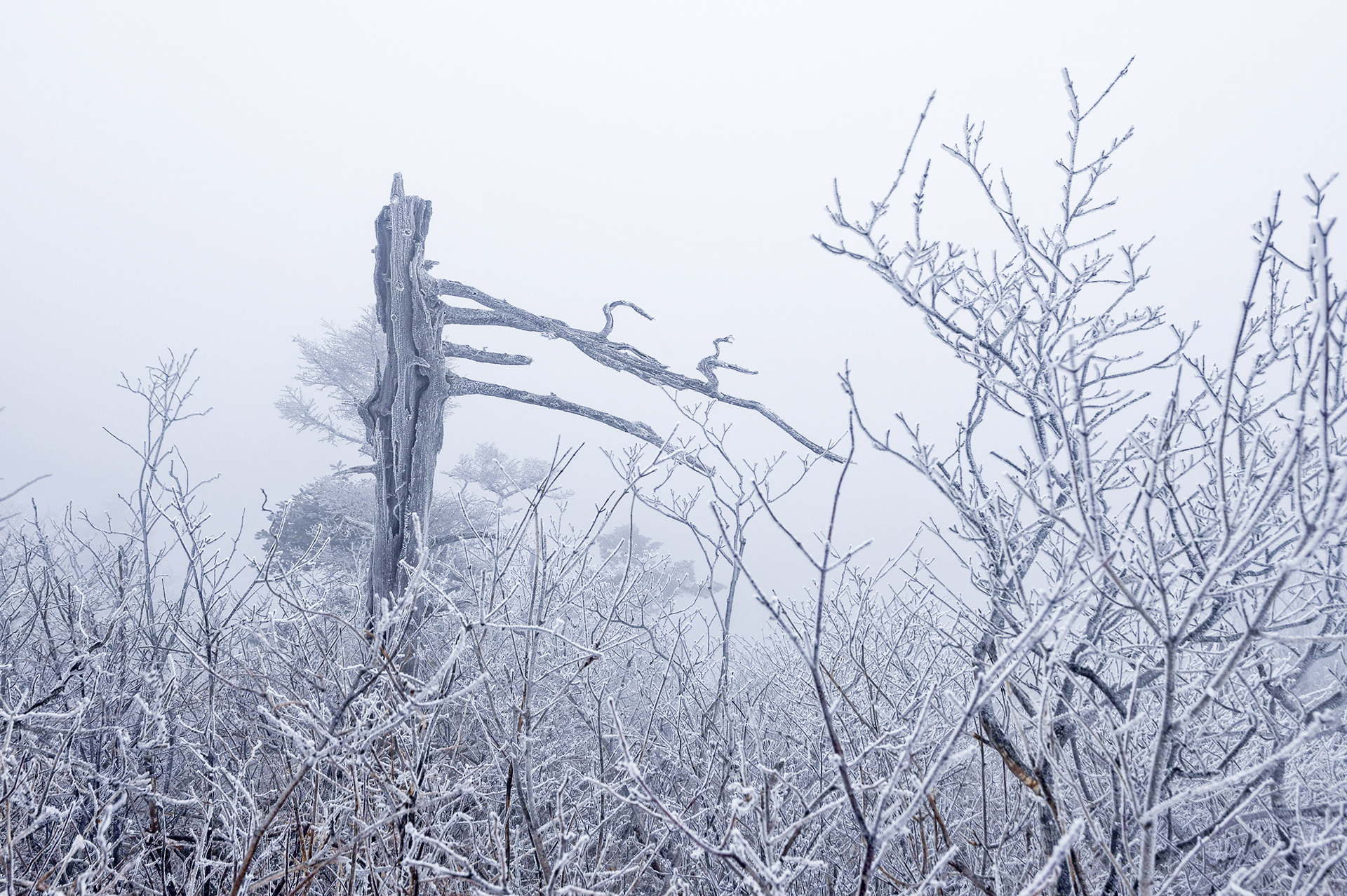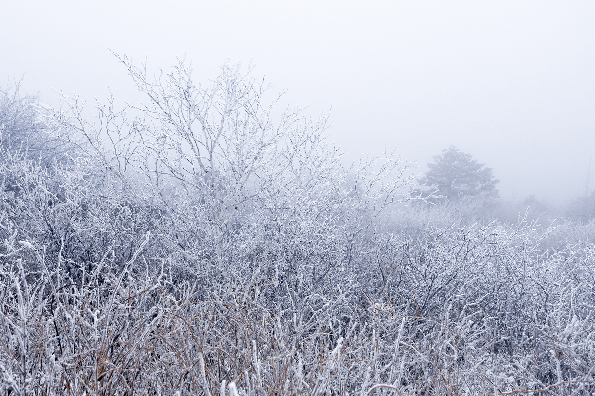 하늘은 어둡지만 새하얀 상고대는 그림 같이 피었다.