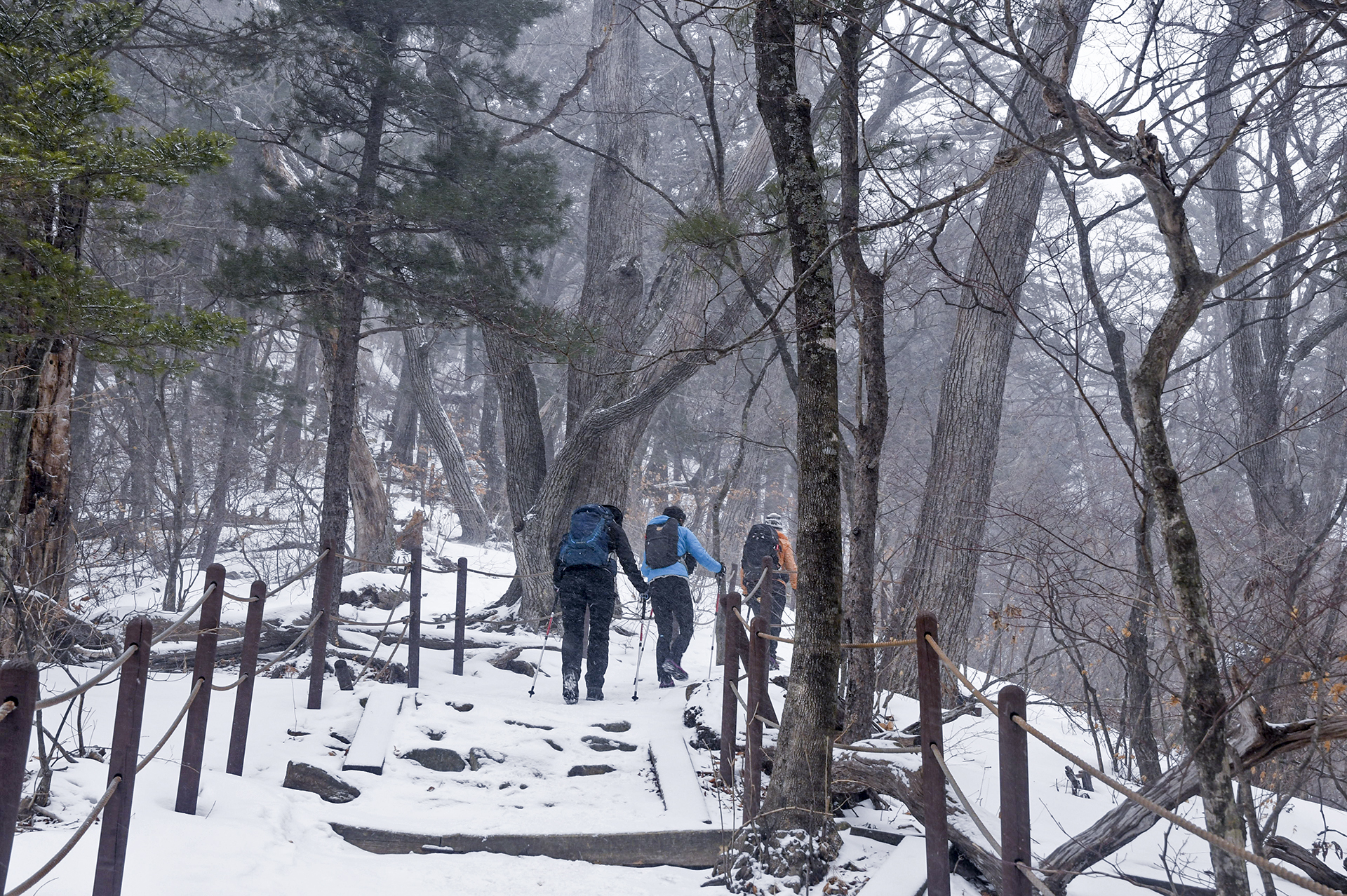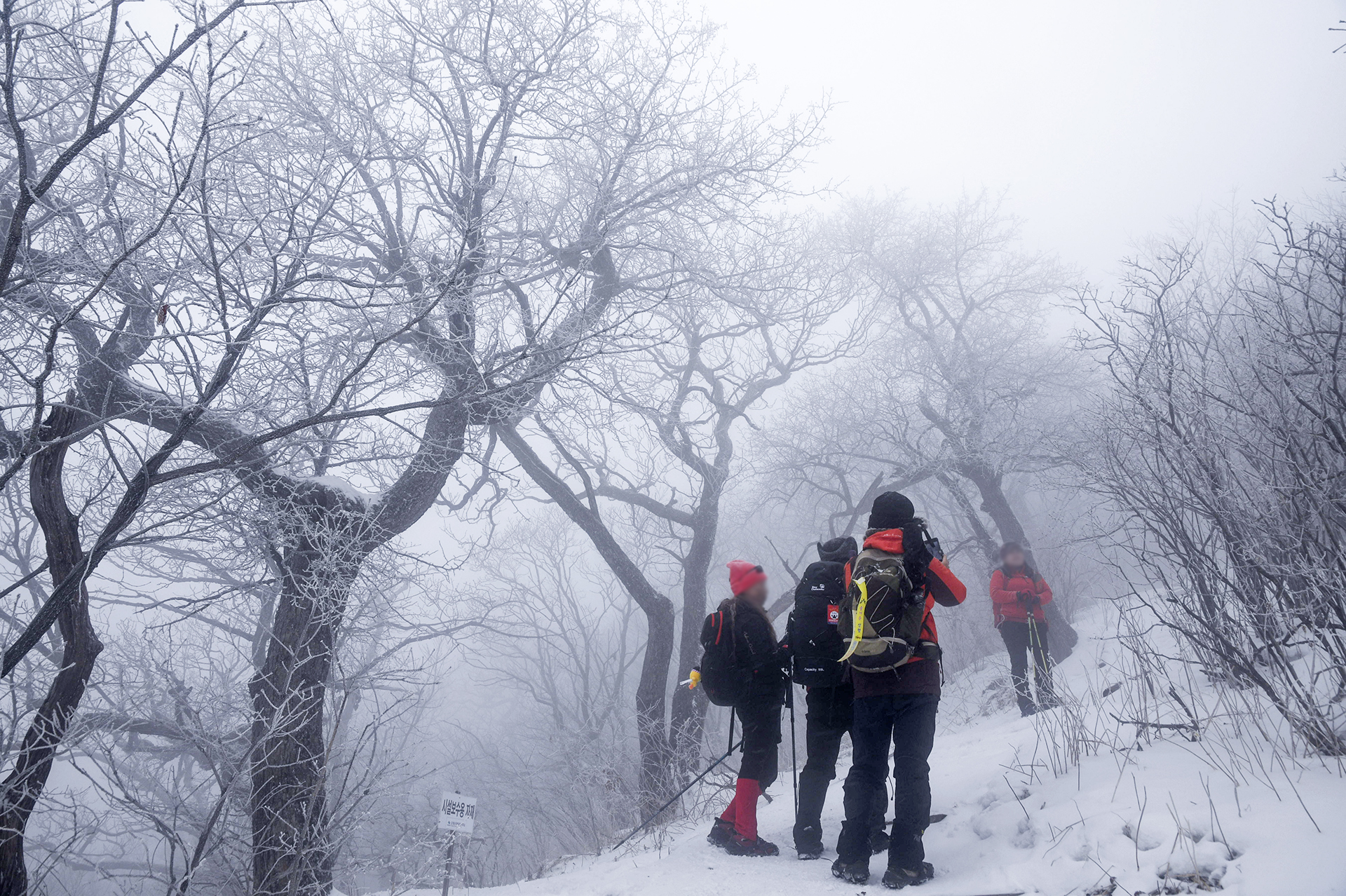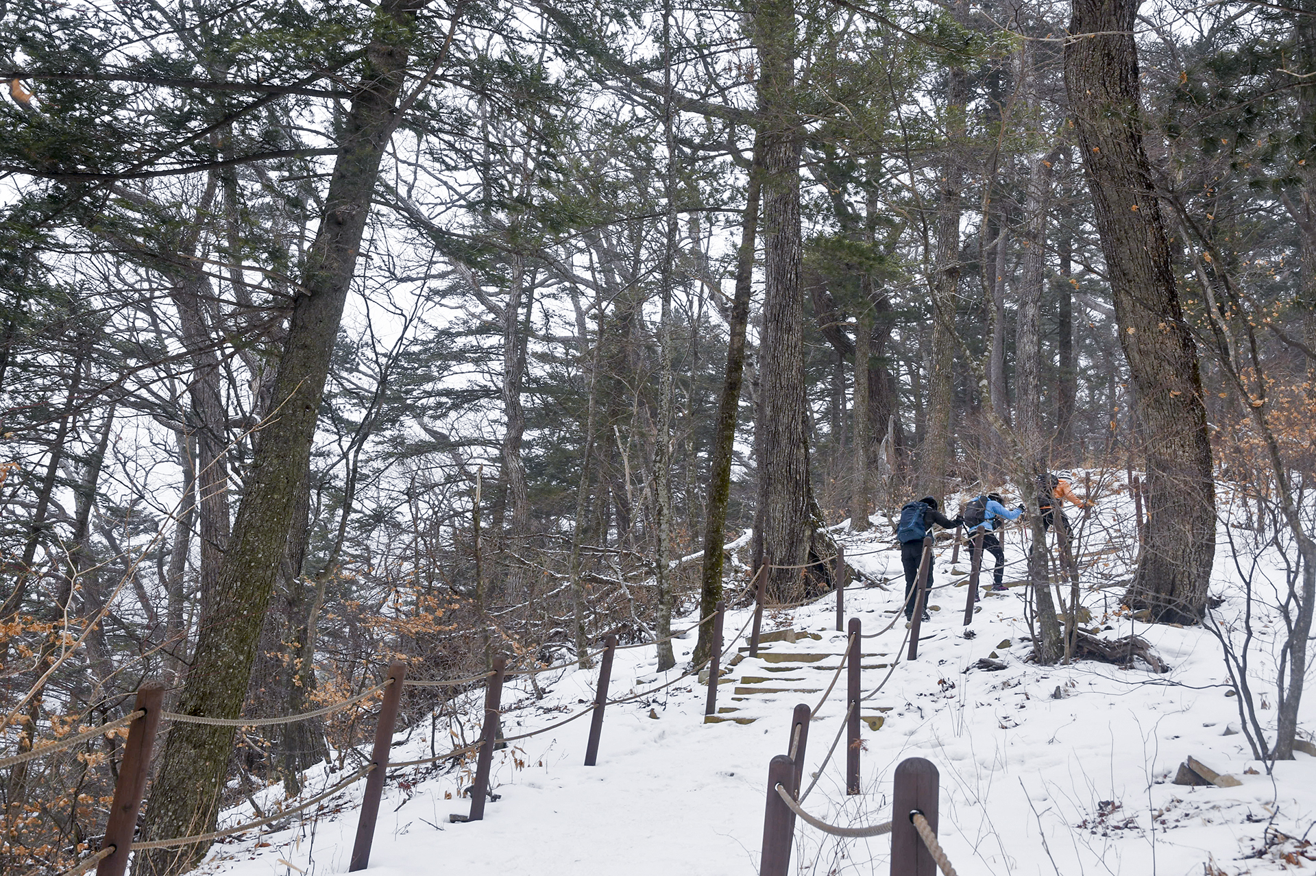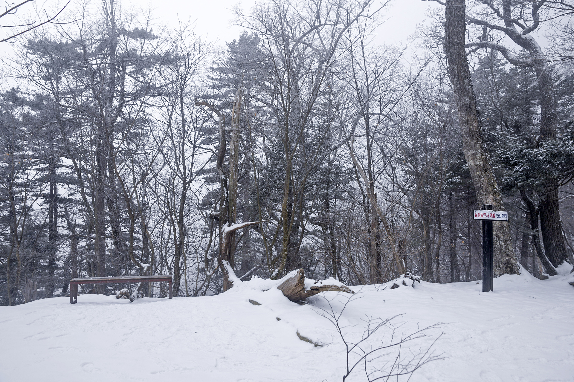 눈이 많이 쌓여 있어 앞선 발자국이 없었다면 등산로인지 구분이 안갈때도 있다.