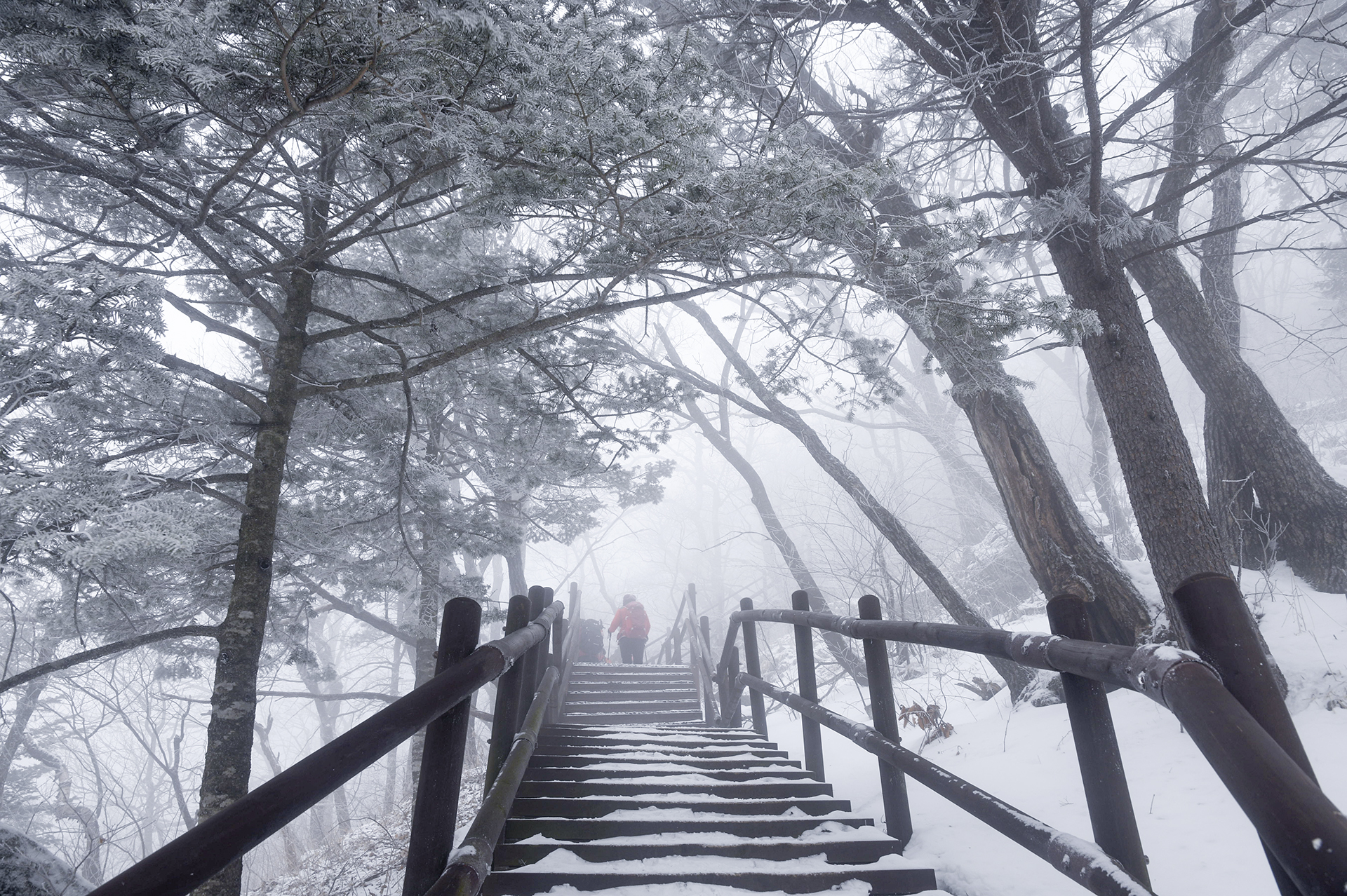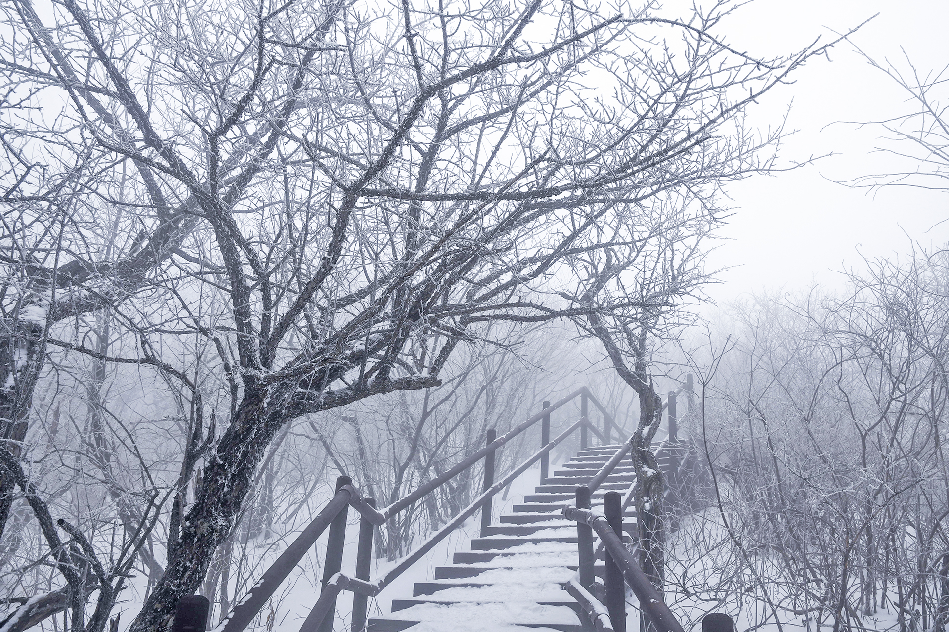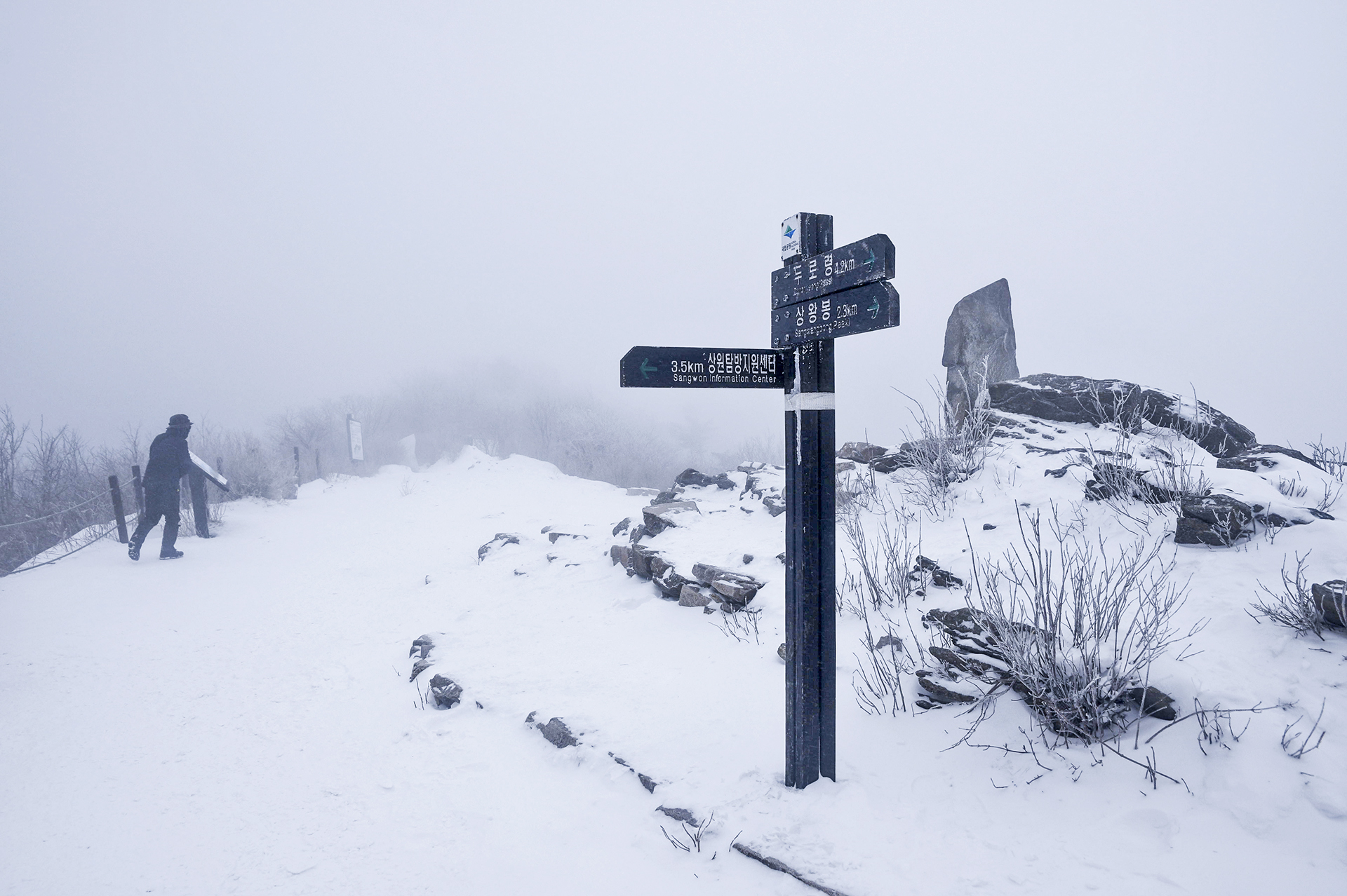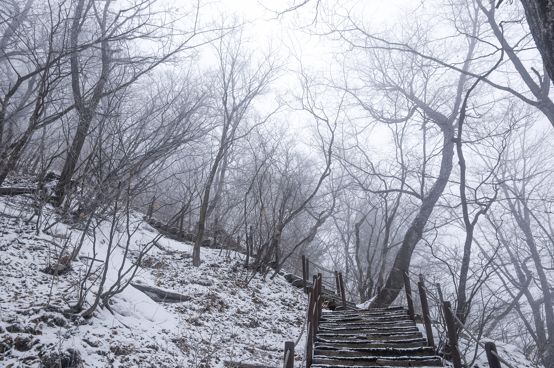 자욱한 안개 덕분에 그래도 몽환적인 풍경이 펼쳐지지만, 태백산에서도 경험했듯 맑은 하늘이 열리기를 기대해 본다.