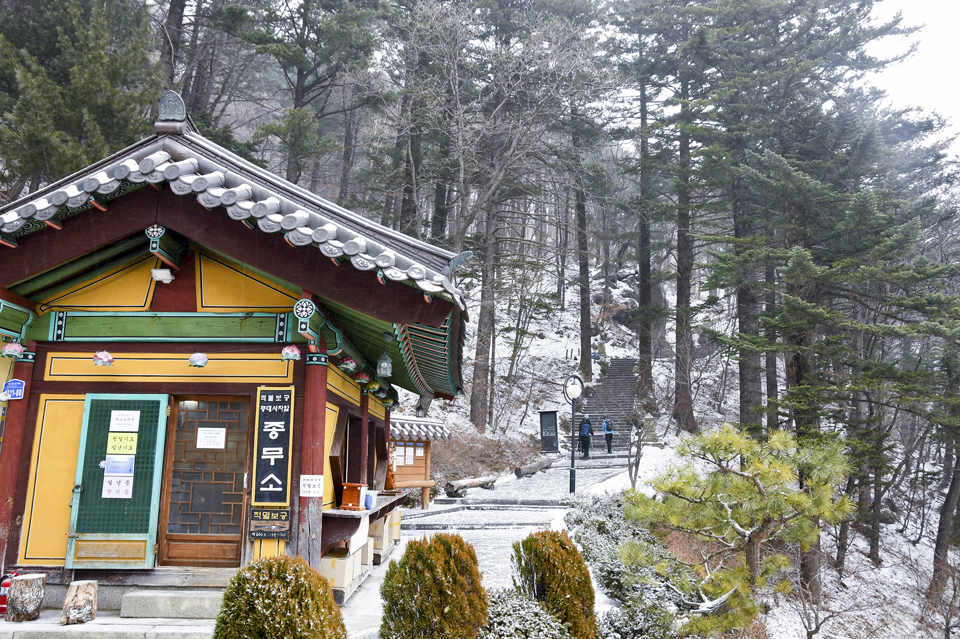 경내에 들어서니 밟기 조차 조심스러운 새하얀 눈이 소복히 쌓였다.