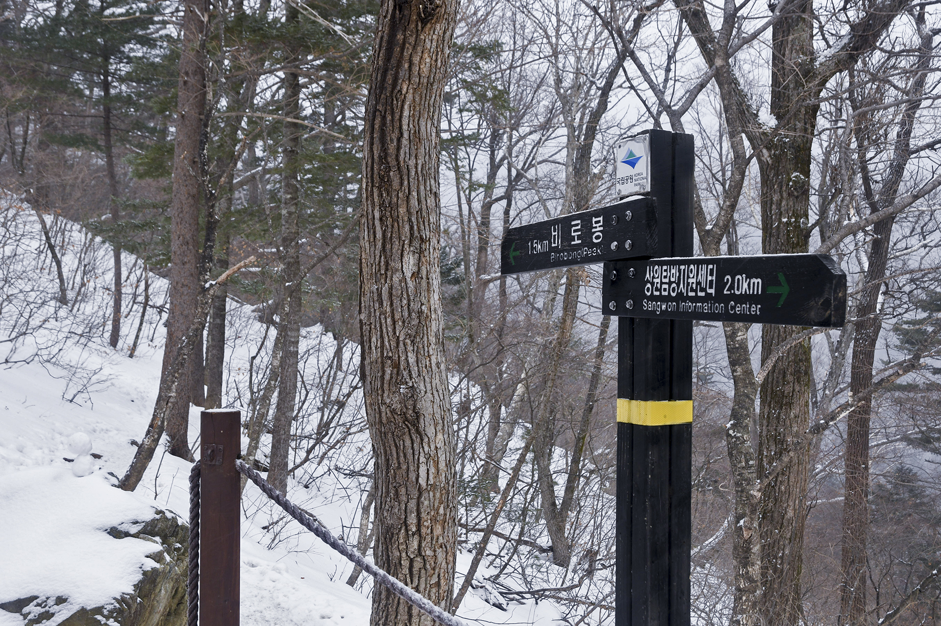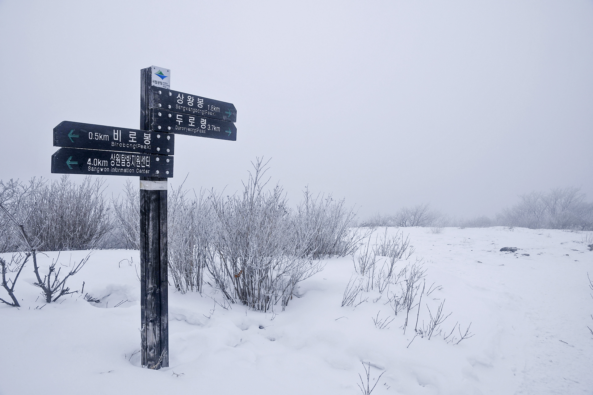 여기까지 올때만해도 그냥 상고대를 담으며 하늘이 맑아지기를 기다리려 했는데 하늘은 여전히 개일 기미가 안보이고, 그냥 상왕봉 찍고 하산하기로 결심을 굳혔다.