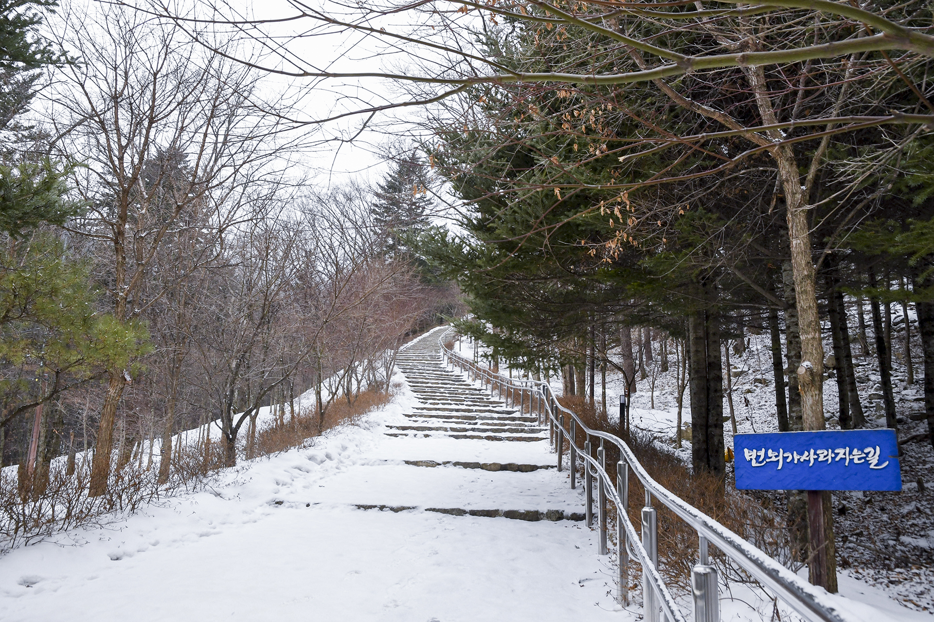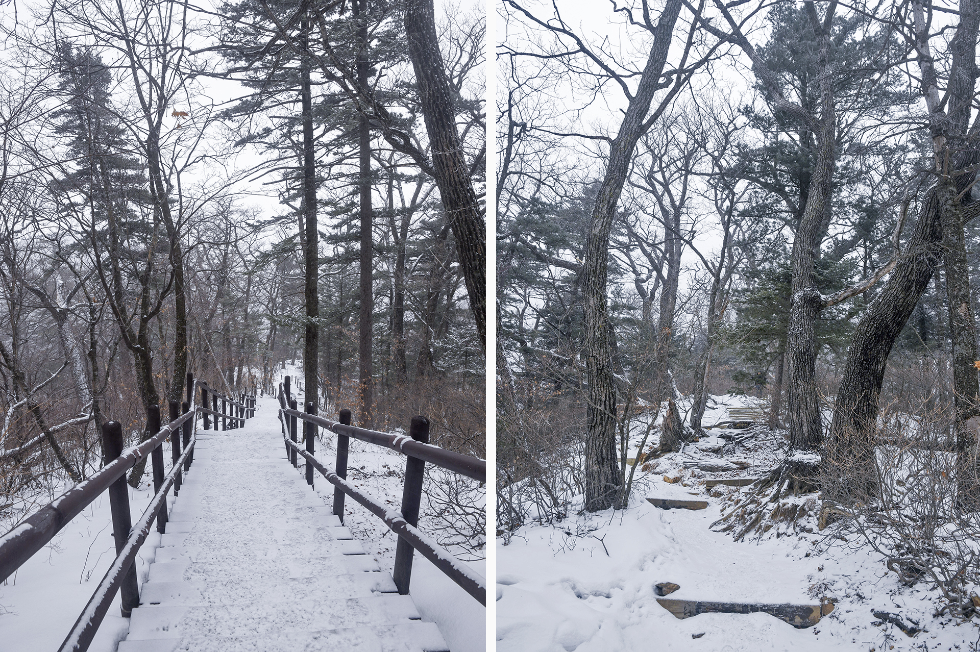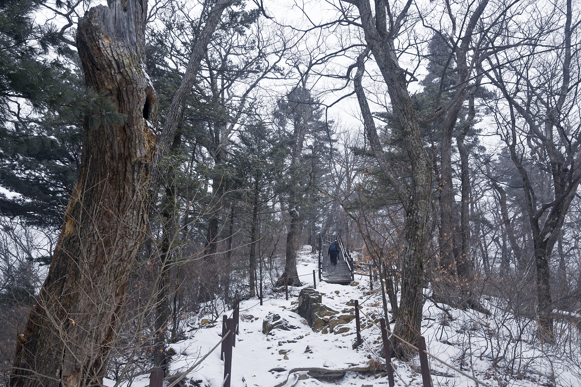 2020년 11월에 왔을때는 깜깜할때 손전등 하나에 의지하며 올랐던 길이었는데, 겨울 풍경이라 새롭기만 하다.
