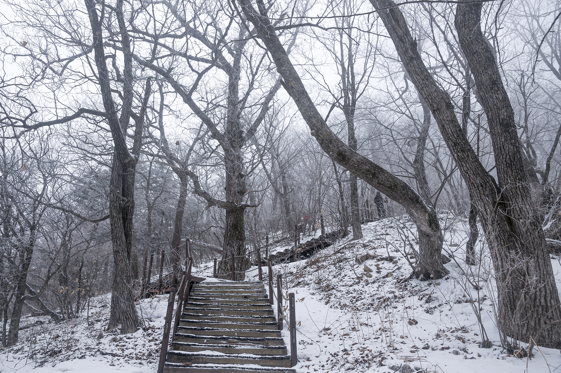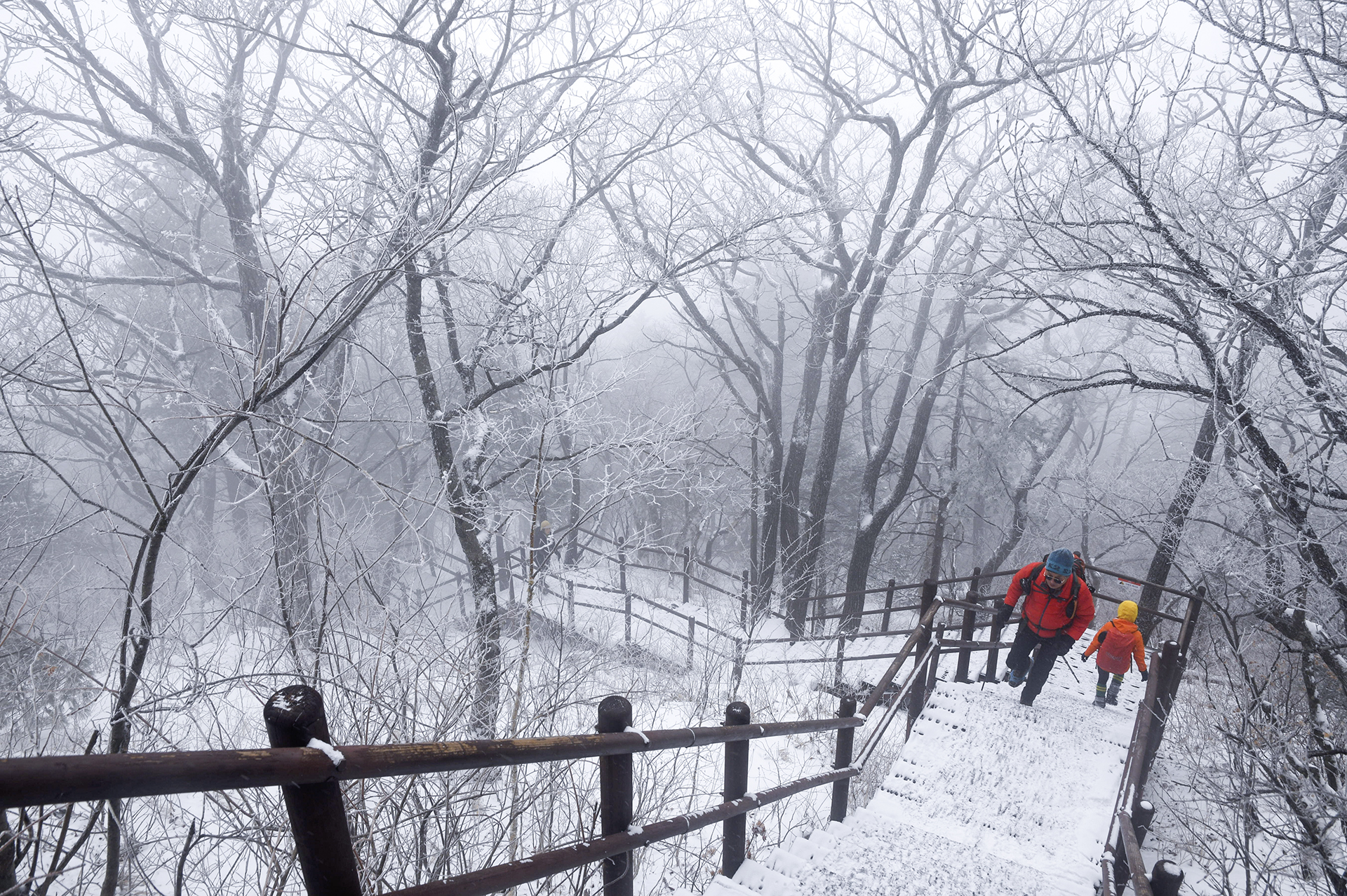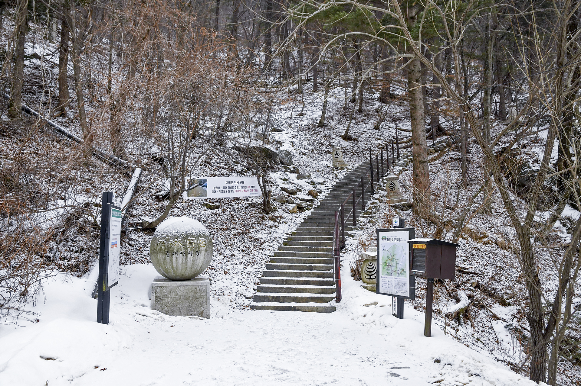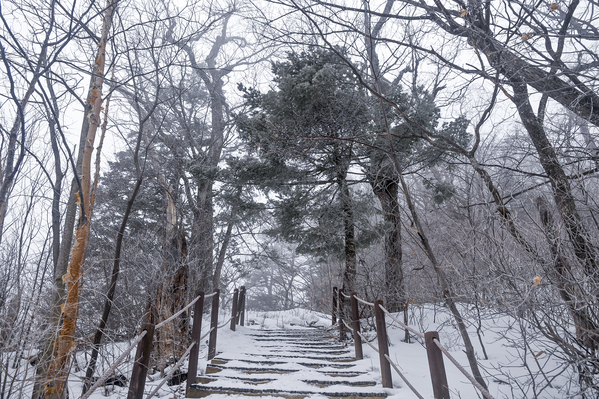 2020년 11월에 왔을때는 깜깜할때 손전등 하나에 의지하며 올랐던 길이었는데, 겨울 풍경이라 새롭기만 하다.