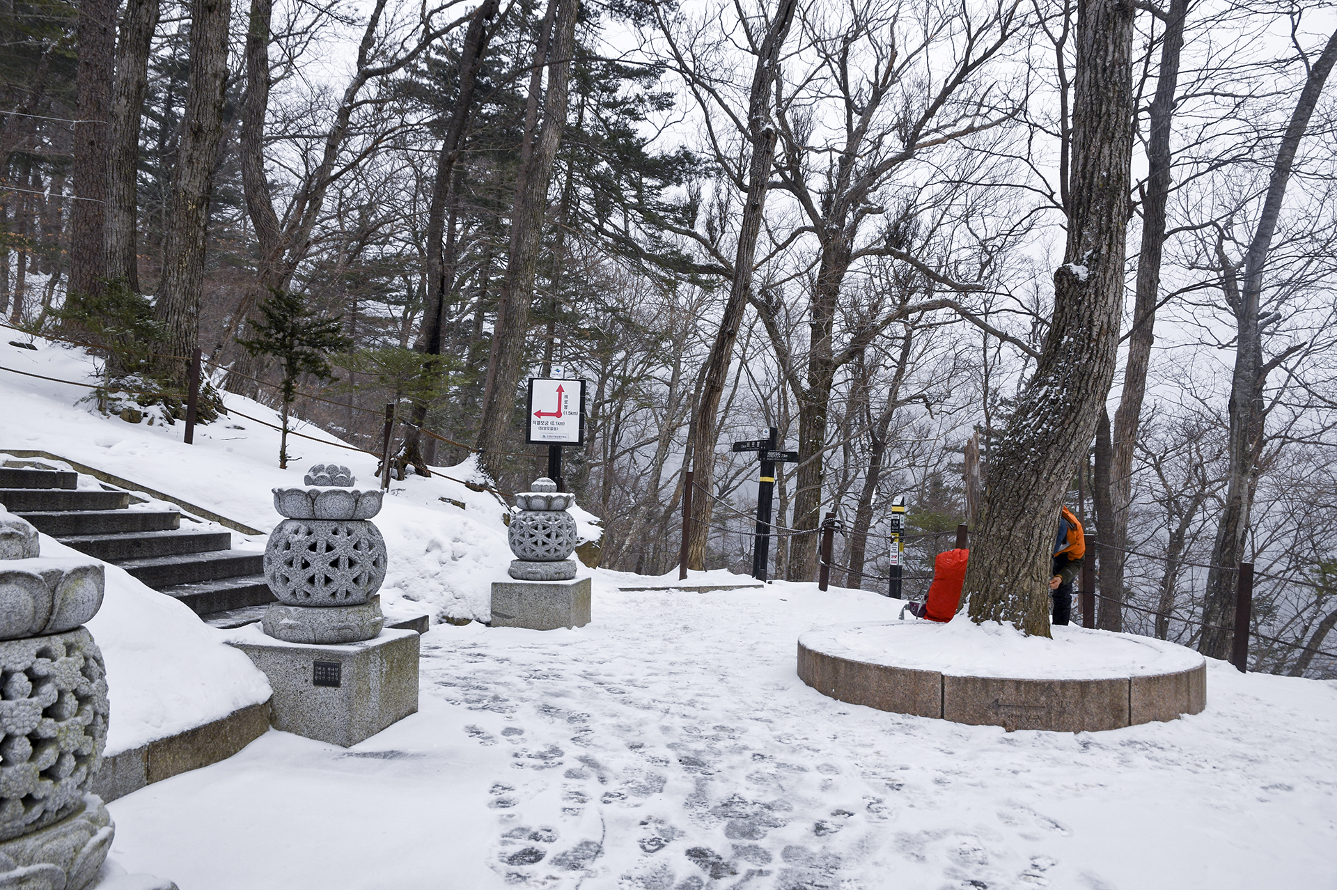 잠시 적멸보궁을 보고 다시 내려와 직진 방향으로 본격적인 등산로가 이어지는데, 이곳에서 잠시 휴식할 예정이다.