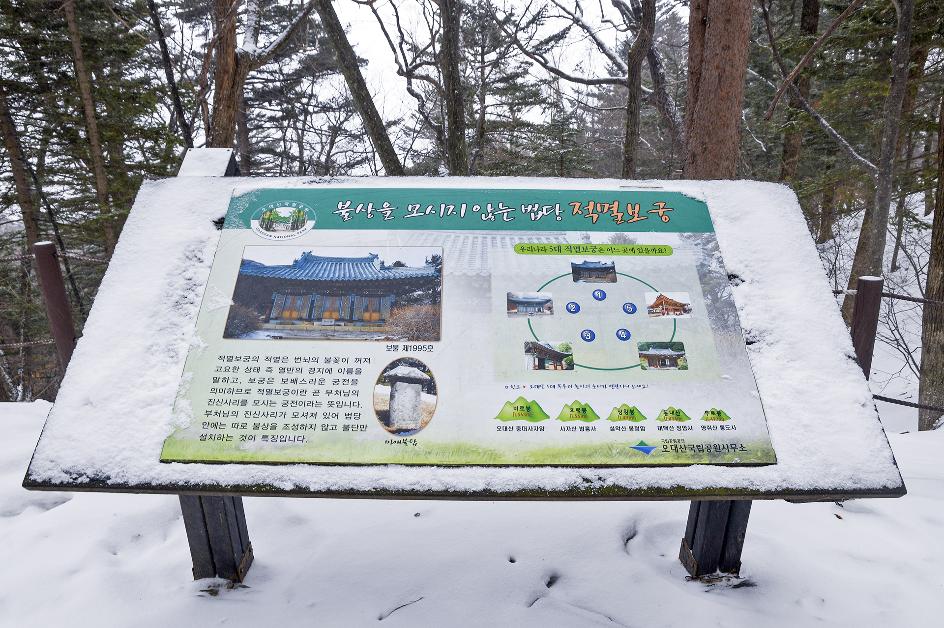 우리나라 5대 적멸보궁 중 한 곳으로 부처님의 진신사리를 모시는 궁전이라는 뜻의 적멸보궁.