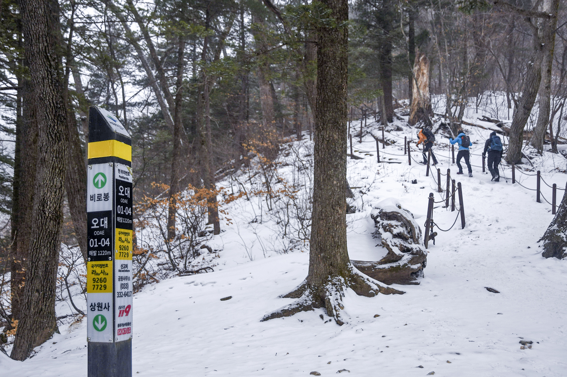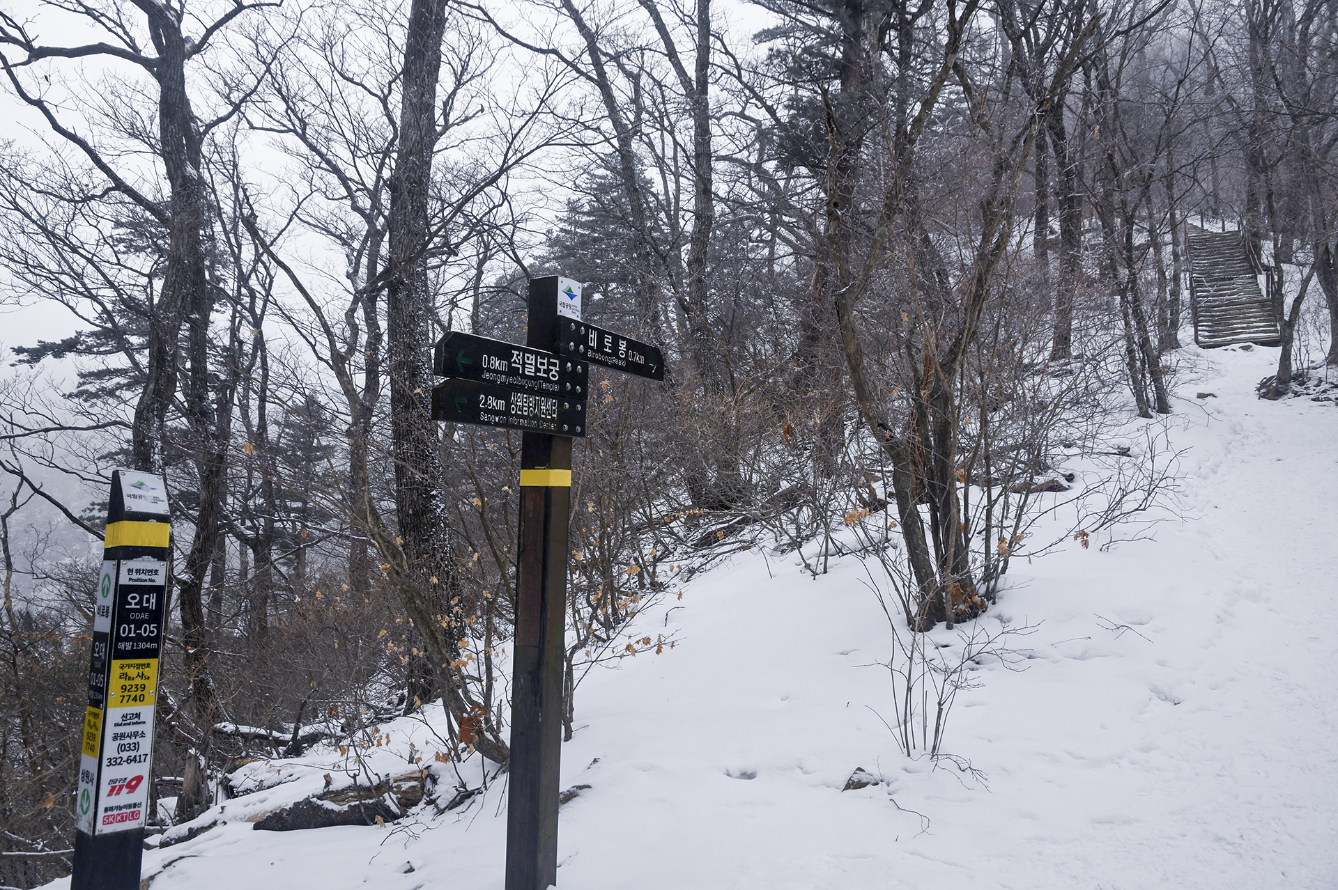 상원사를 내려오면 적멸보궁 방향 이정목을 만나게 된다.