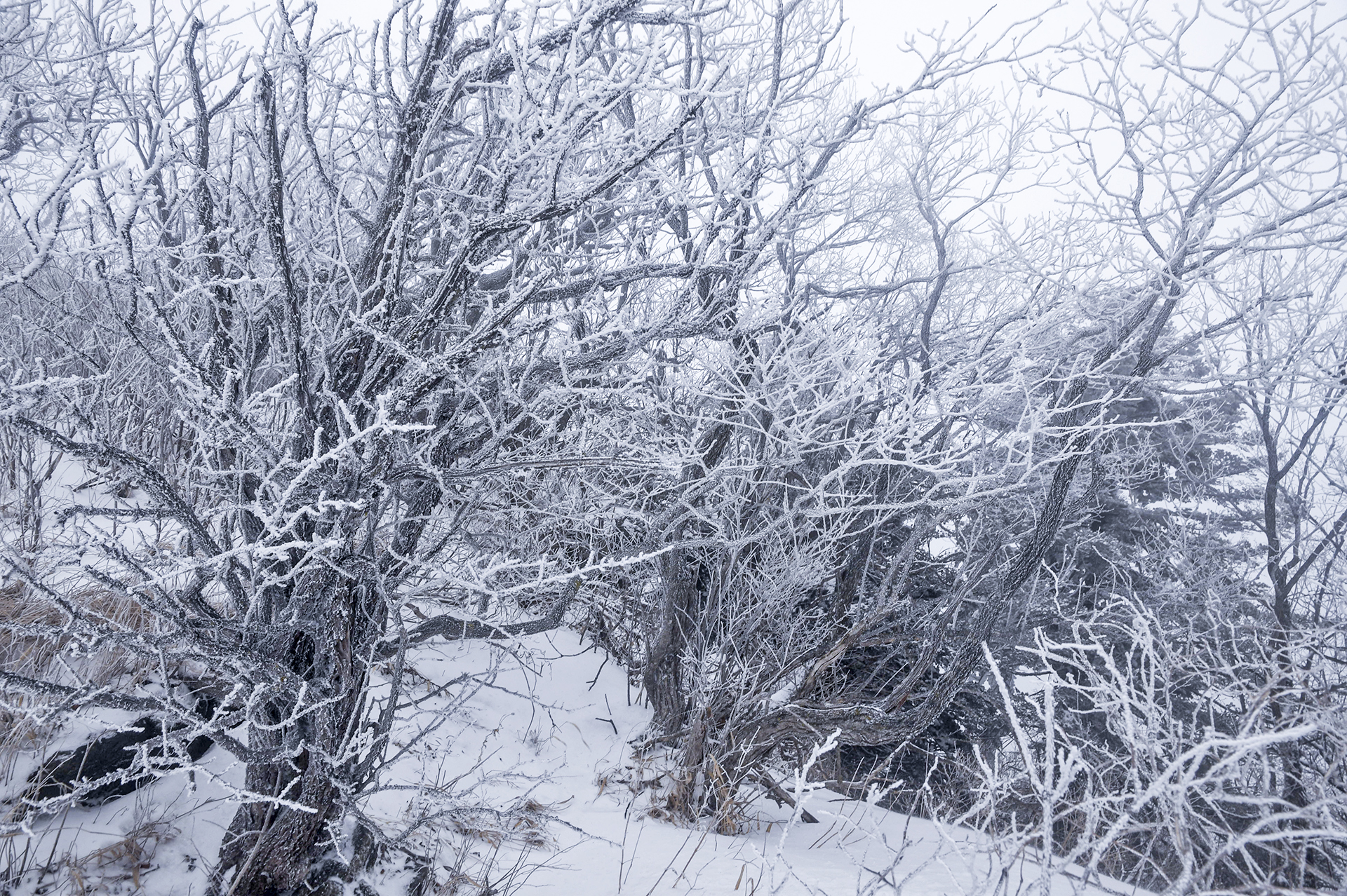 내린 눈이 싸리눈이라 그런지 상고대가 활짝 피지 않는다.