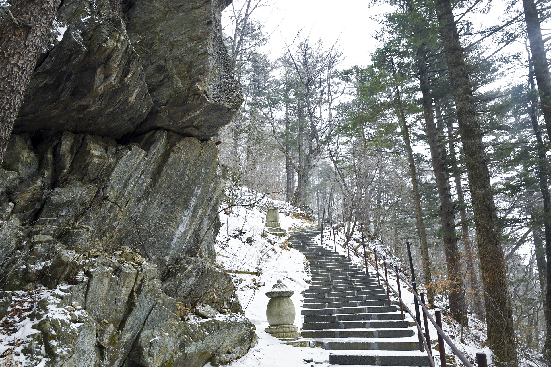 * 중대 계단입구부터 적멸보궁까지는 돌계단을 오르는 코스