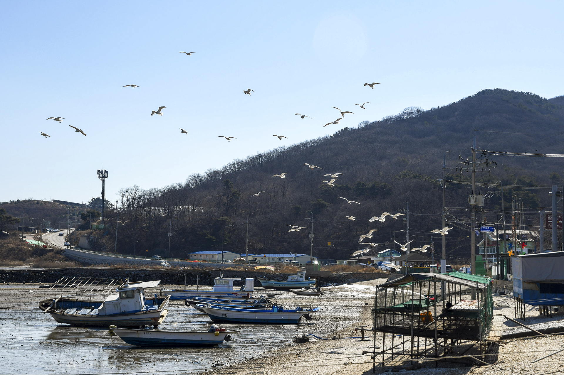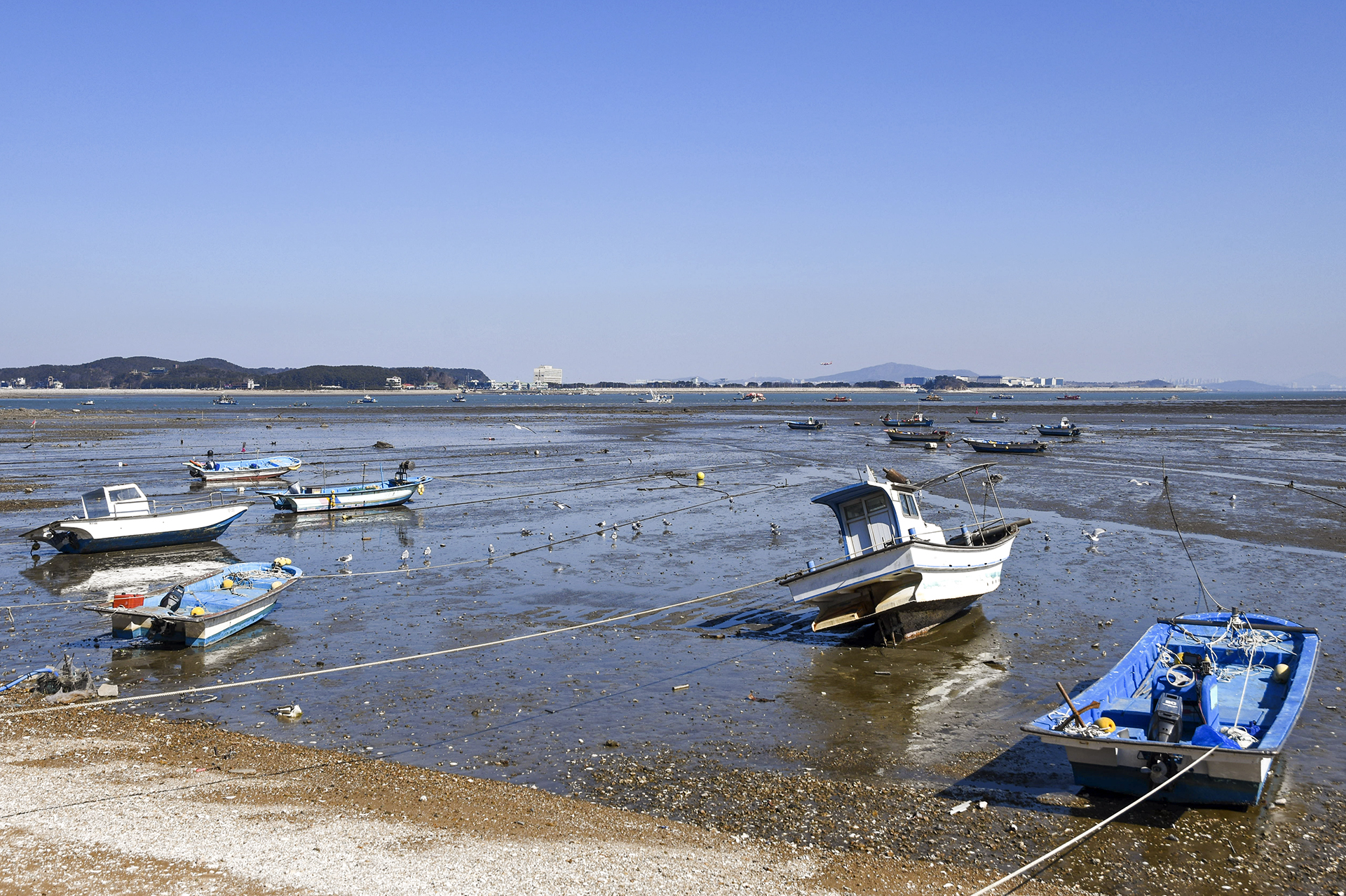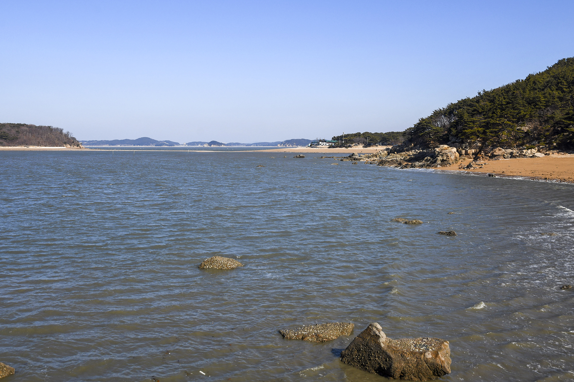 만조 때와는 달리 보이는 해안 풍경.