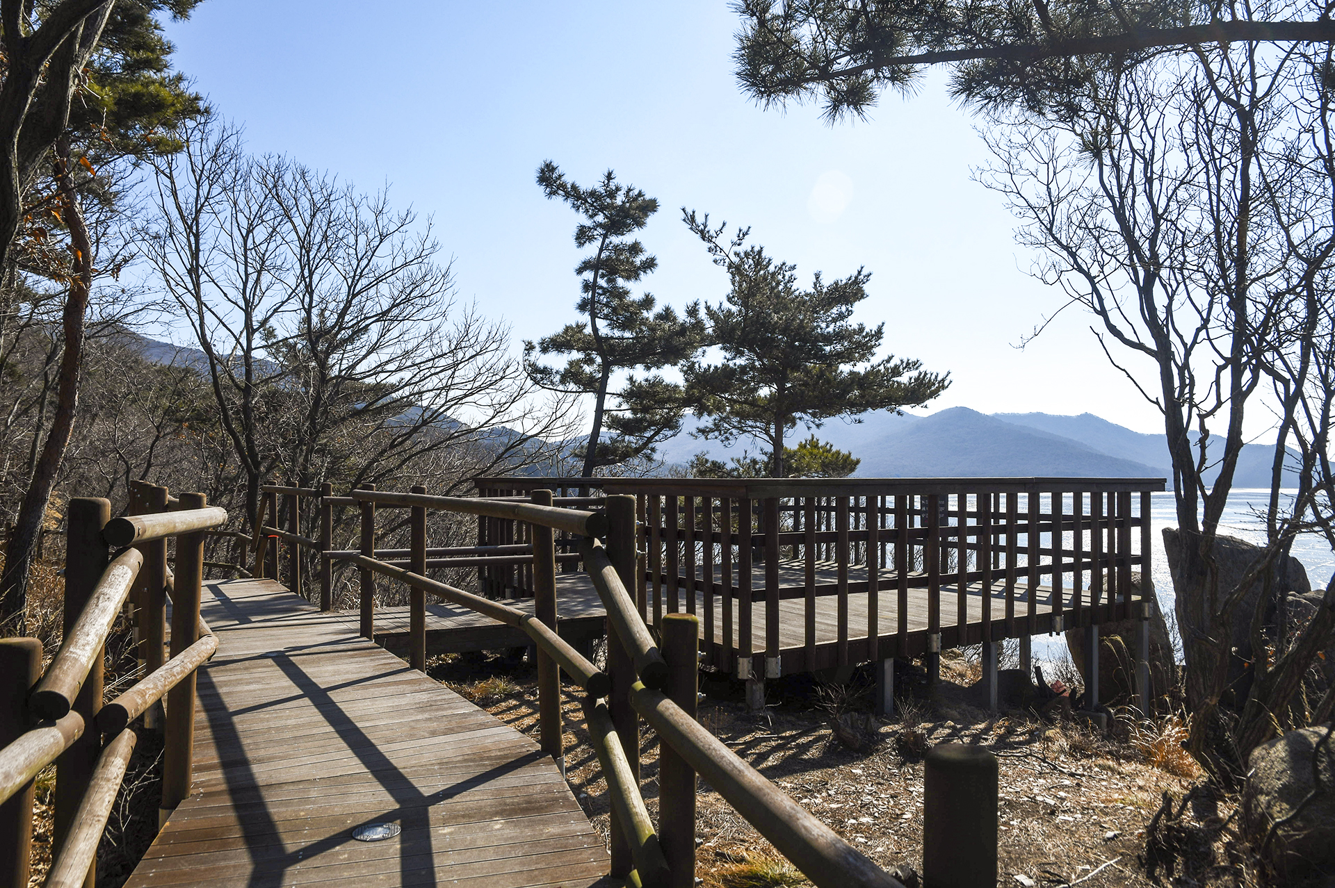 전망대로 데크길이 이어지고 중간에 숲으로 올라가는 길이 연결되어 있다.