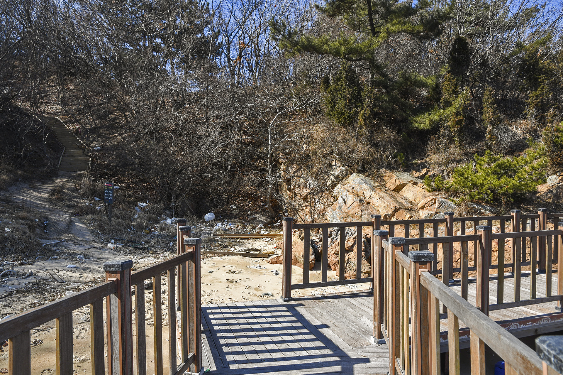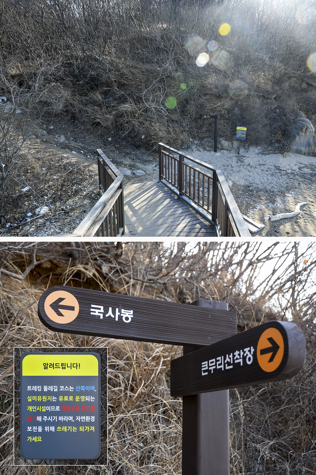 데크길이 끝나는 지점에서 아쉽게도 해변길이 아닌 왼쪽 국사봉 방향으로 가야 한다.