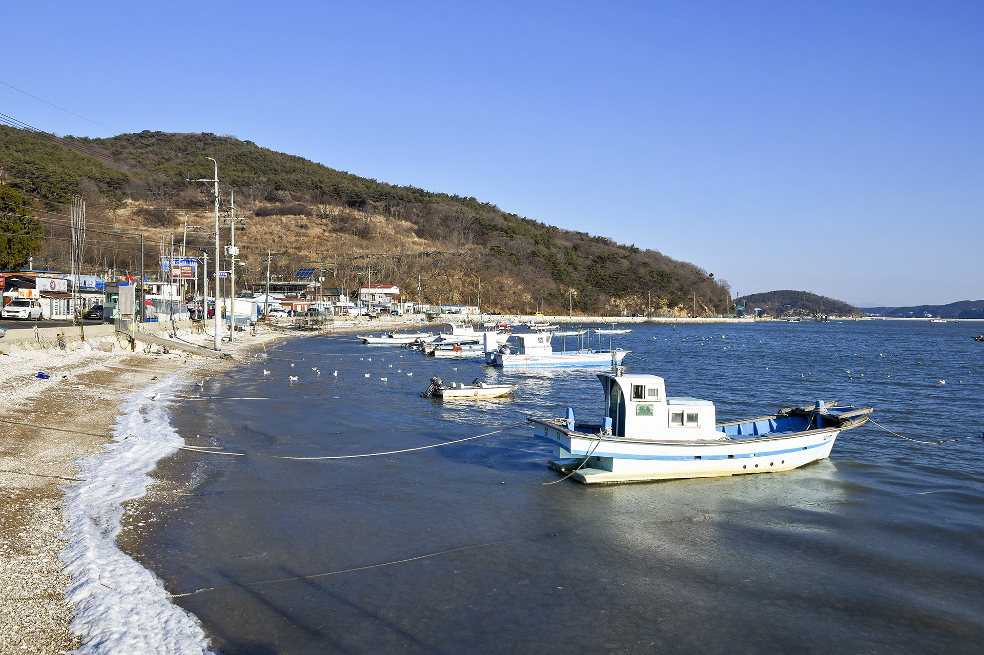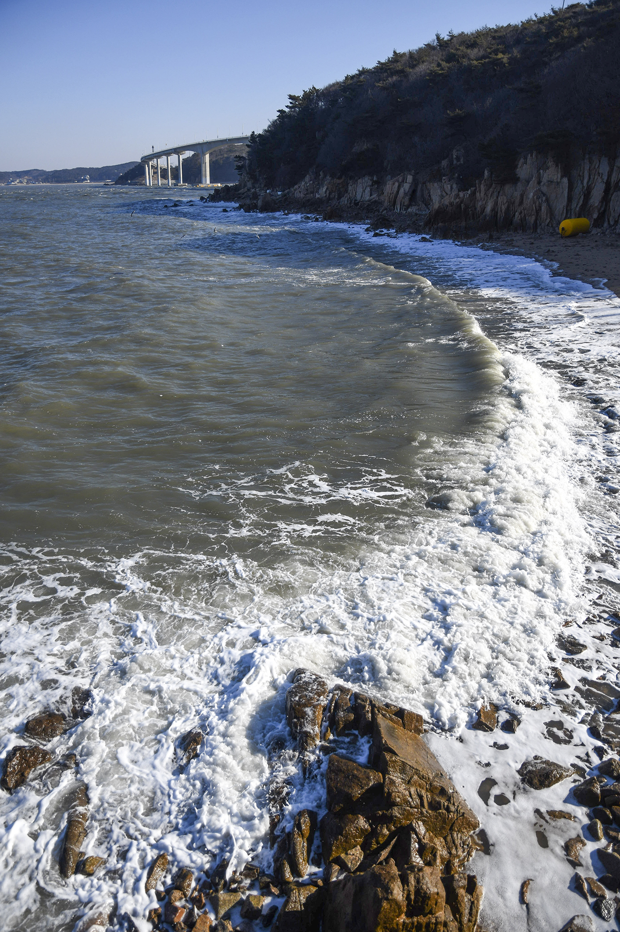 이곳에도 파도가 들이쳐 산그늘이 진 곳은 살얼음마저 생겼다.