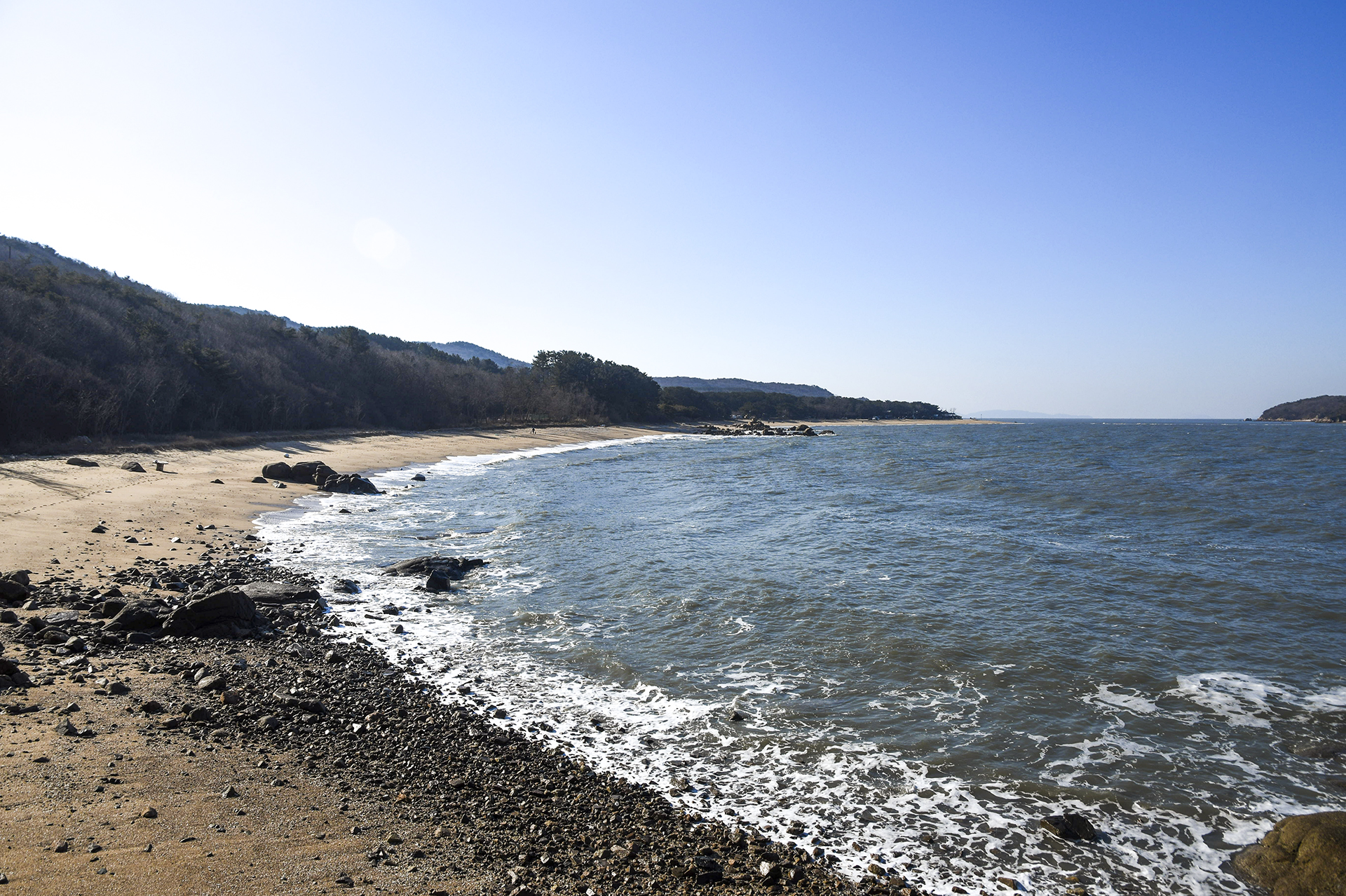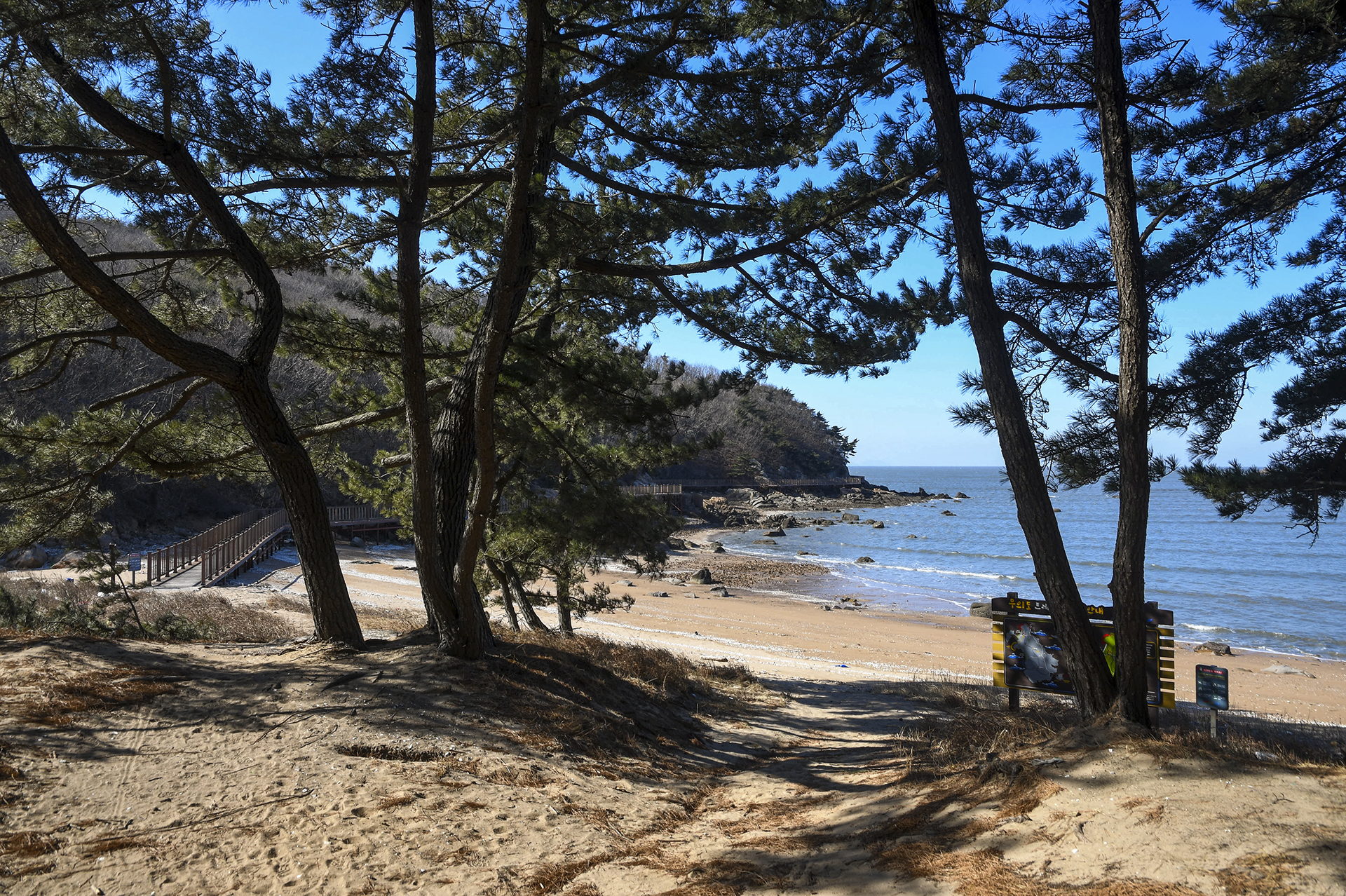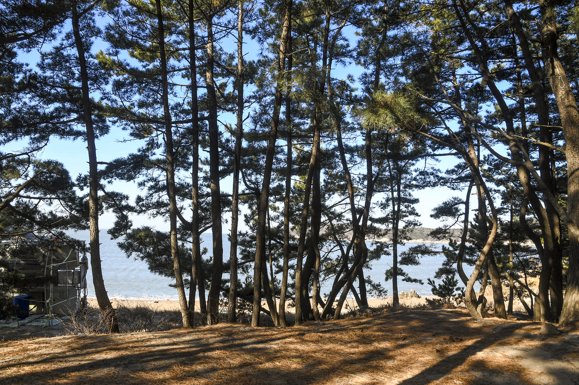 솔잎이 쌓여 폭신폭신한 느낌의 숲길을 내려오면 이름없는 해변에 도착하게 된다.