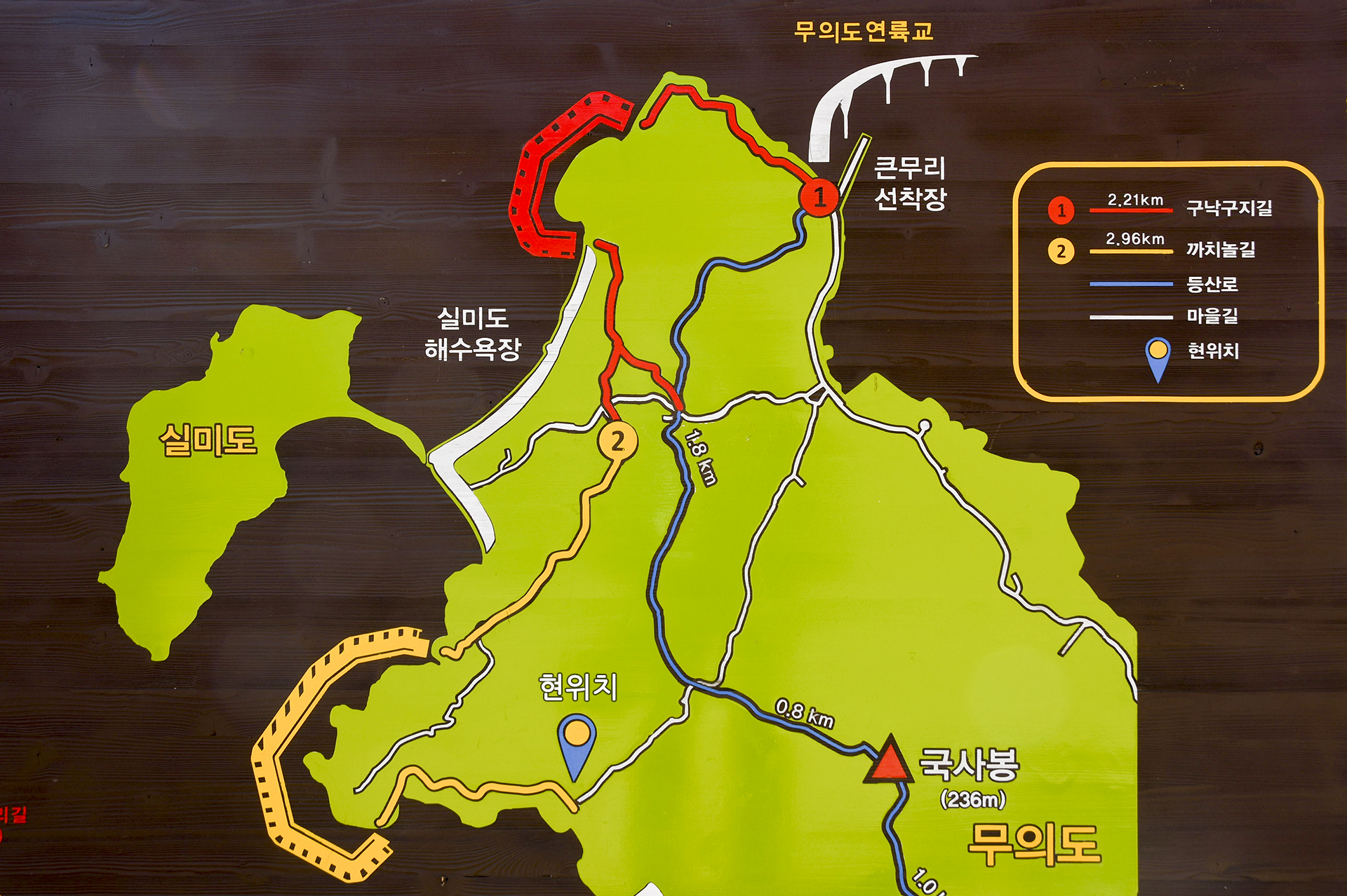 편의점과 카페가 있는 이곳은 국사봉과 호룡곡산 종주를 했던 들머리였고, 무의도 트레킹 둘레길도 이곳에서 시작된다.