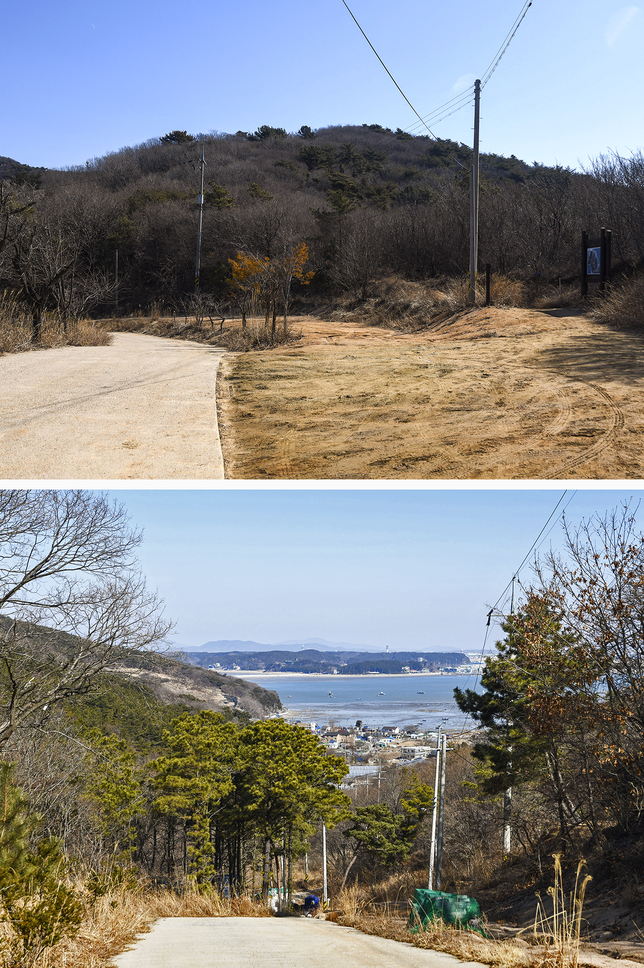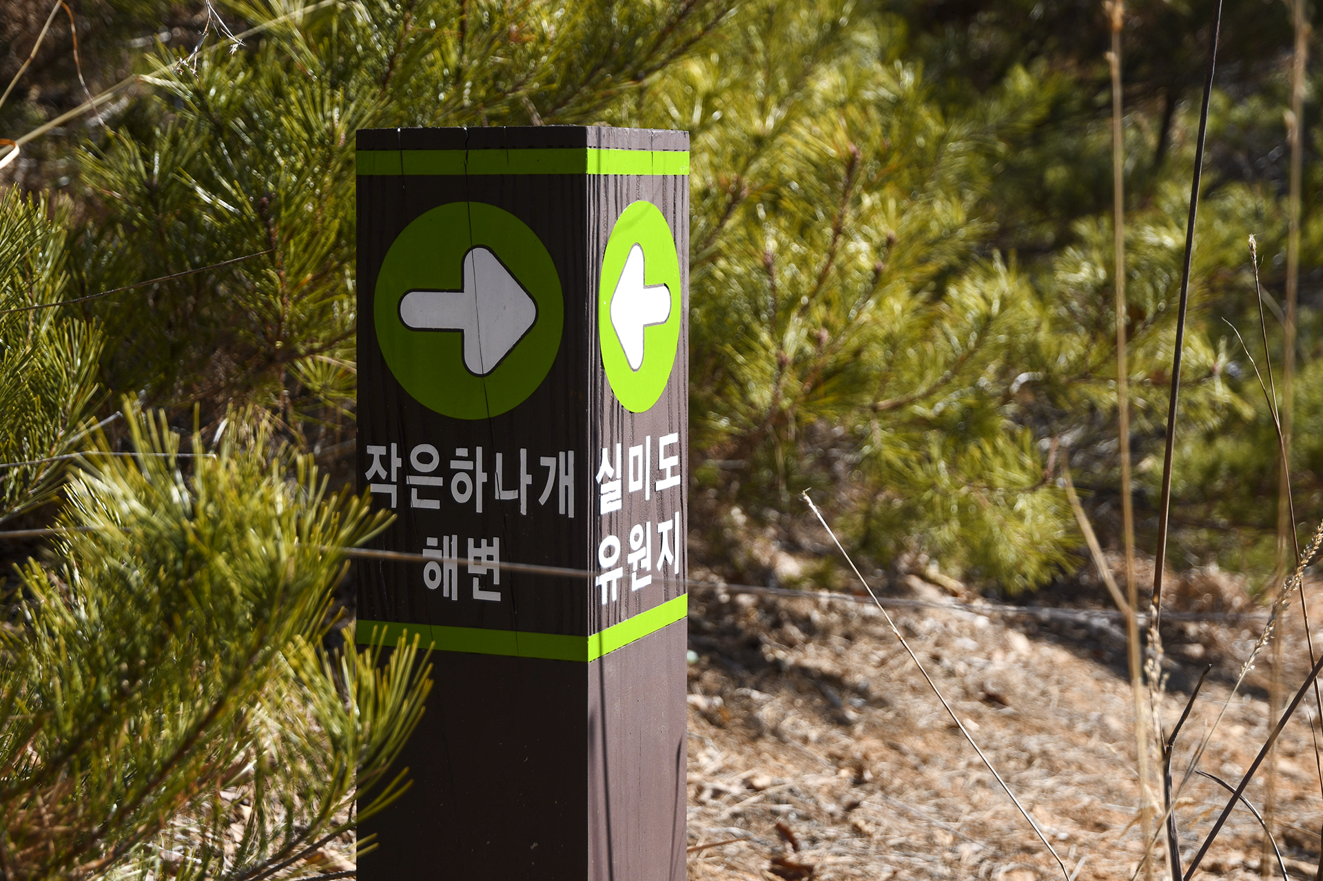 작은하나개 해변에서 출발한지 10분만에 등산로와 마을길이 나뉘는 지점에 도착했다.