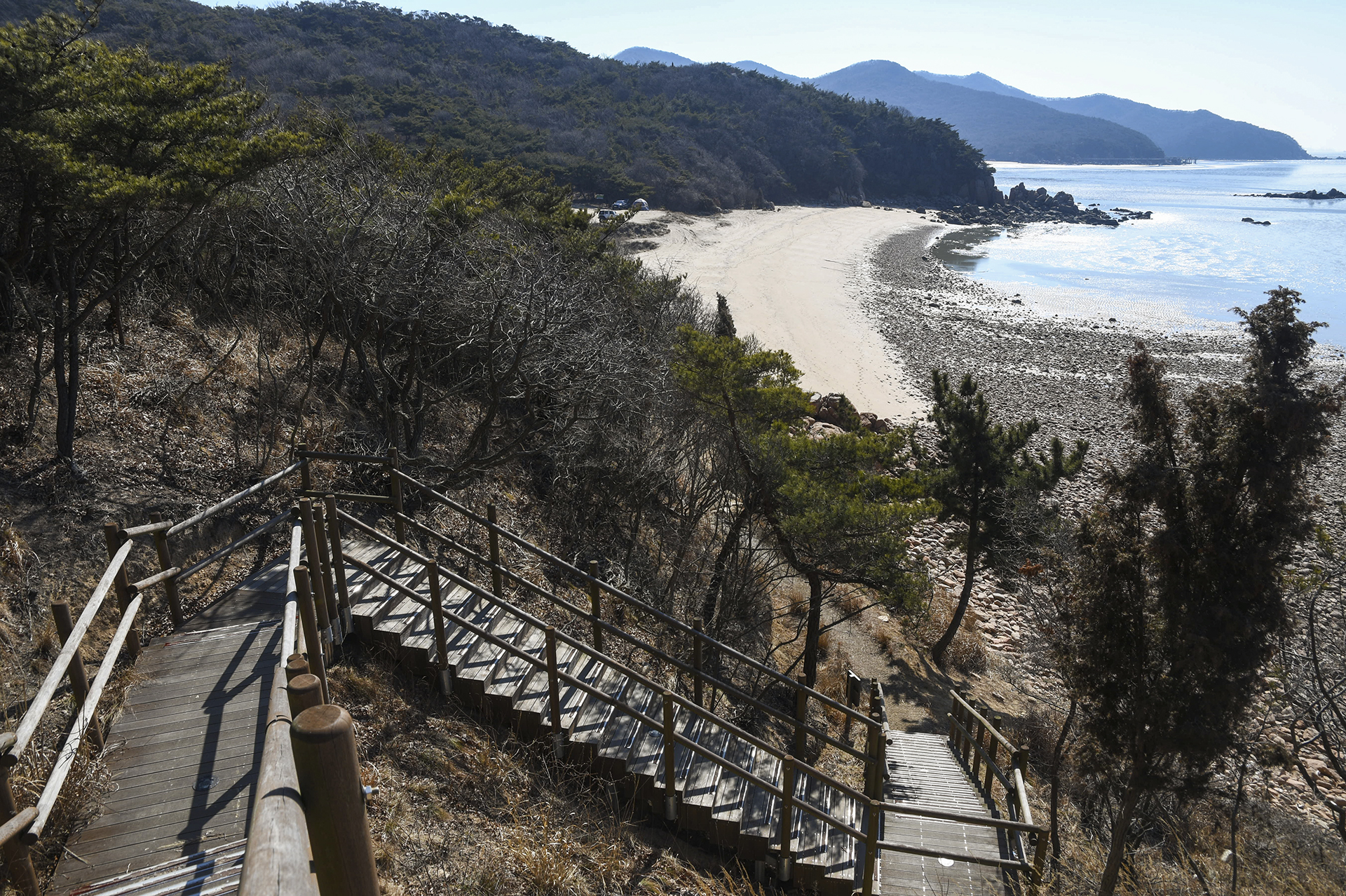 전망대에서 바라본 작은하나개의 모래해변이 저 너머에 보인다.