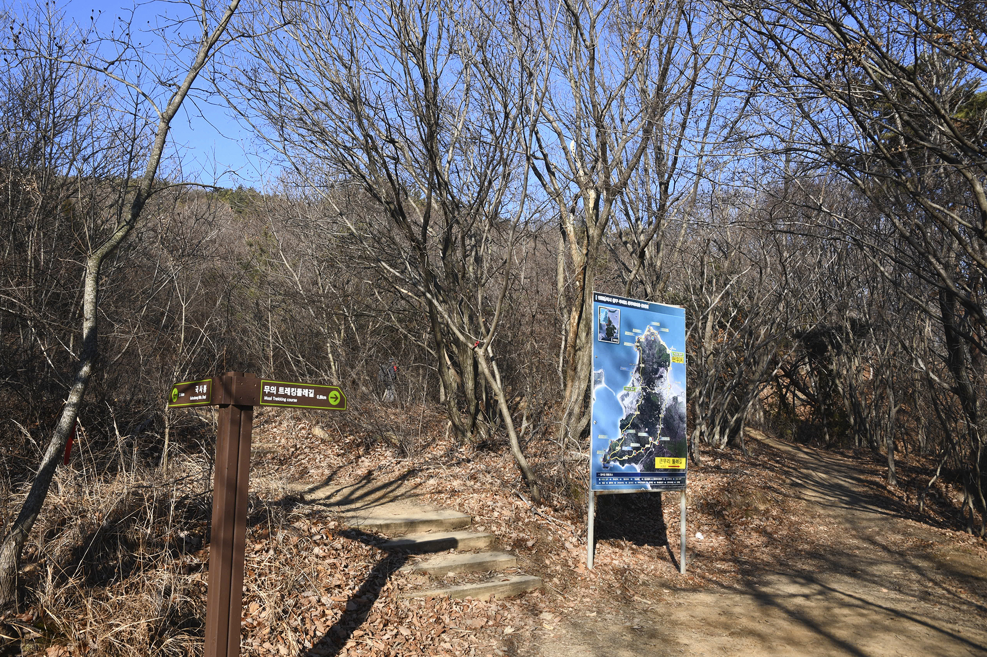 계단을 올라 트레킹둘레길 이정목이 가리키는 오른쪽 방향으로 가면 된다.
