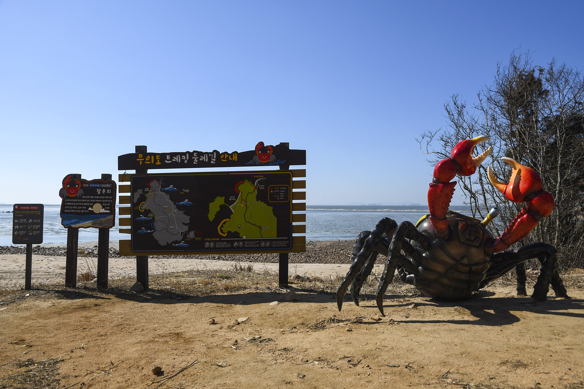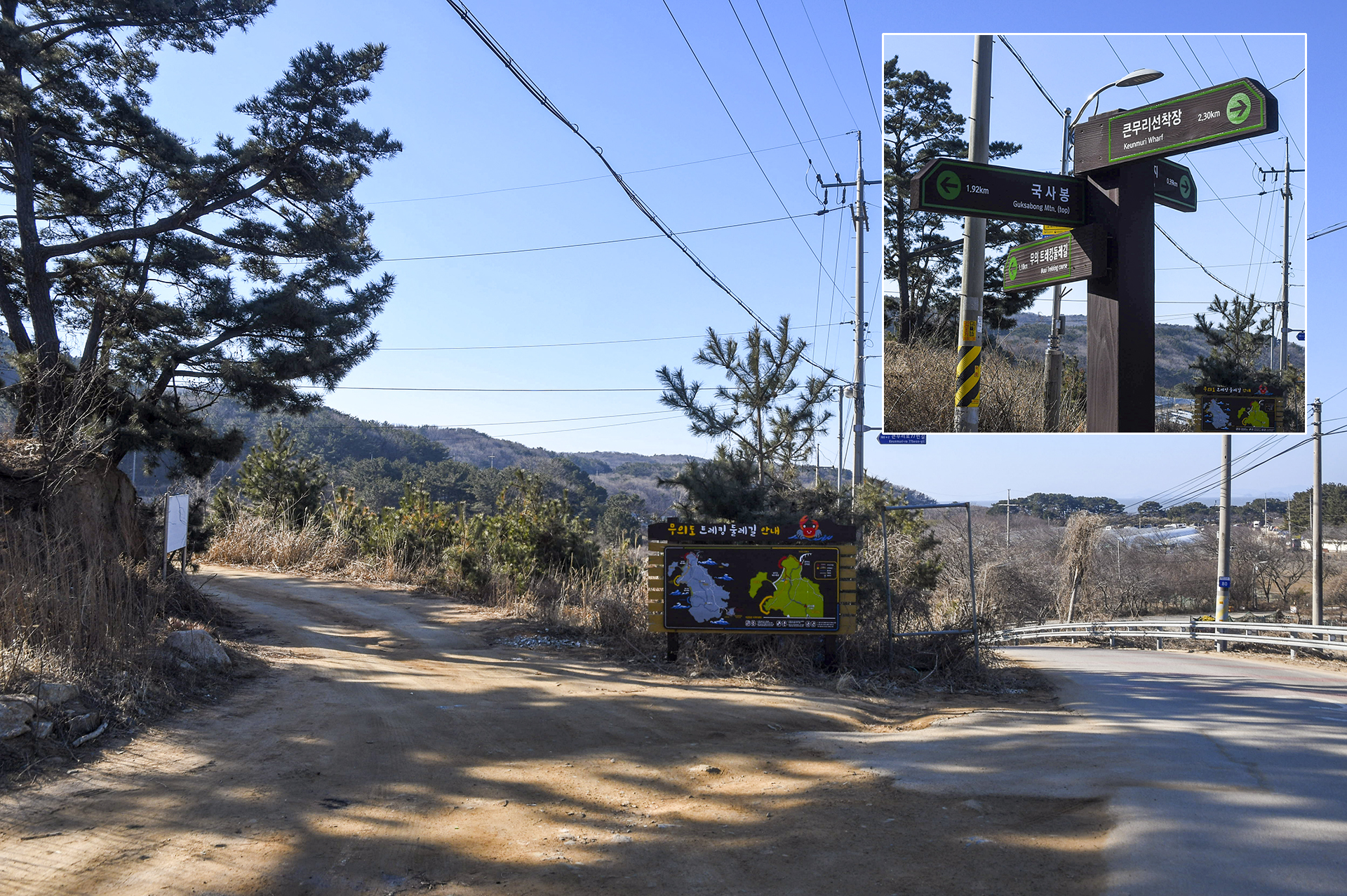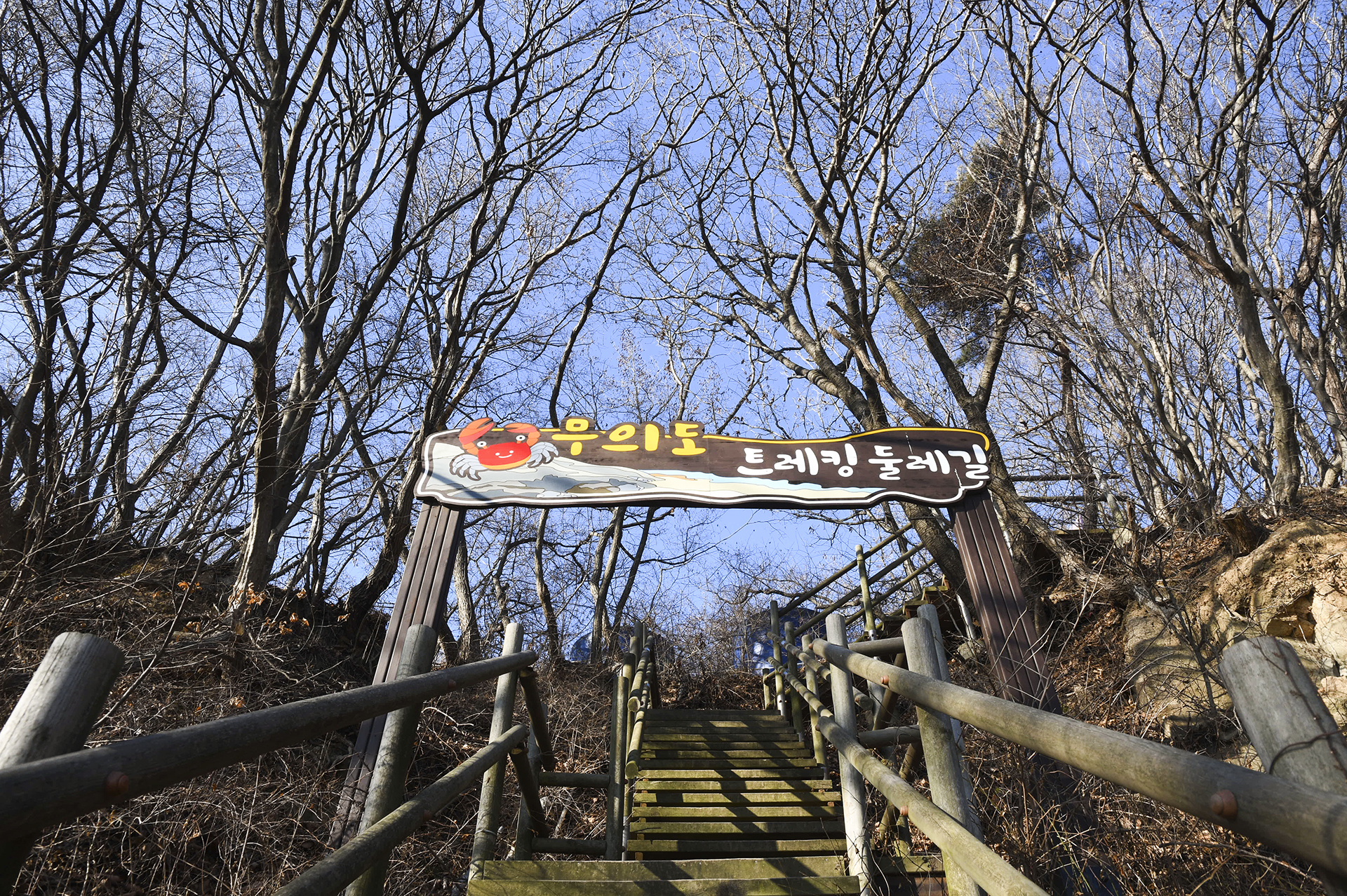 무의 트레킹둘레길 방향으로 안내판이 세워져 있는데, 좌측길로 진입하면 2코스 까치놀길이 시작된다.