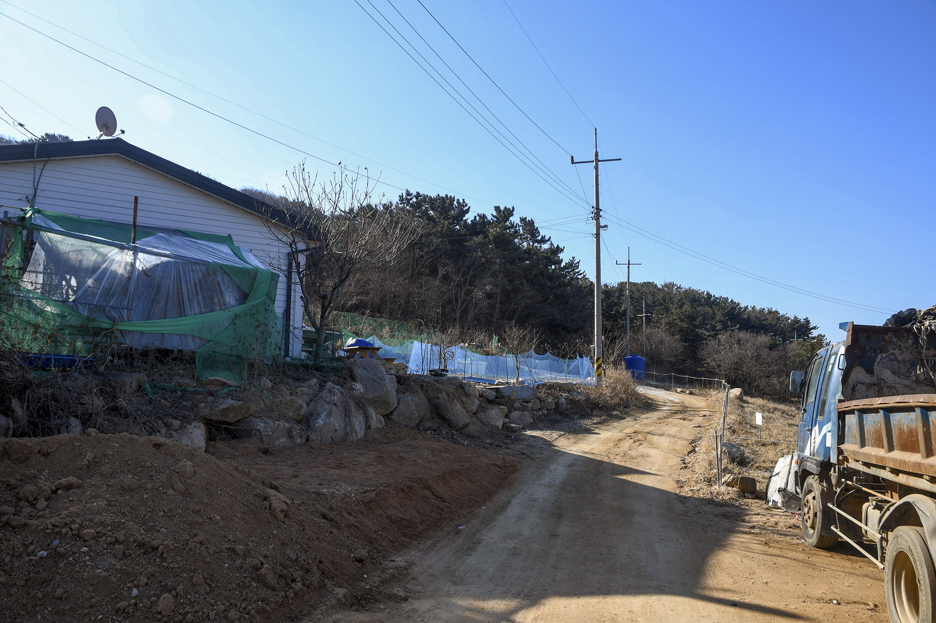 도로와 나란히 걷는 자전거 길이 있어 위험하지는 않다. 큰무리 어촌계의 풍경을 담아본다.