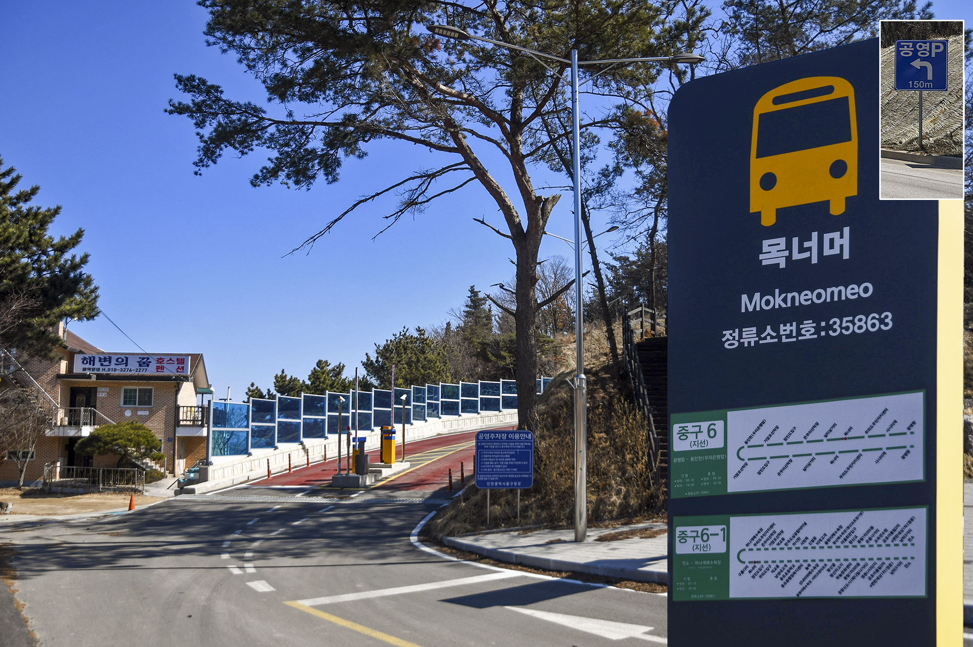 무의도 트레킹둘레길은 큰무리선착장에서 시작되지만 주차할 곳이 없어 목너머 버스정류장 부근에 위치한 공영주차장에 주차했다.