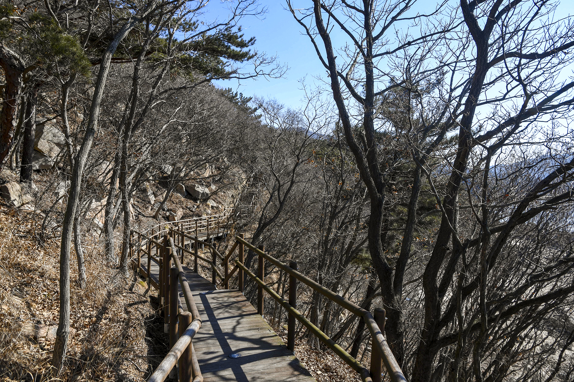 데크길은 구불구불 이어지며 산허리를 끼고 계속 연결되어 있다.
