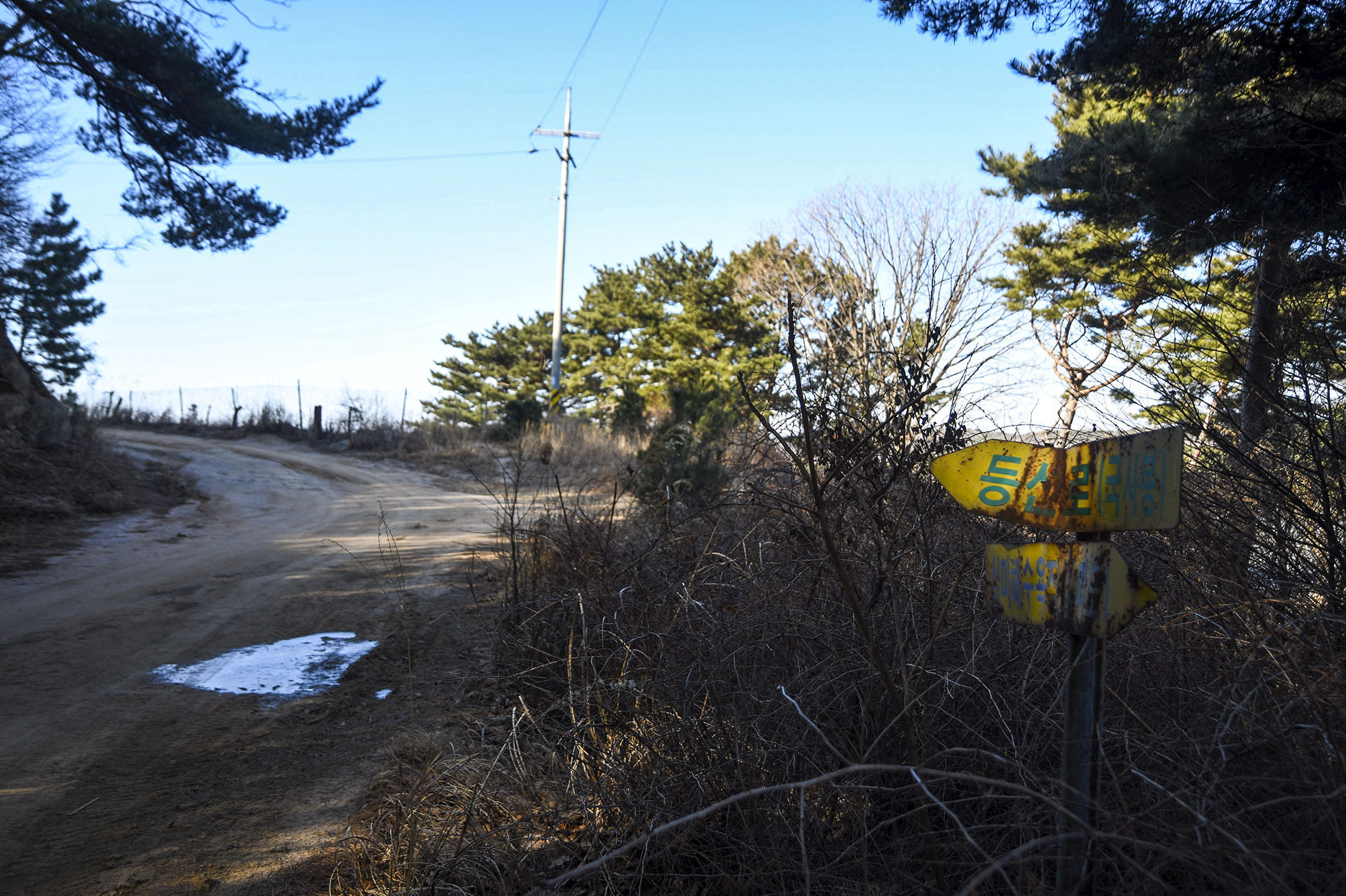 옛 등산 이정표인가보다. 좌측길로 가라고 이정표 철판을 좌측 방향으로 꺾어 놓았다.