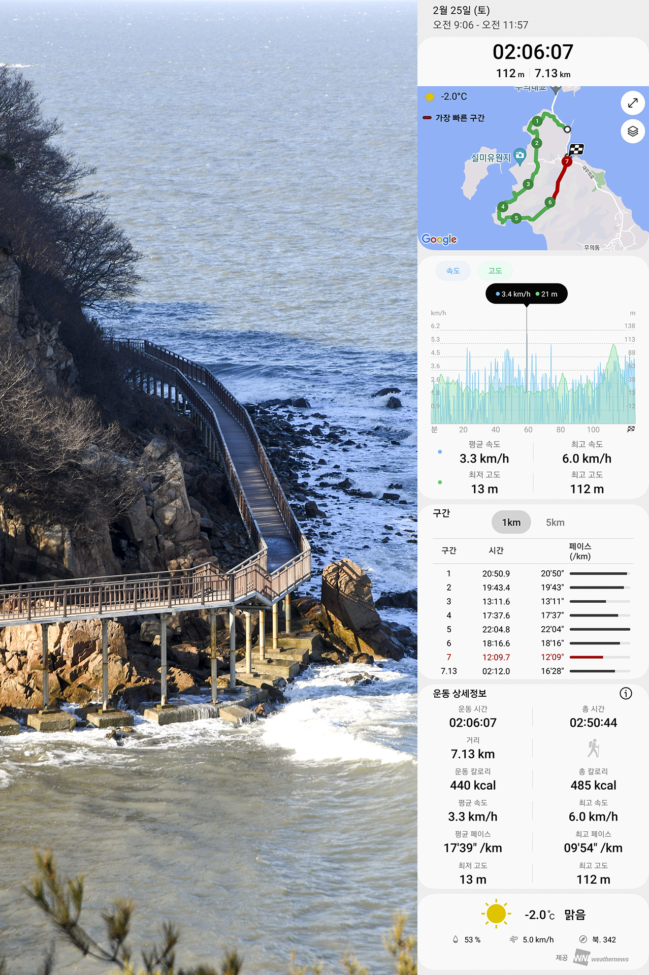 * 실제 걸은거리 : 7.13km