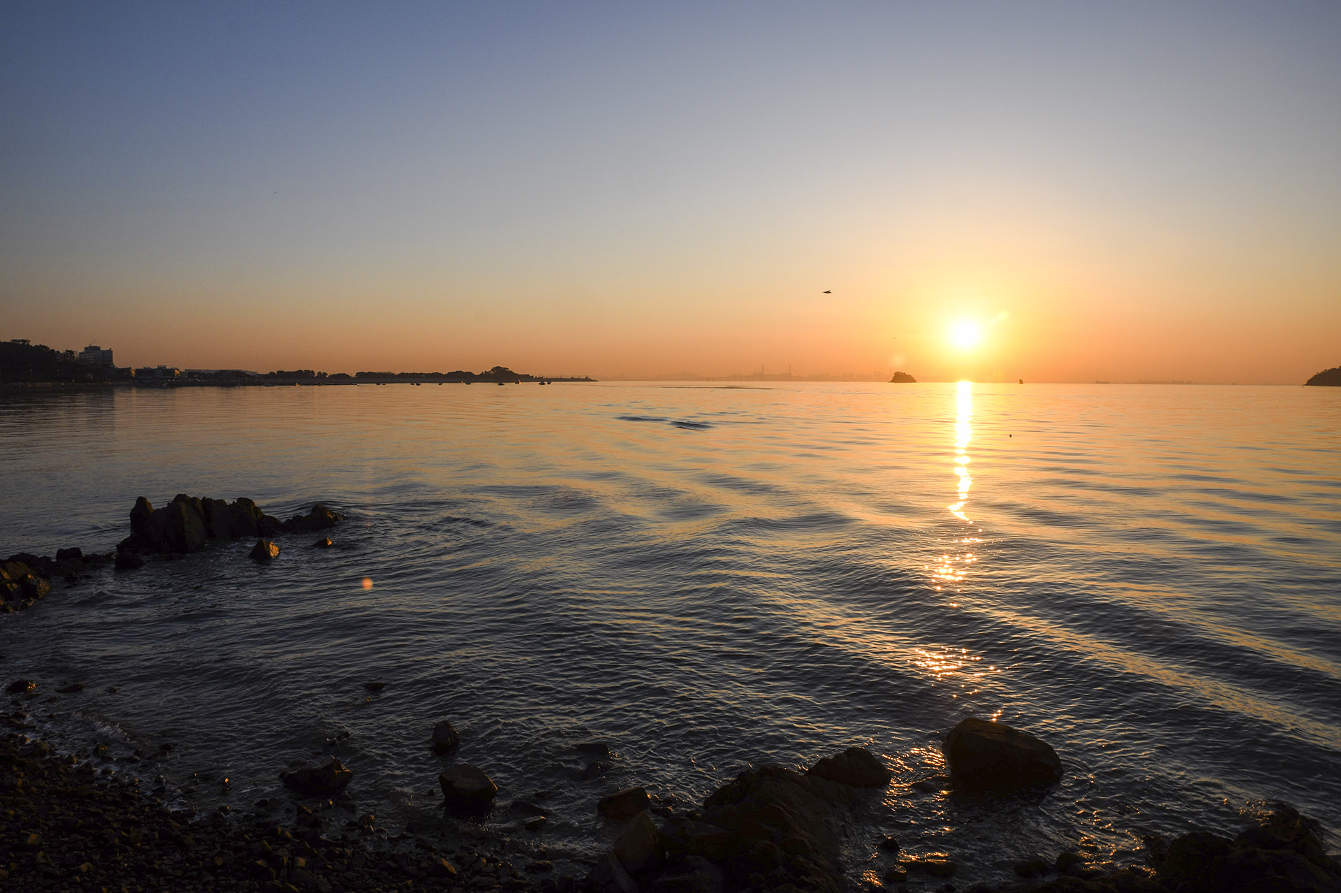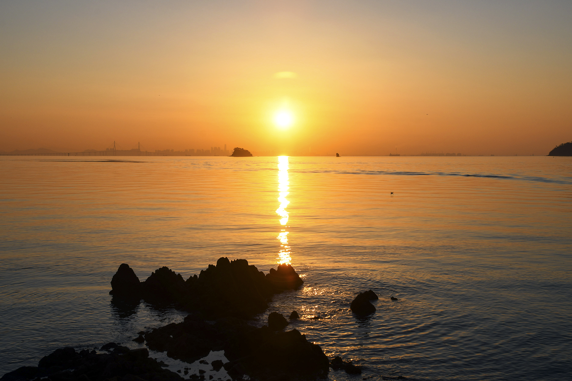 바다 위로 길게 늘어진 해가 일렁인다. 이제부터는 좀더 여유있게 일출을 감상하며 담아본다.