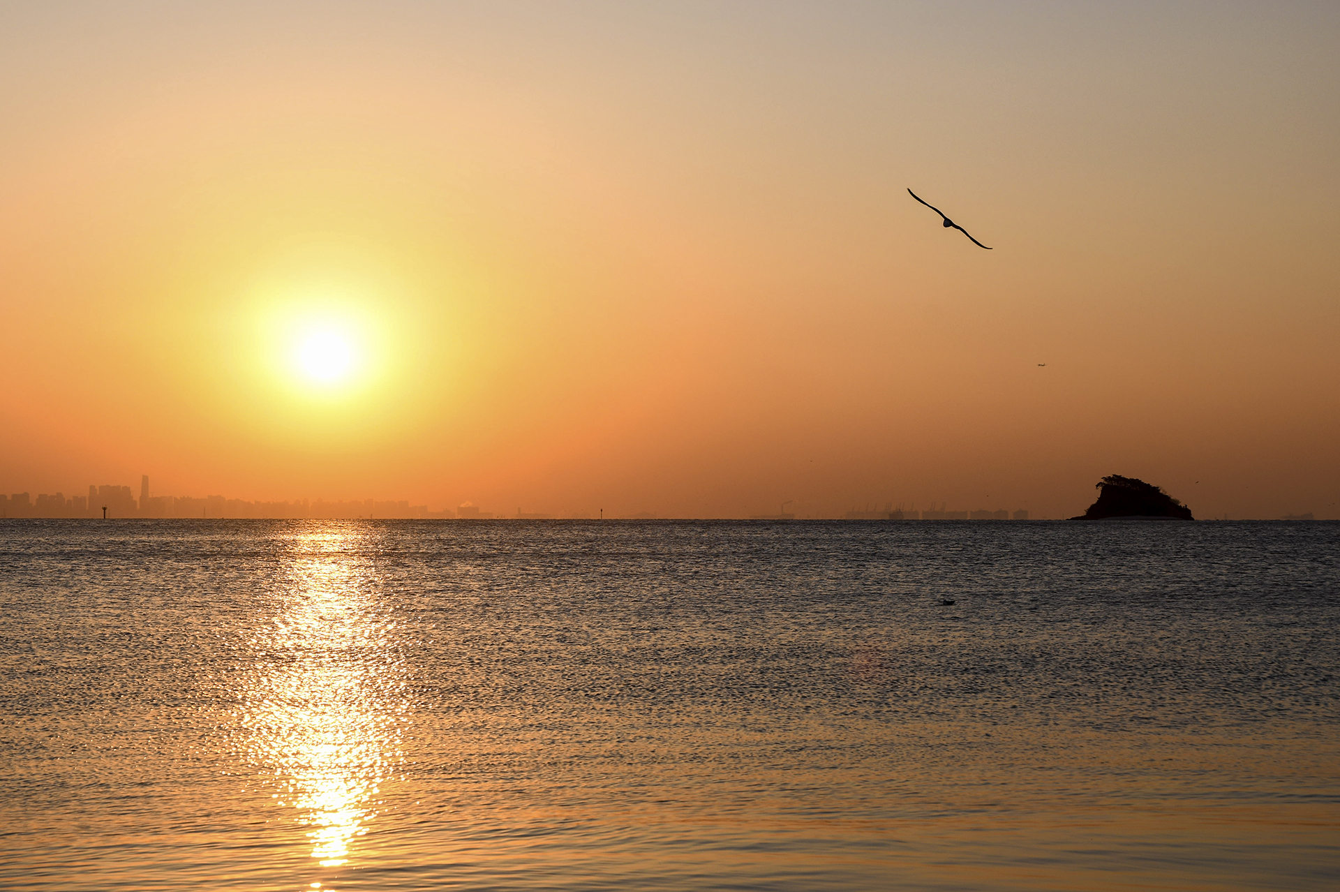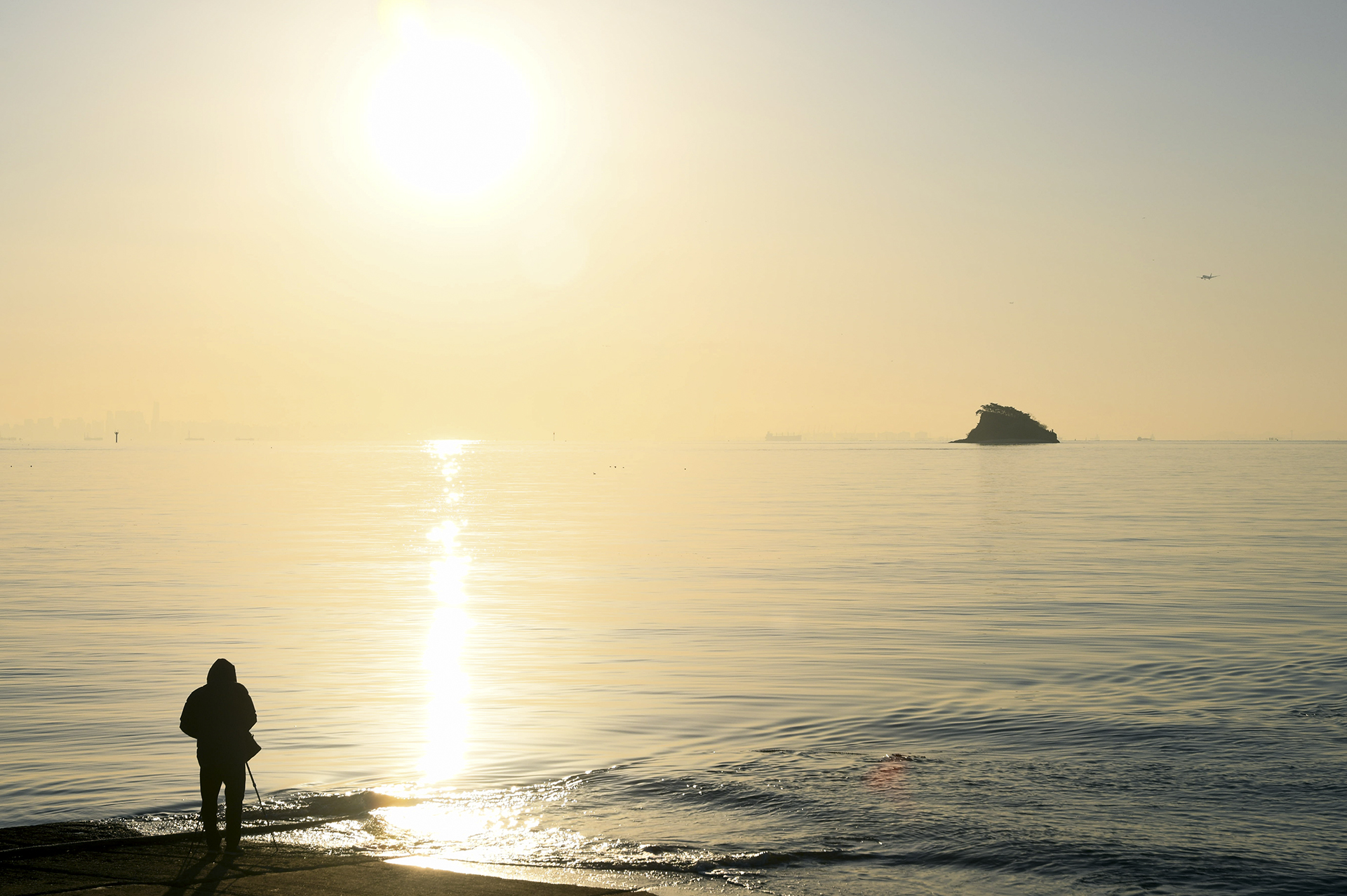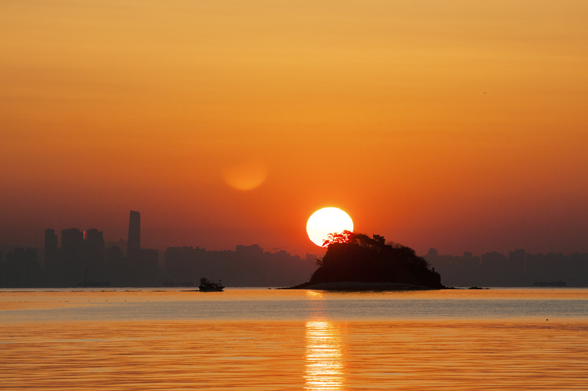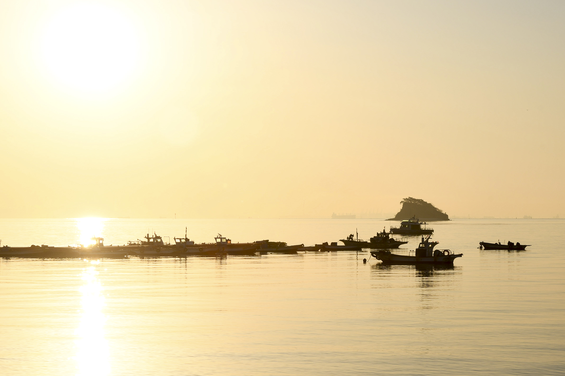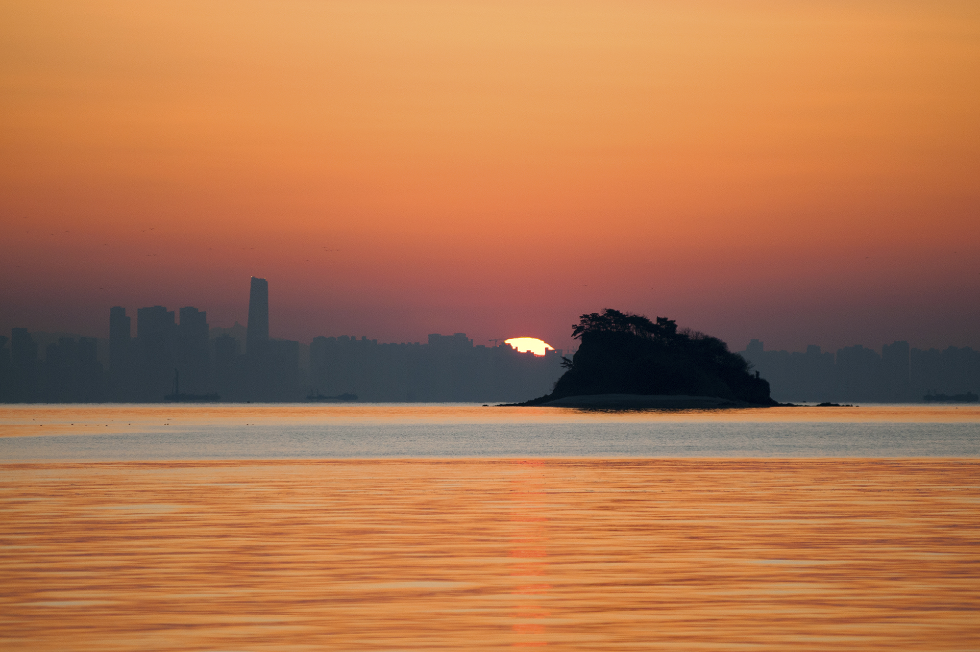 섬 위로 해가 올라서는 중이다.