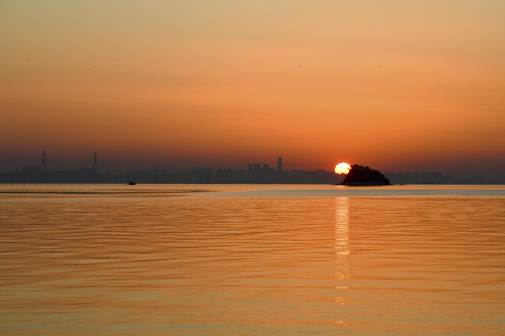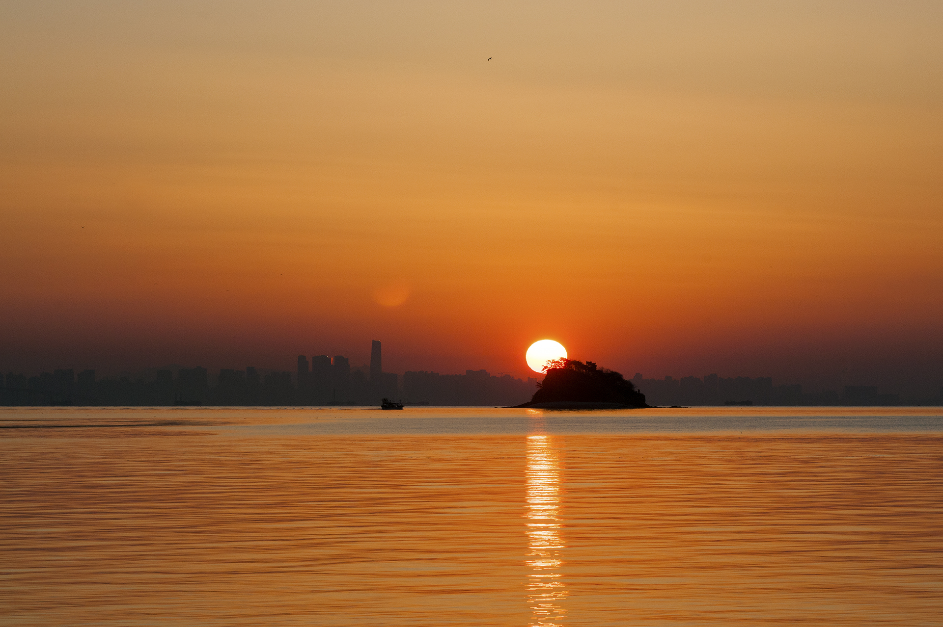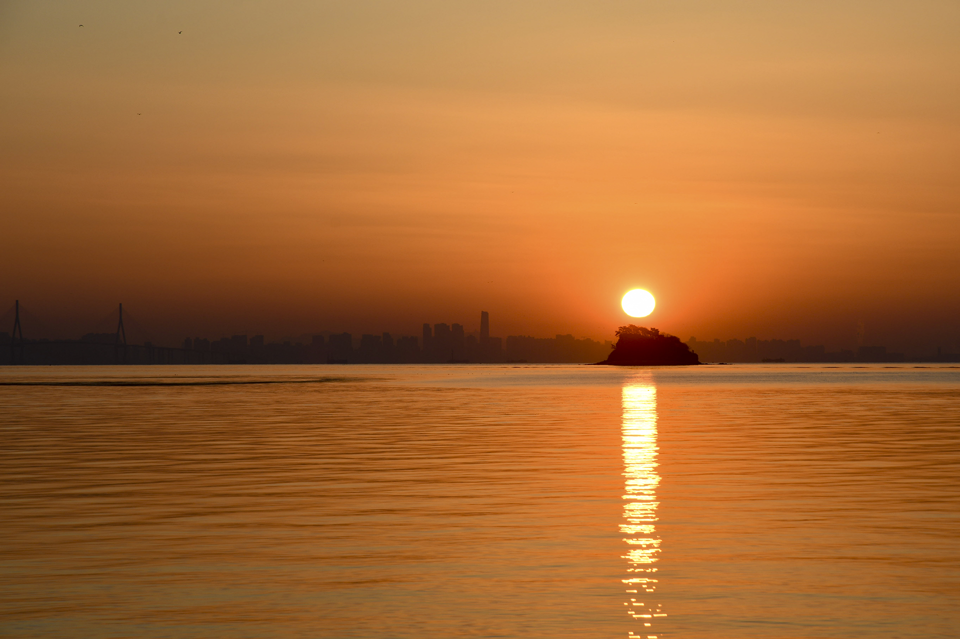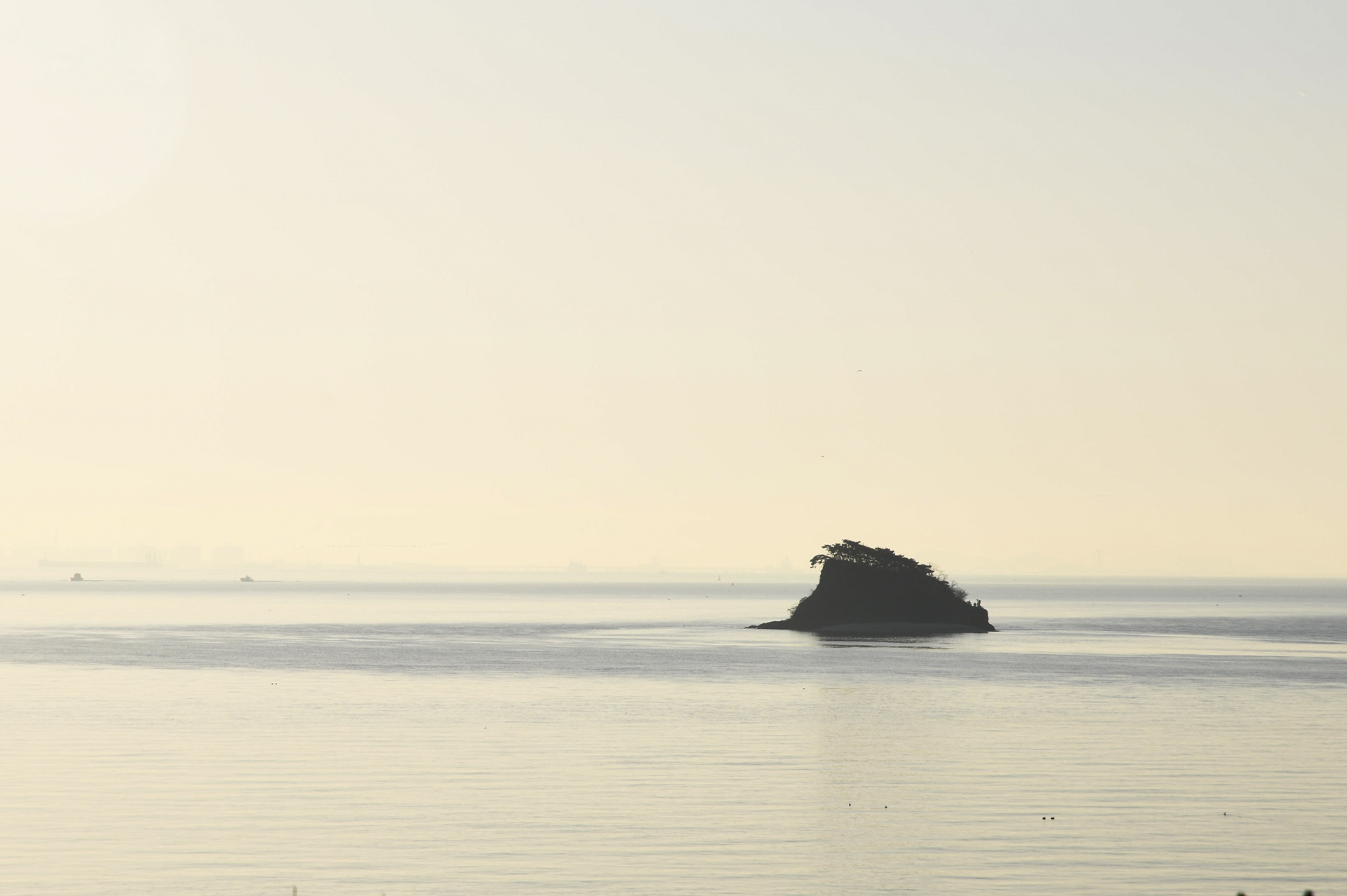 섬 위로 해가 올라서는 중이다.