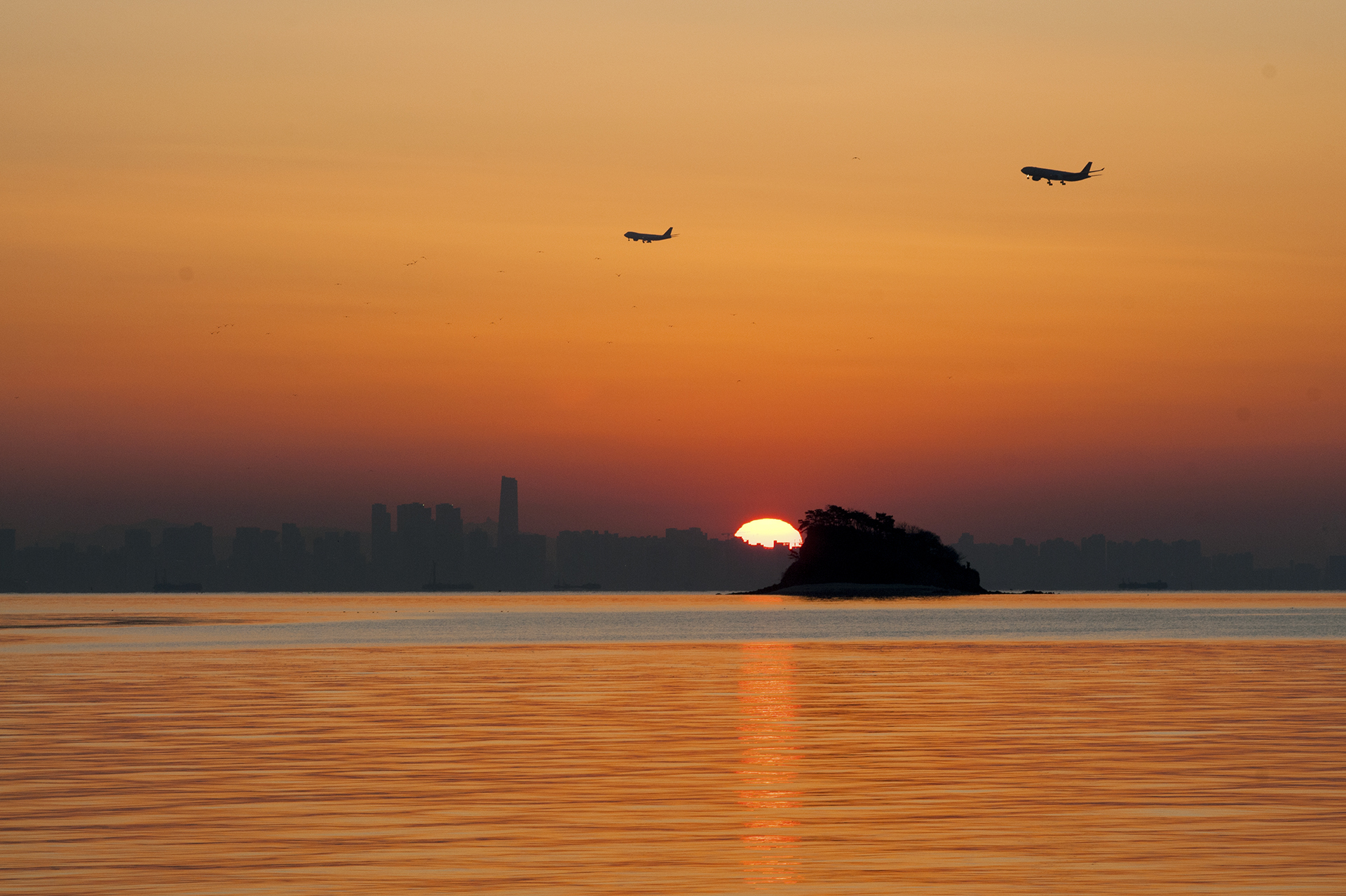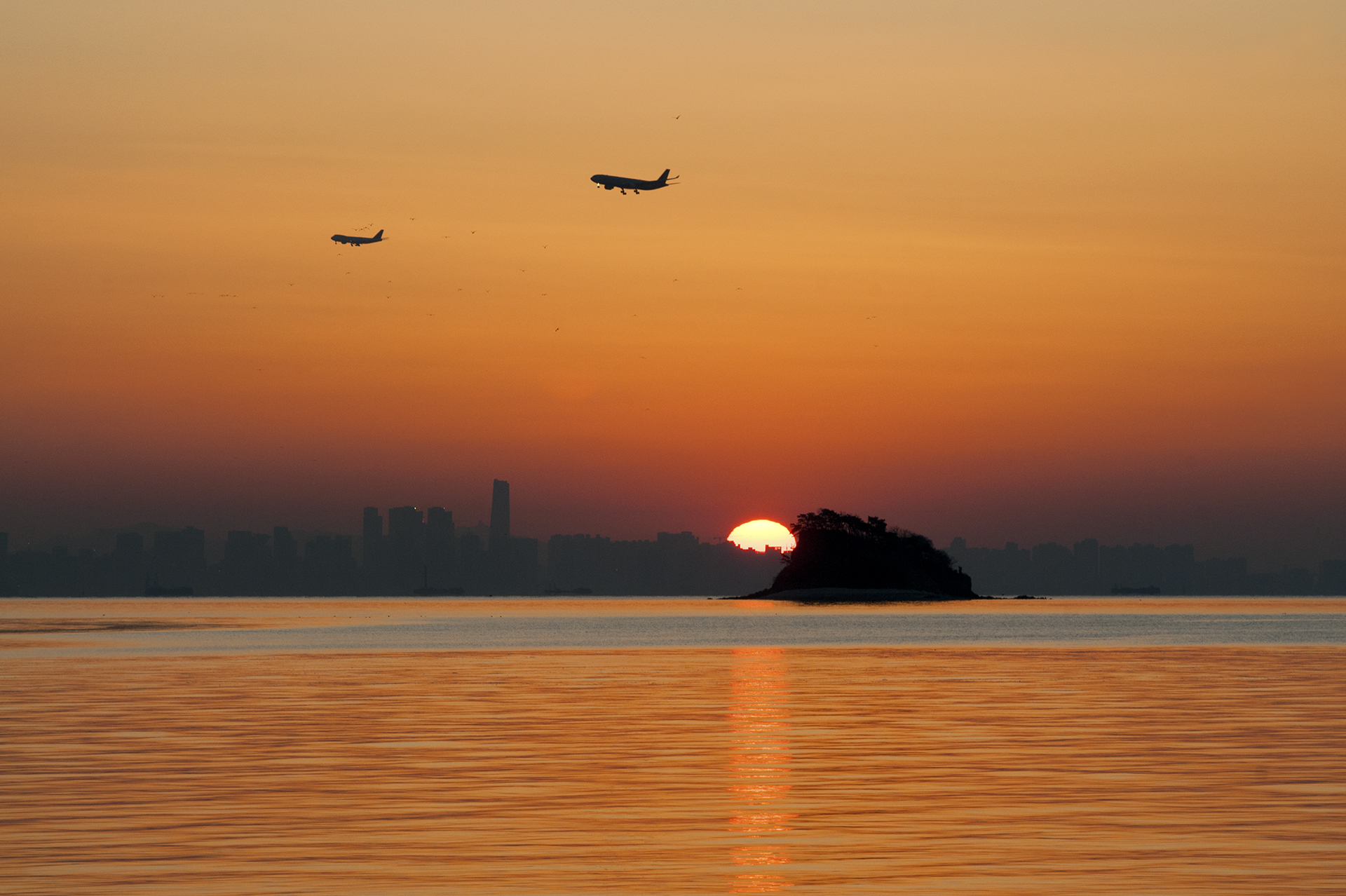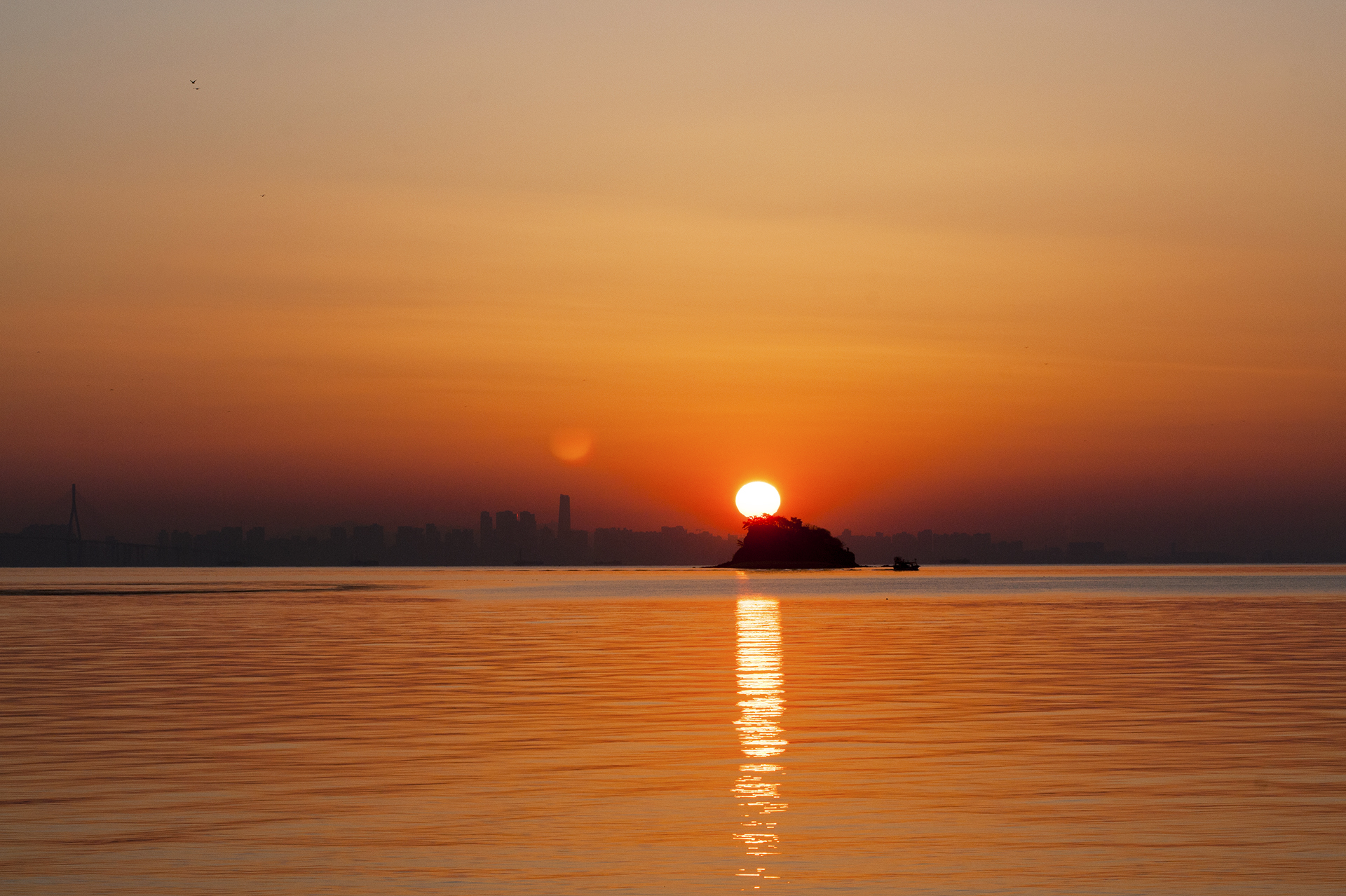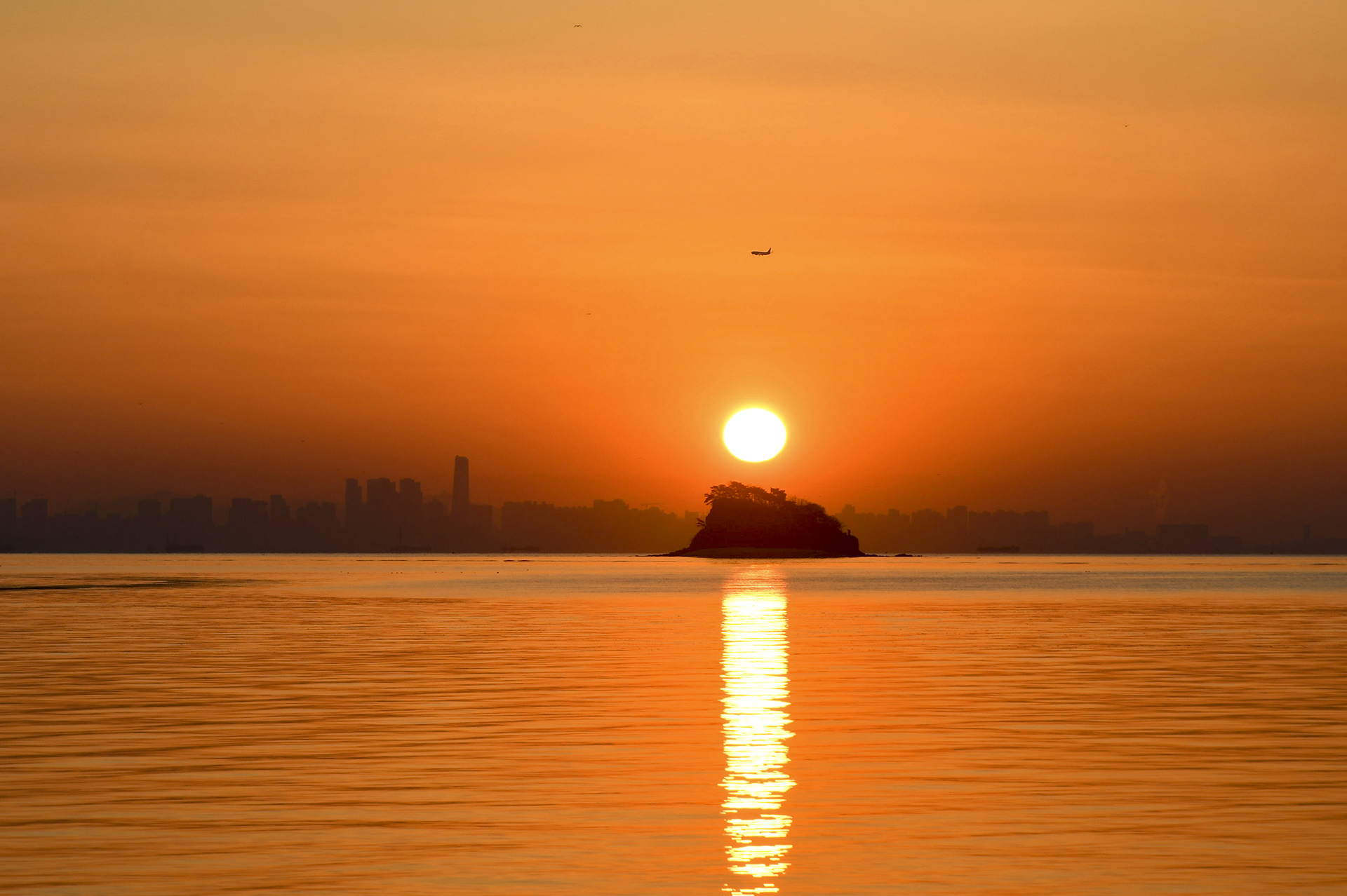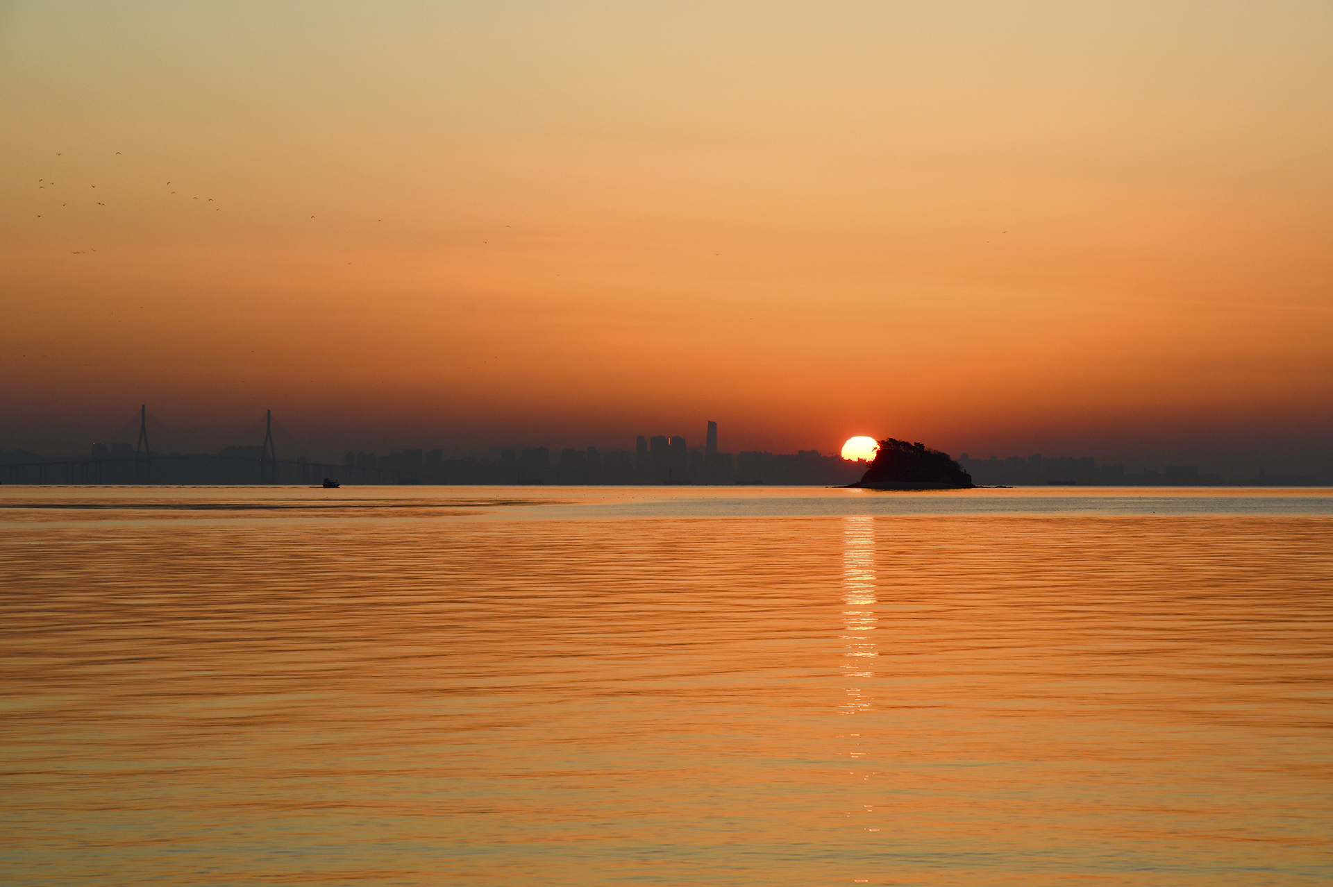 섬 위로 해가 올라서는 중이다.