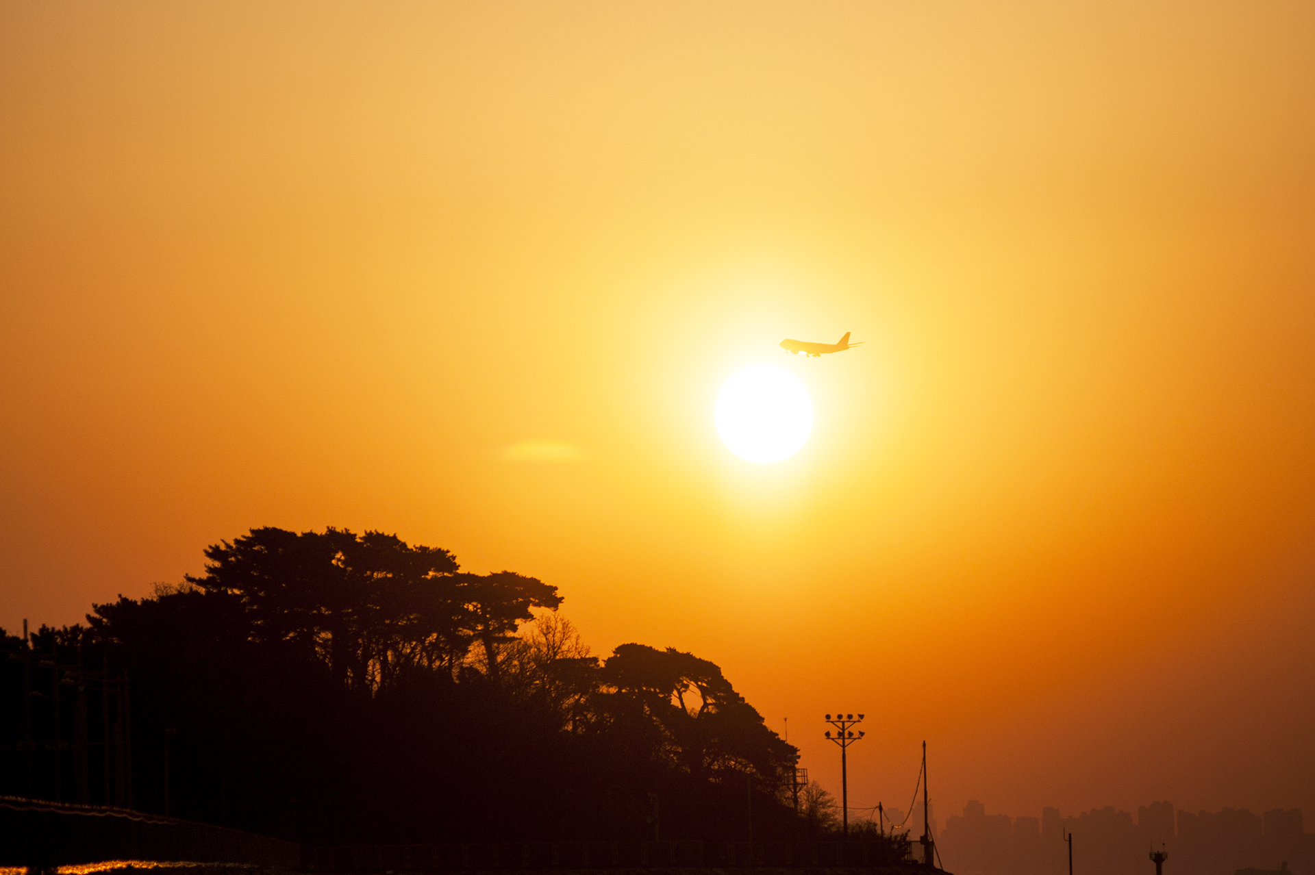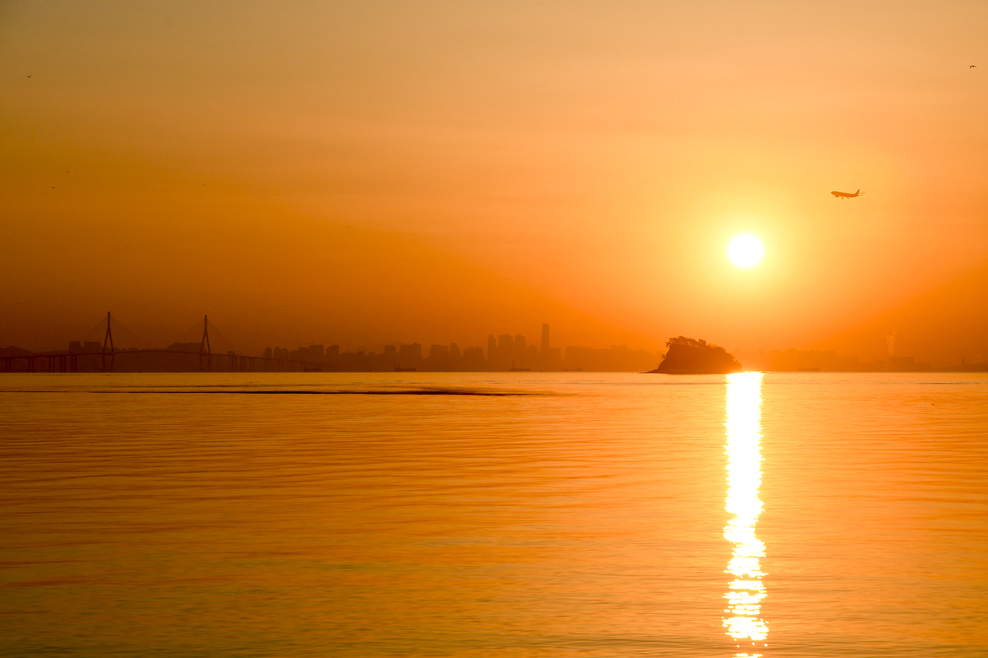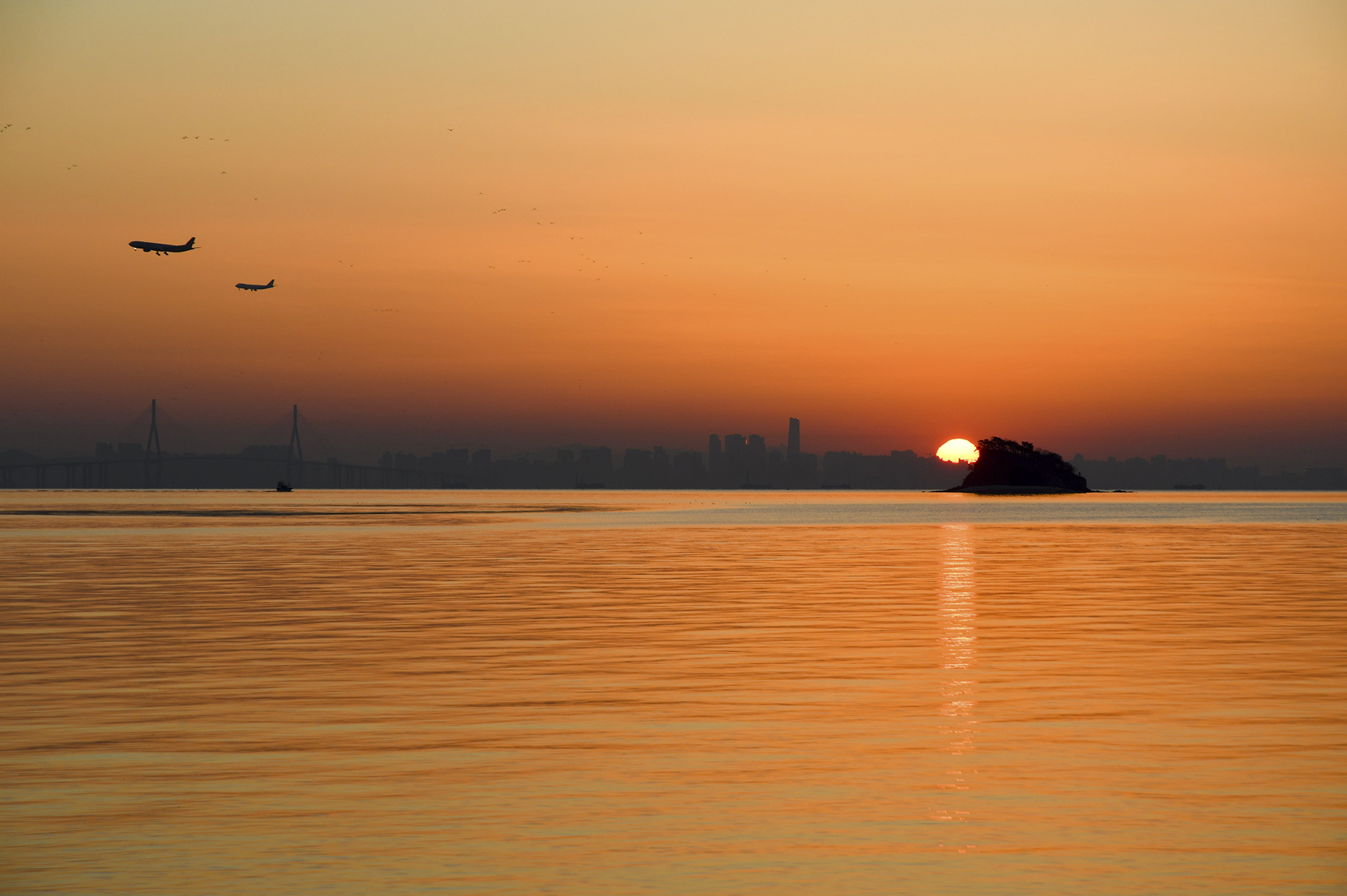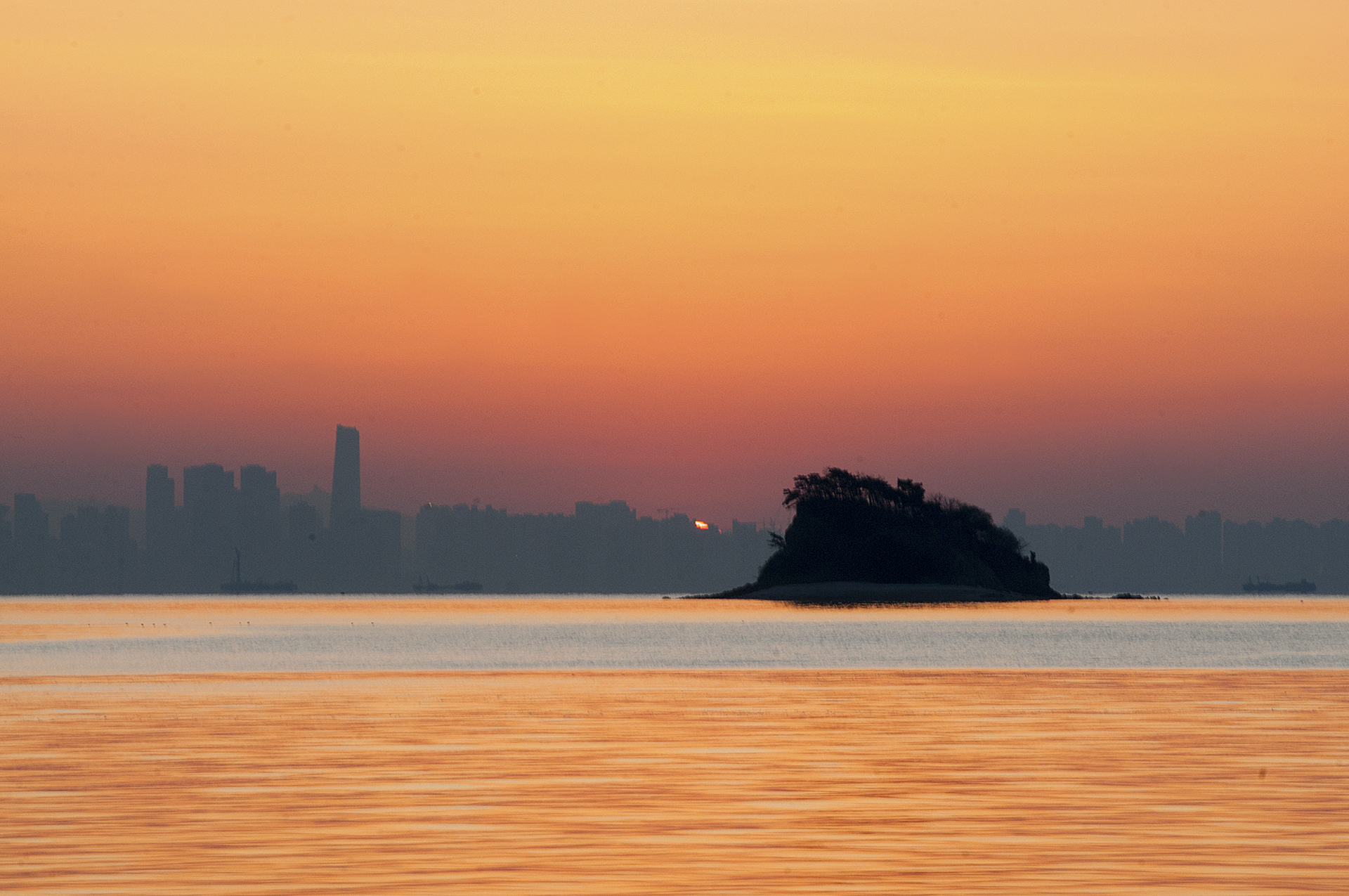 섬 위로 해가 올라서는 중이다.