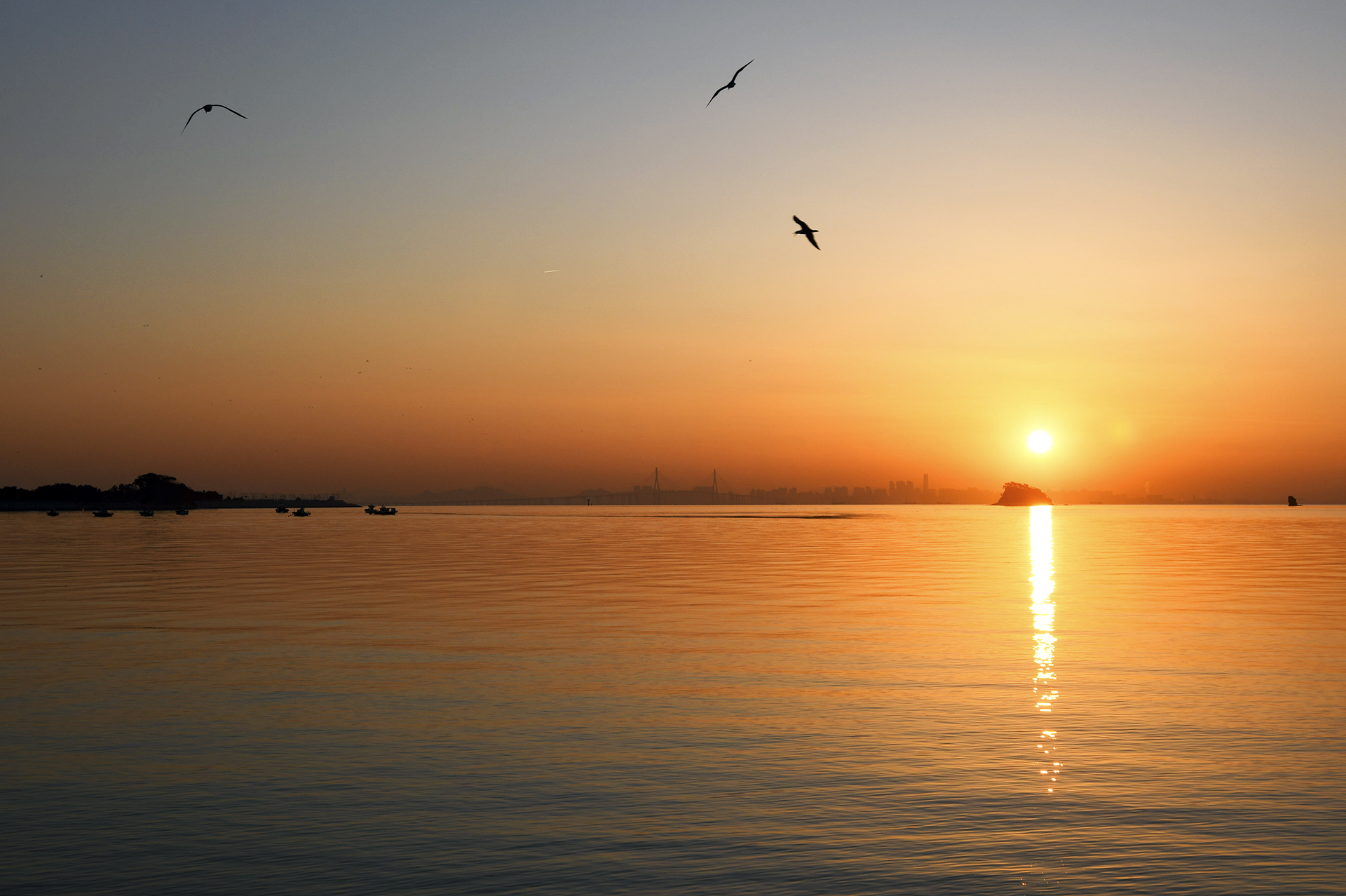 해는 매도랑 좌측에서 점차 우측으로 흐르며 떠오른다.