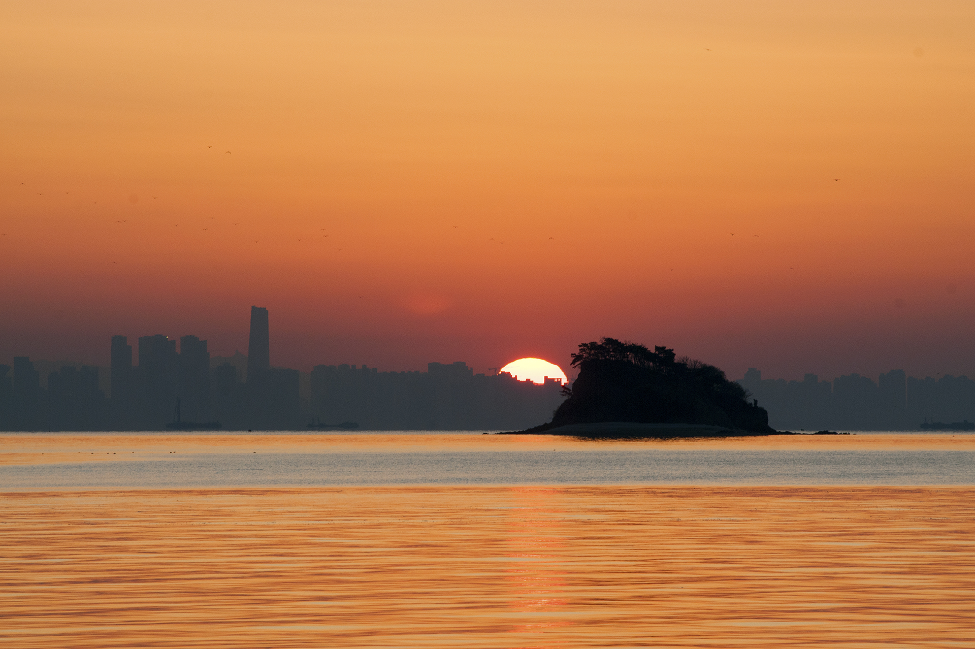 잠진도길에서는 송도신도시의 높은 건물들 위로 해가 떠오르게 된다.