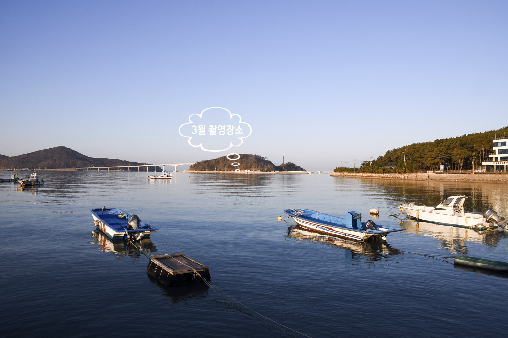 거잠포구에서 바라본 오늘의 촬영장소 잠진도는 무의대교를 건너기 전에 위치한 섬으로 촬영위치를 찾기는 쉽다.